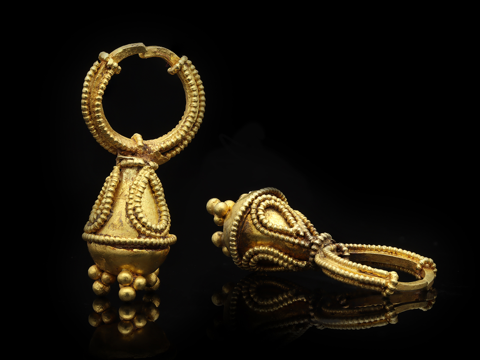 Graeco Scythian gold earrings, circa 2nd century BC- 2nd century AD.