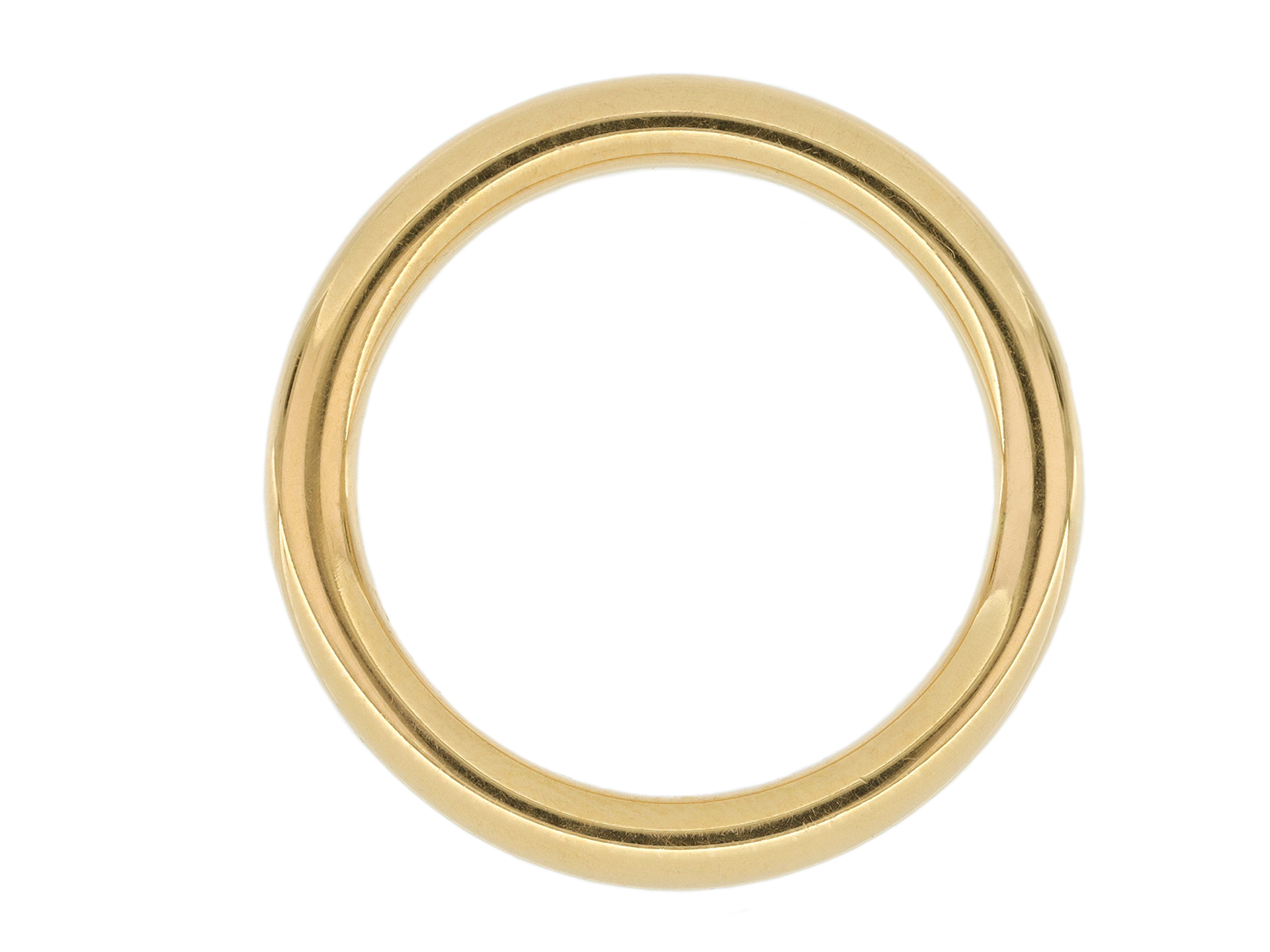 Yellow gold wedding band. A smoothly conforming rounded wedding band with polished edges, approximately 2.5mm in width. Tested yellow gold, engraved '22 CT', approximately 4.50 grams in weight, engraved 'J.L.W', circa 1950.