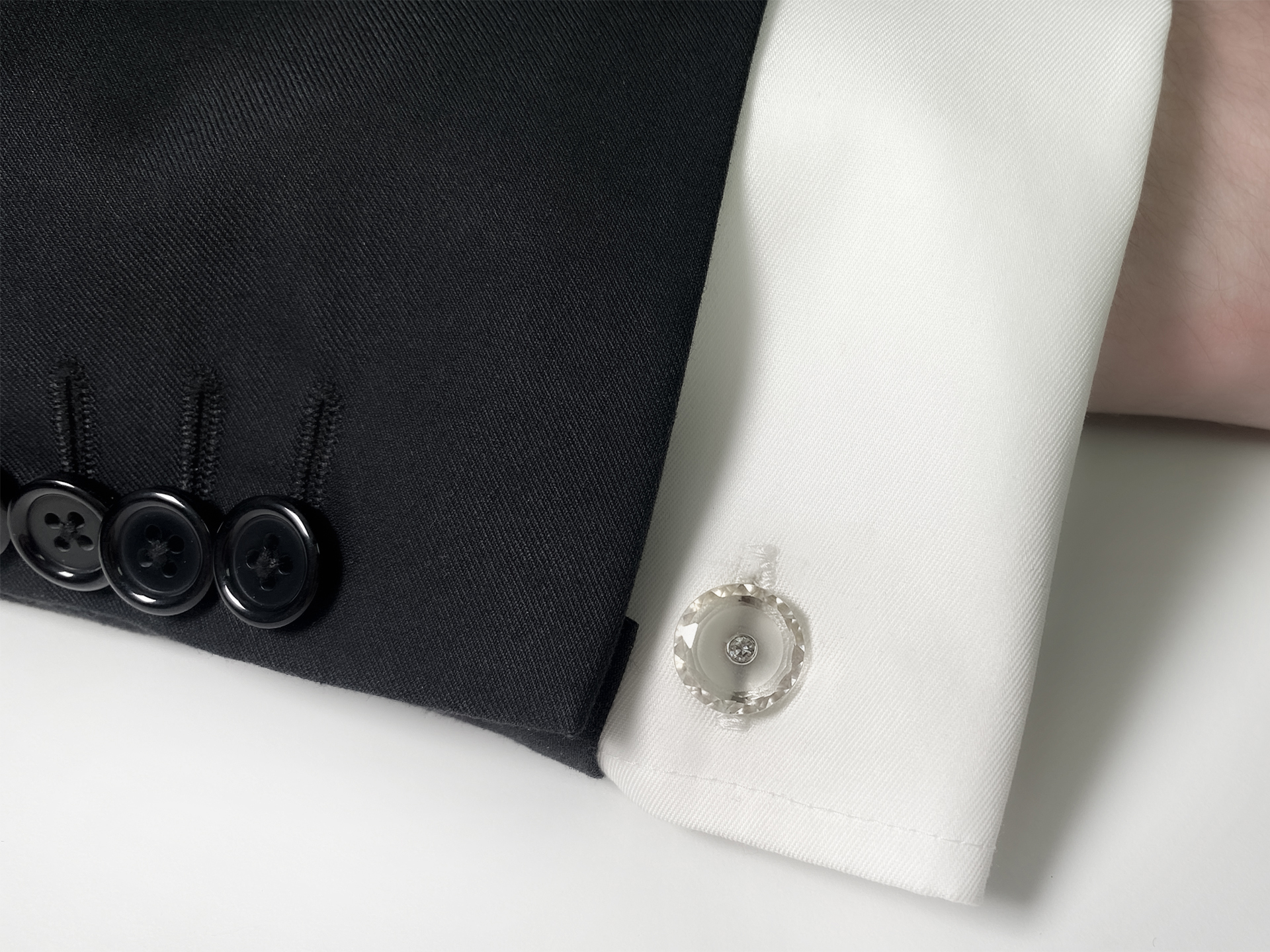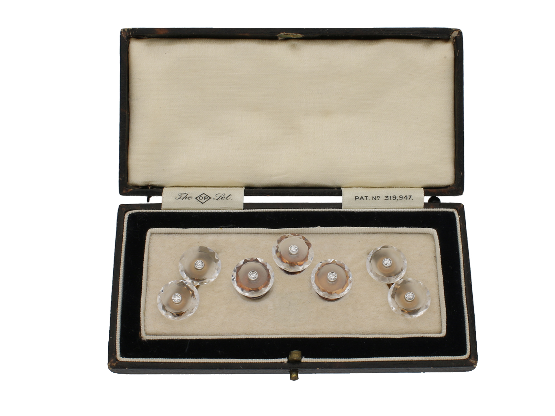 Gentleman's rock crystal and diamond dress set, French, circa 1910.