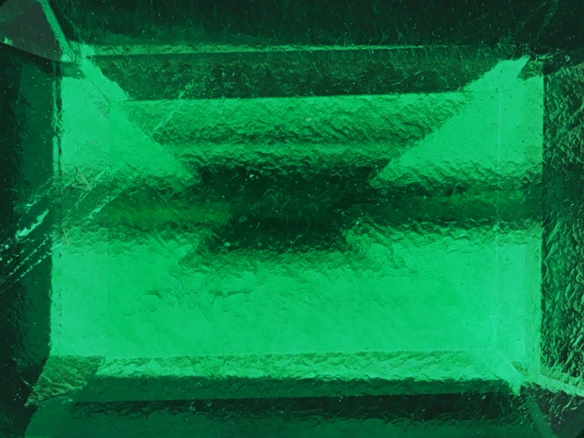 The most prized phenomenon that can be seen in a Colombian emerald is known as 'gota de aceite' ('drop of oil' in Spanish), or 'butterfly wings'. Microscopic inclusions, caused by growth irregularities within the crystal, act to scatter the light, spreading the colour and reducing extinction within the stone.