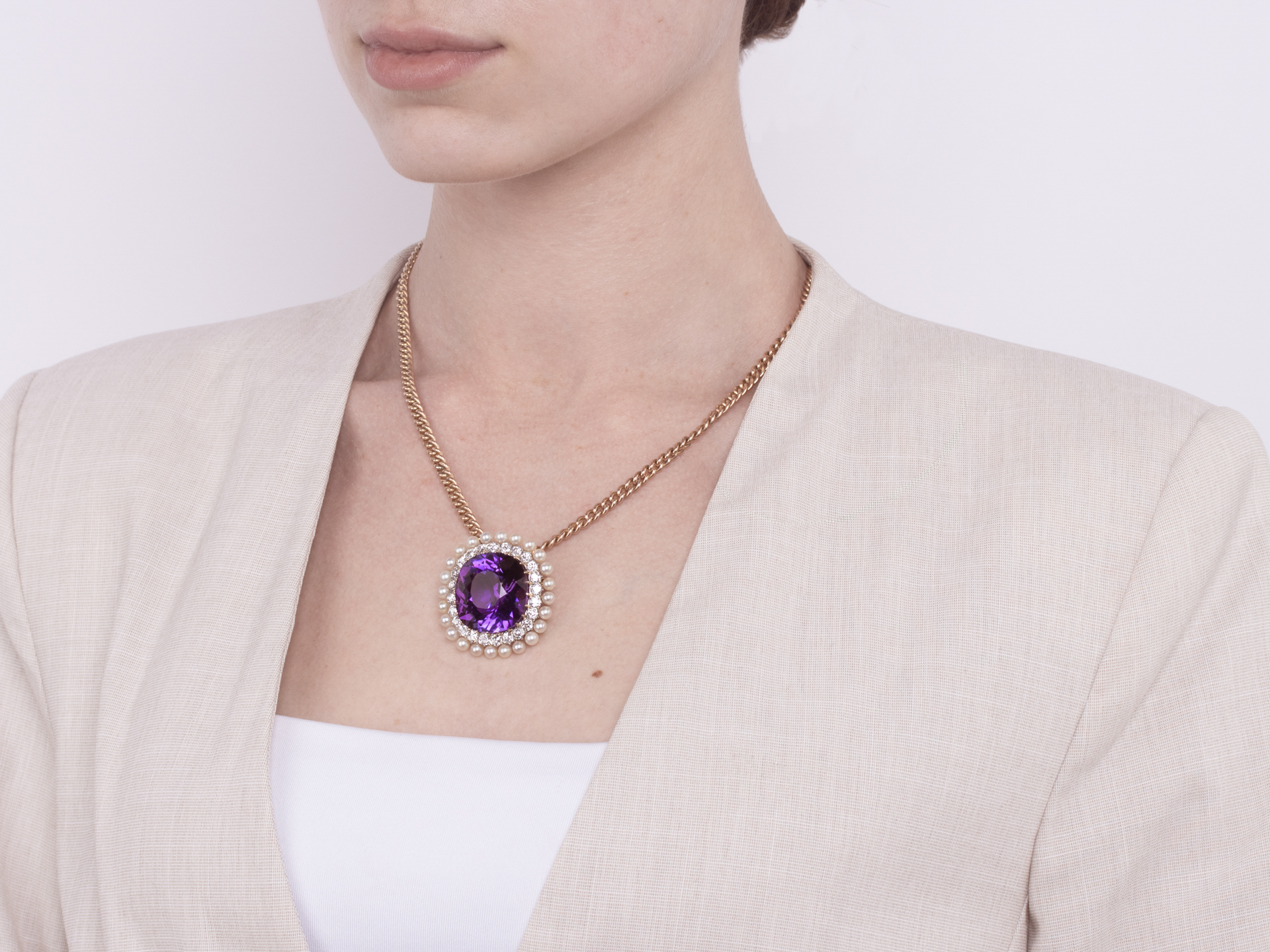 Dreicer & Co. amethyst, pearl and diamond pendant/brooch, American, circa 1900.