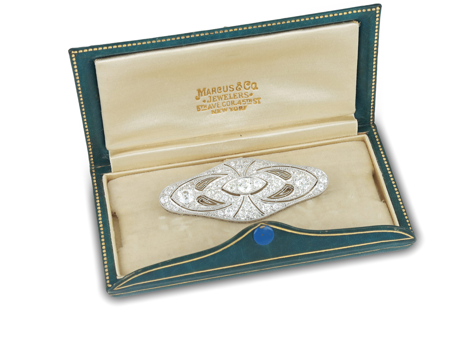 Exquisite Art Deco jewels highlight the firm's commitment to quality, craftsmanship and beauty and in 1939 they were one of just five jewellery firms to exhibit in the 'House of Jewels' at the New York World's Fair. The other jewellers to exhibit were Tiffany, Cartier, Black, Starr & Frost and Udall & Ballou, indicating how the prestige Marcus & Co. jewels had achieved, with notable clients including the Rockefellers.