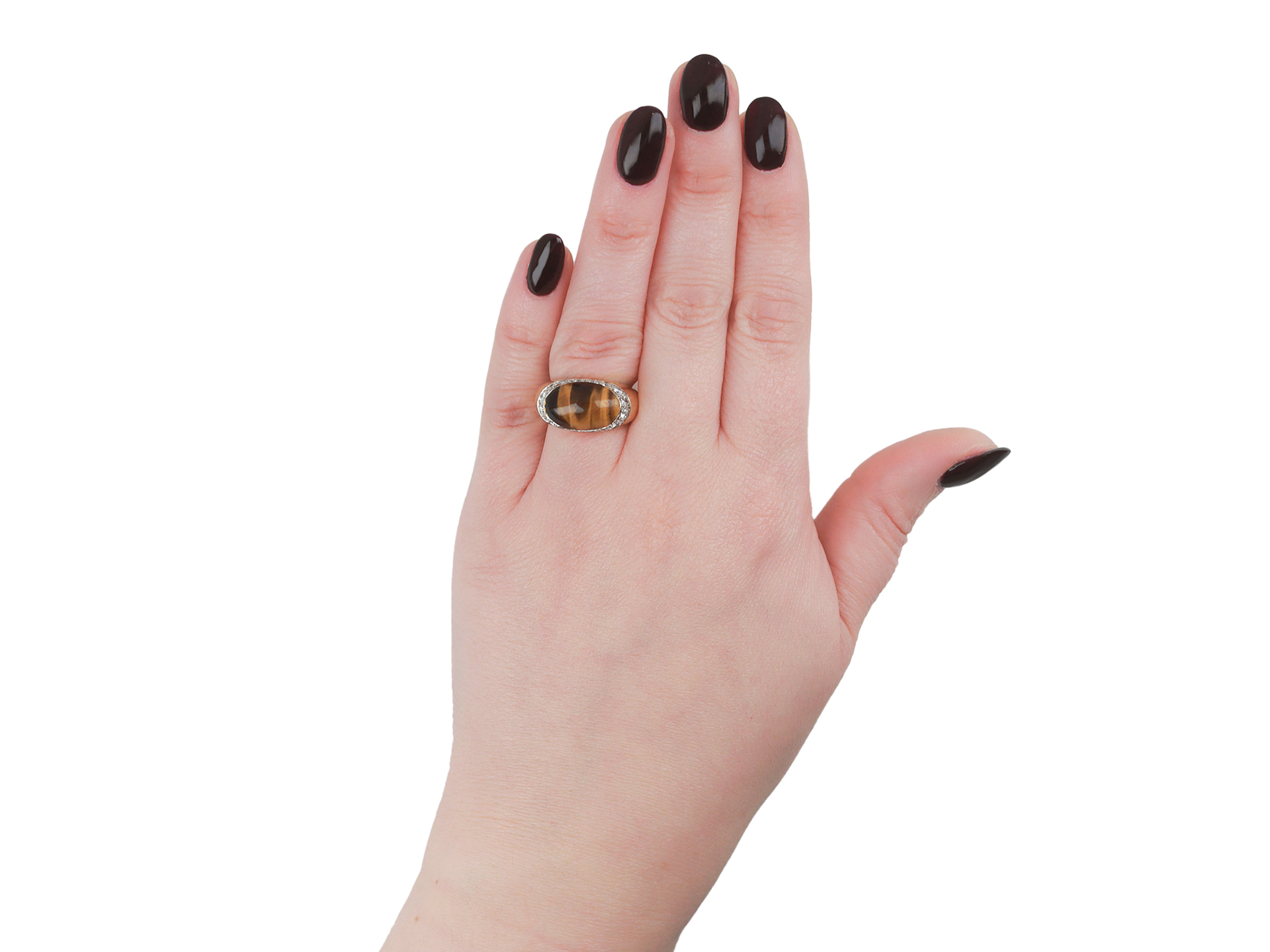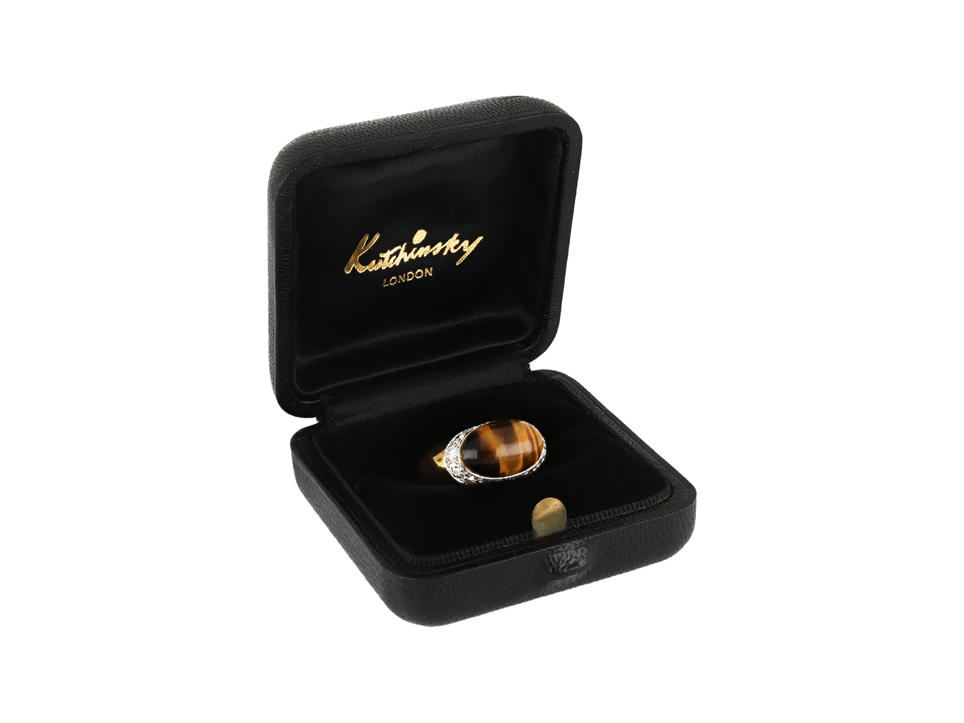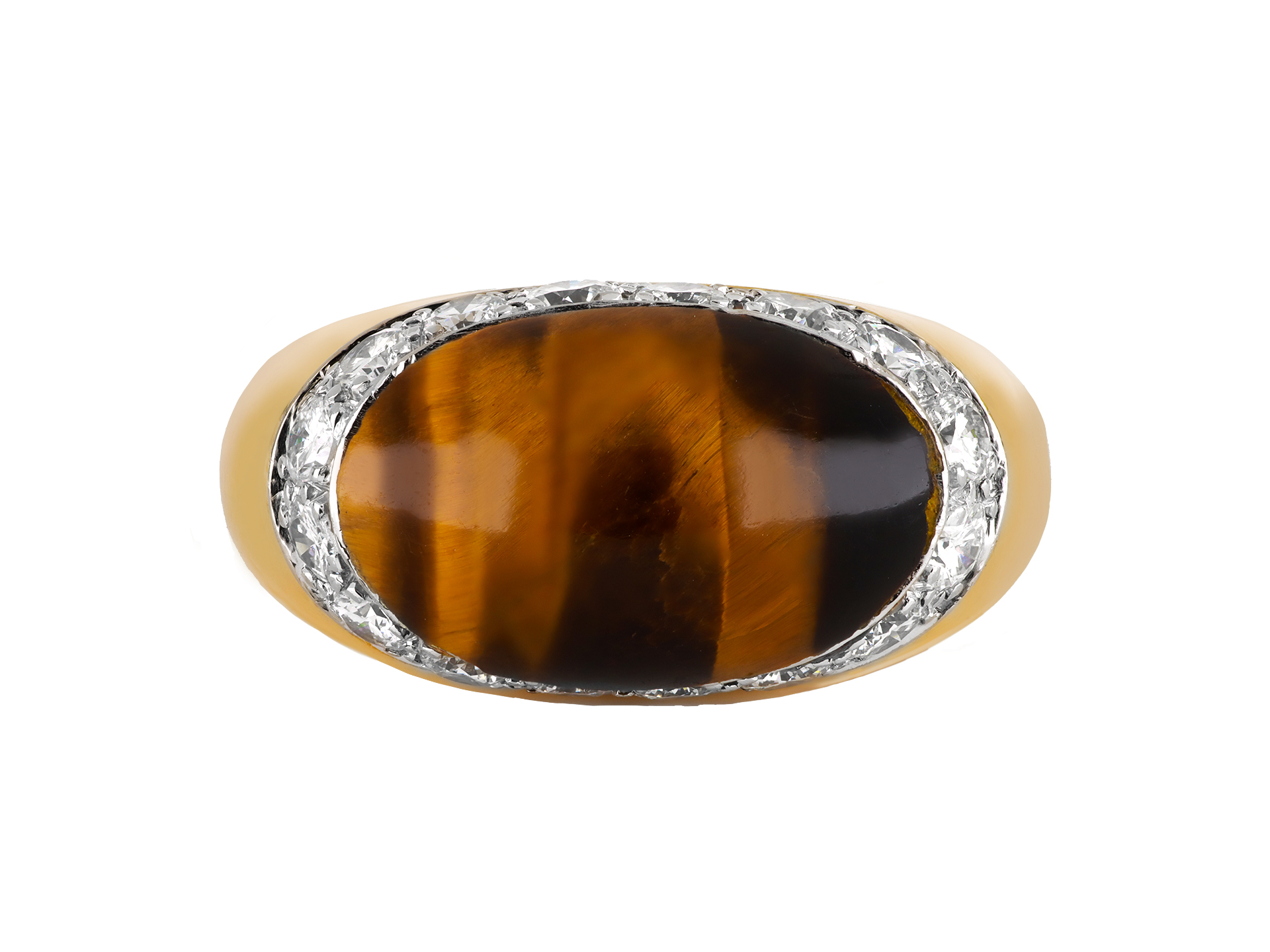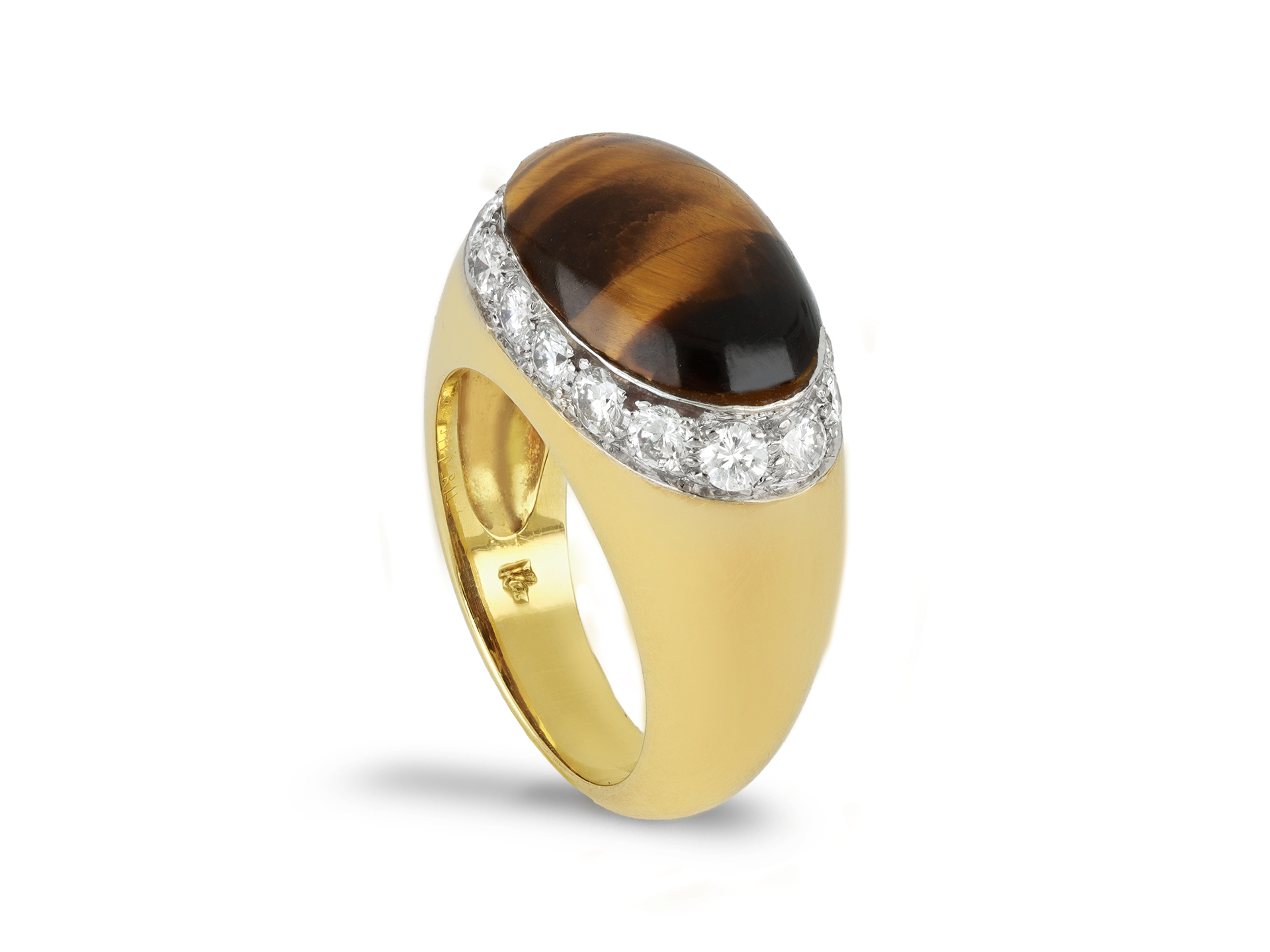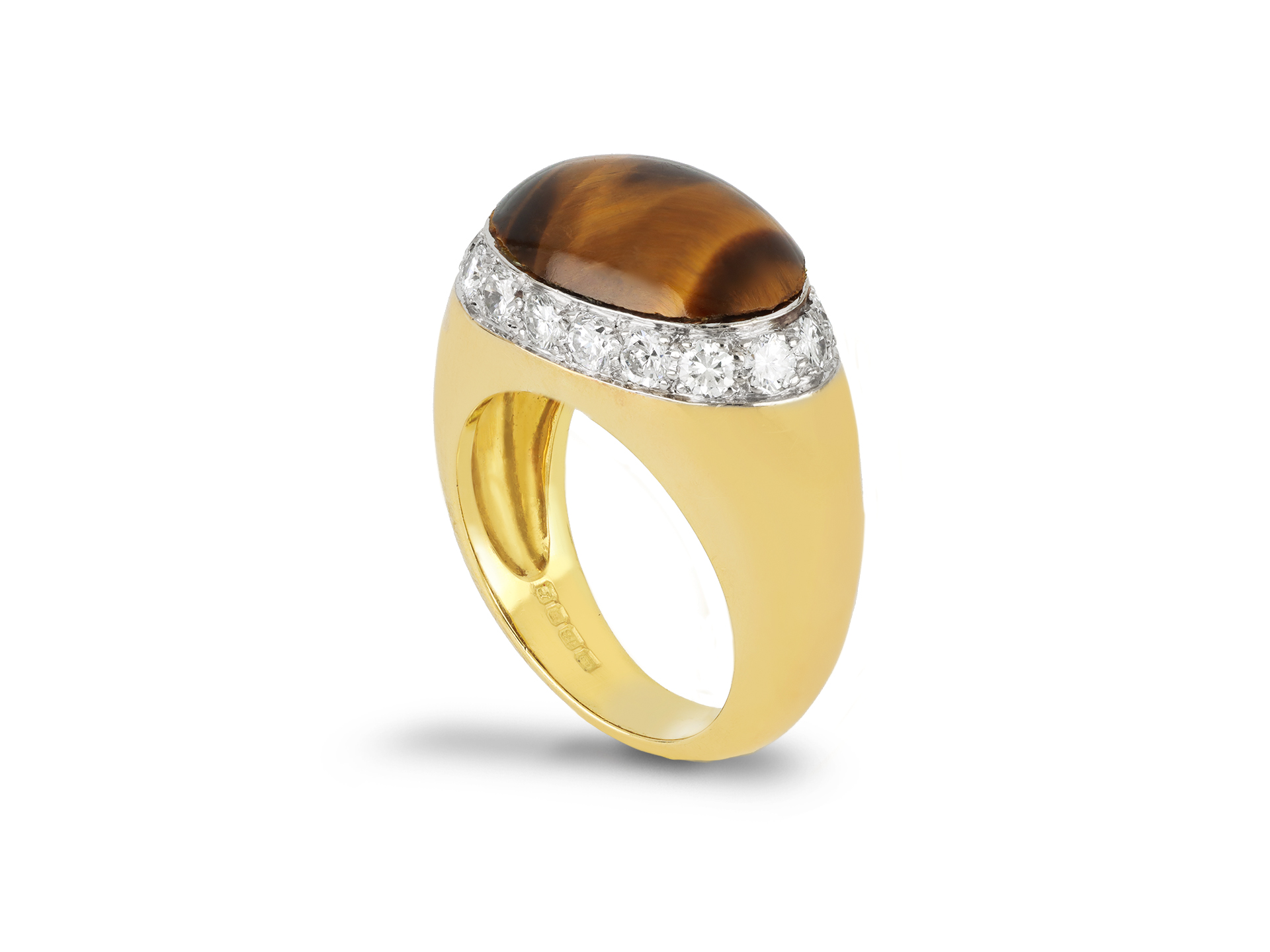 Kutchinsky tiger's eye and diamond ring, English, 1972.