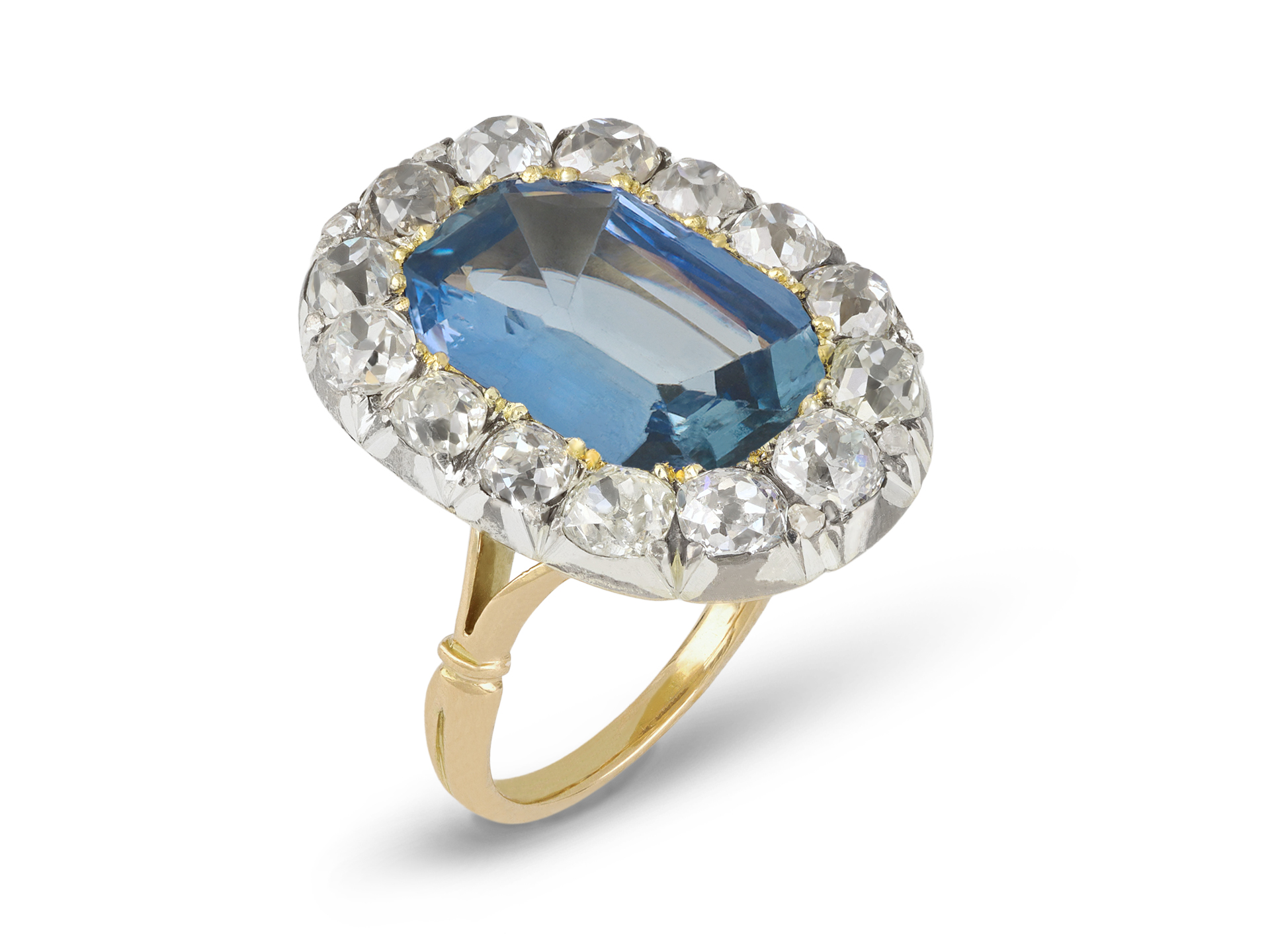 Victorian sapphire and diamond coronet cluster ring, circa 1870.