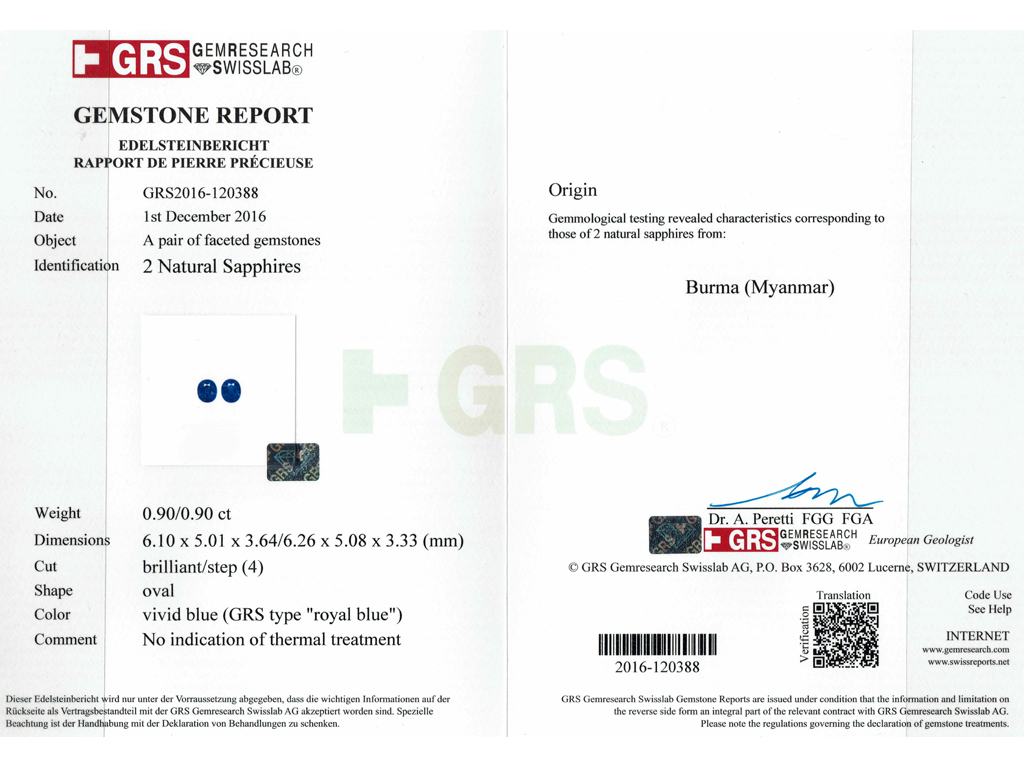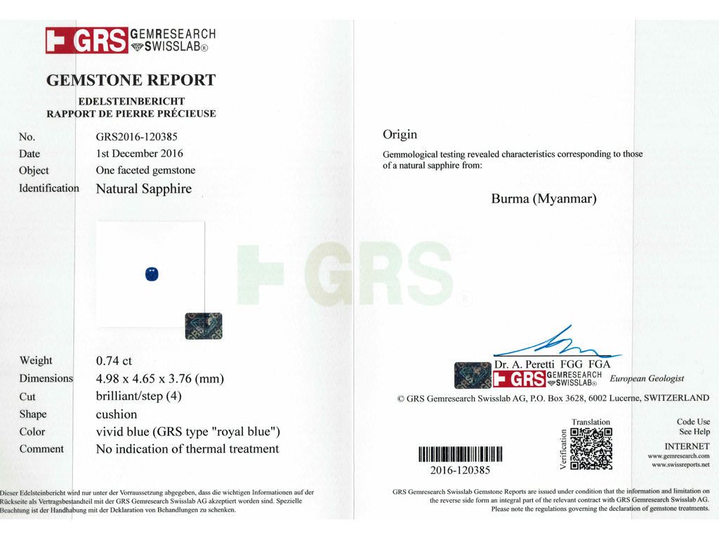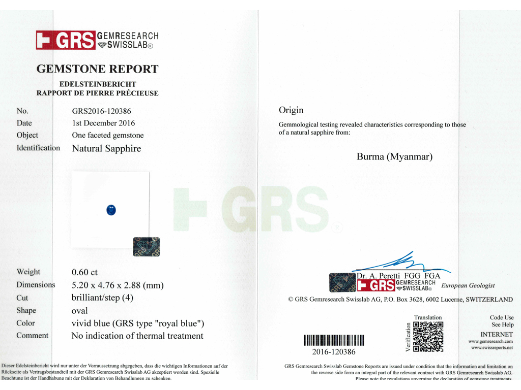 For those sapphires with an exceptional colouration, the colour may be given a further title. The term ‘royal blue', is reserved for sapphires of a pure and saturated blue hue and is usually associated with the finest of Burmese sapphires