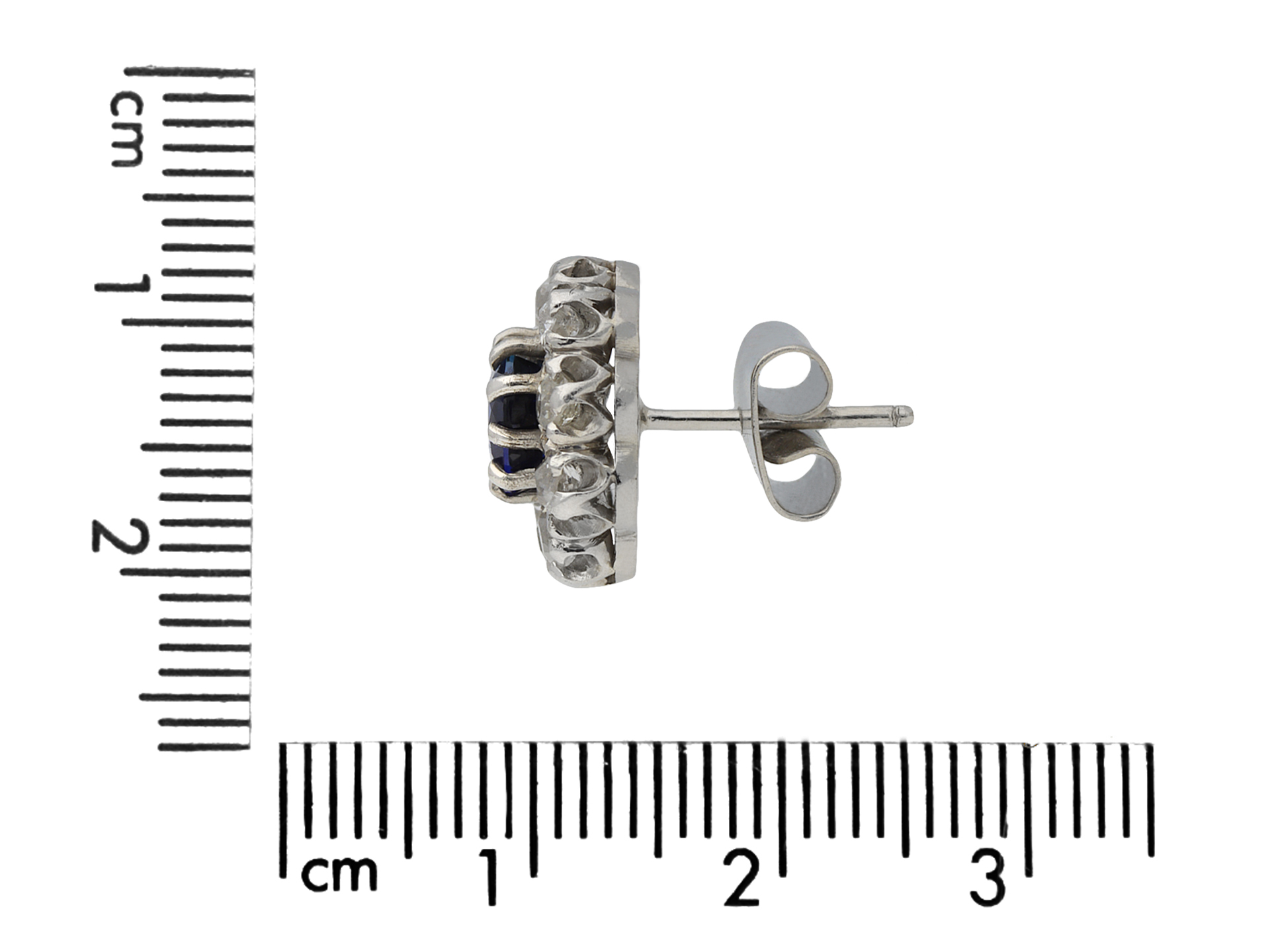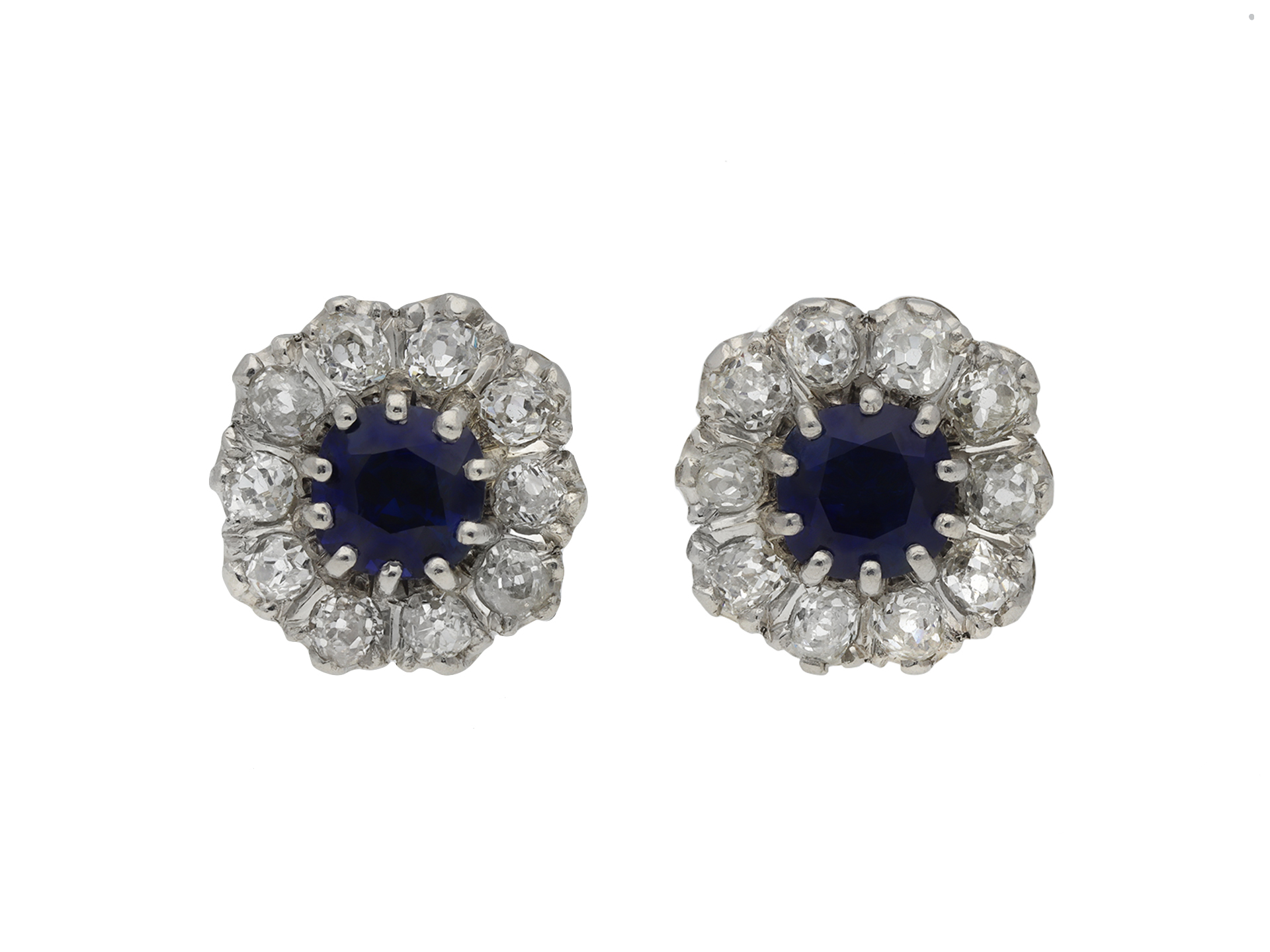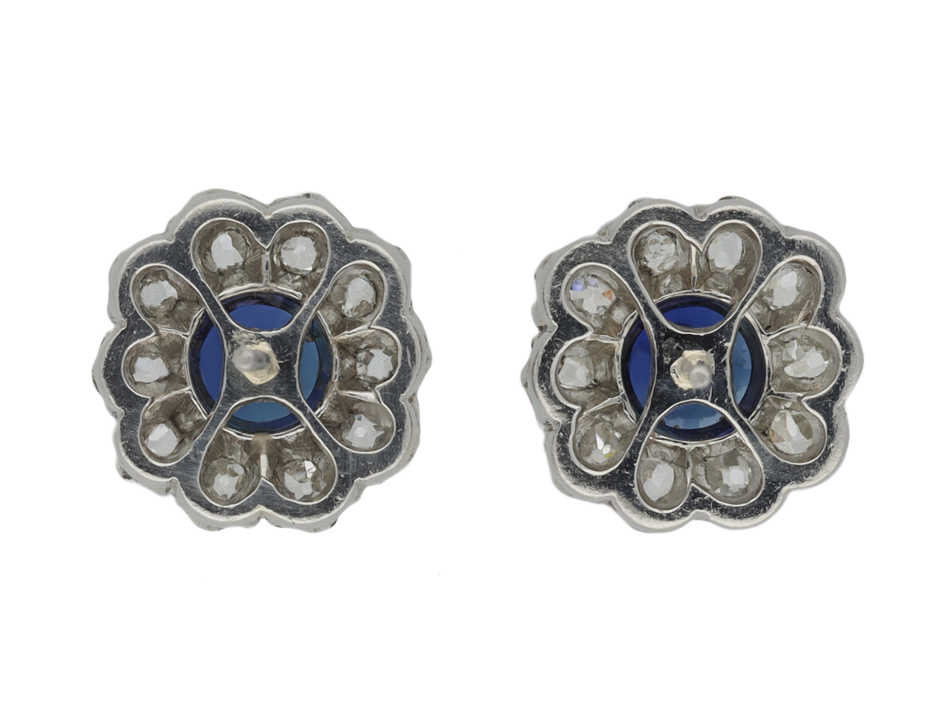 Burmese sapphire and diamond cluster earrings, circa 1920.