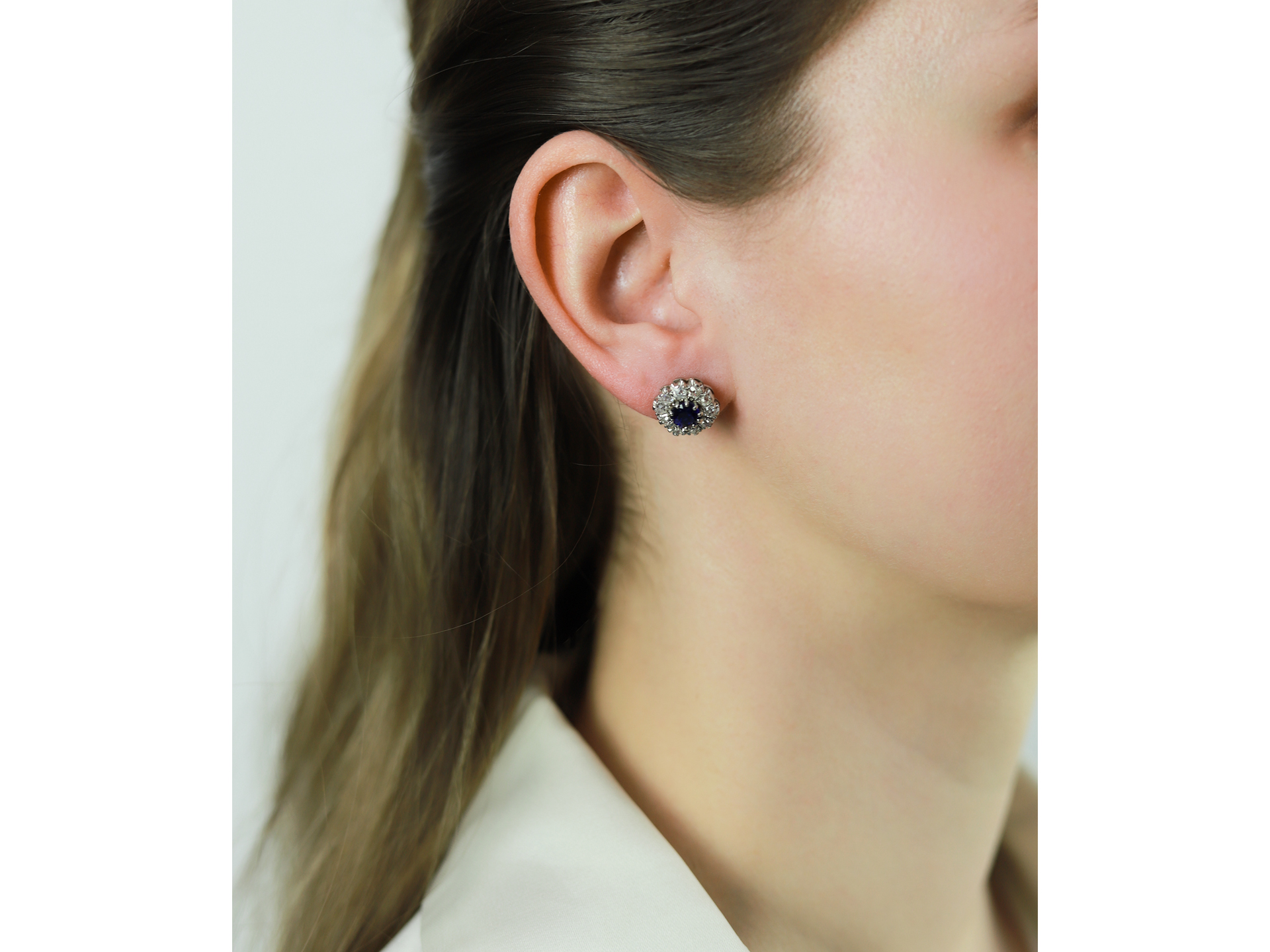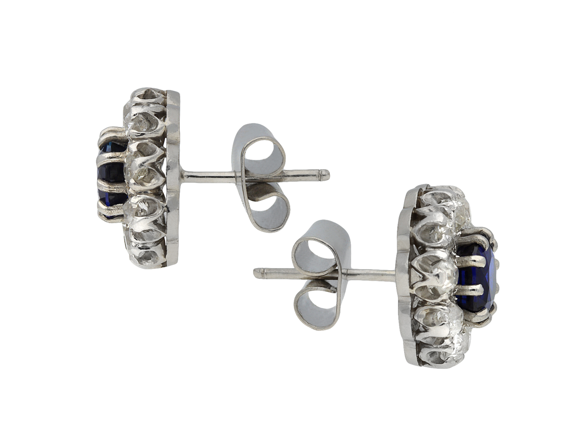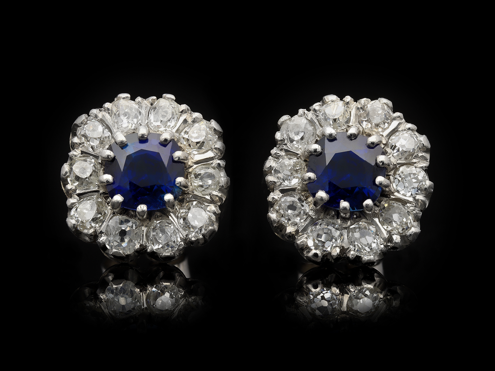 Burmese sapphire and diamond cluster earrings, circa 1920.