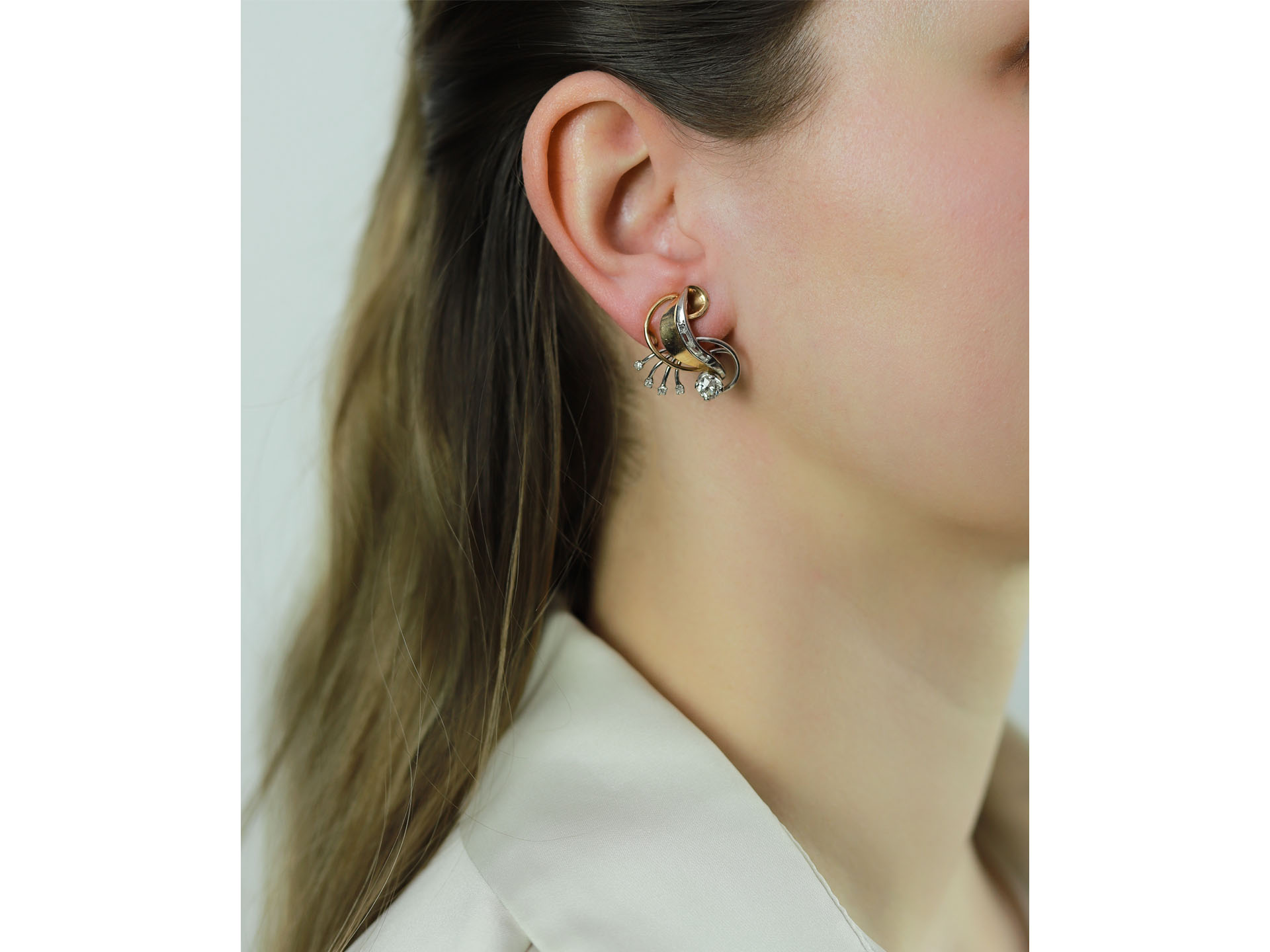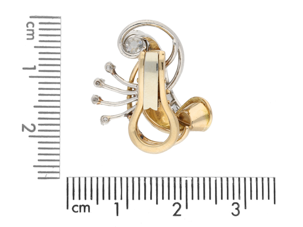 Diamond clip earrings, French, circa 1950.
