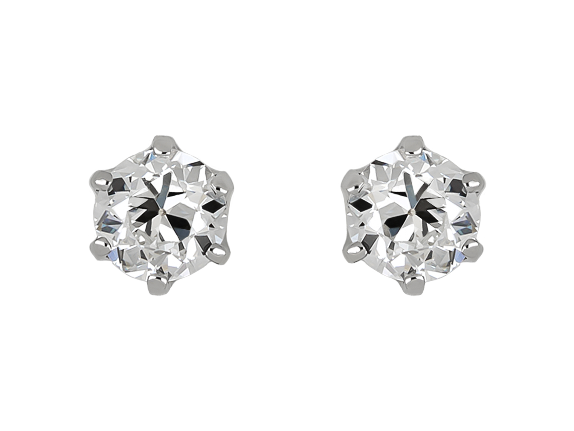 Old cut diamond stud earrings, circa 1905.