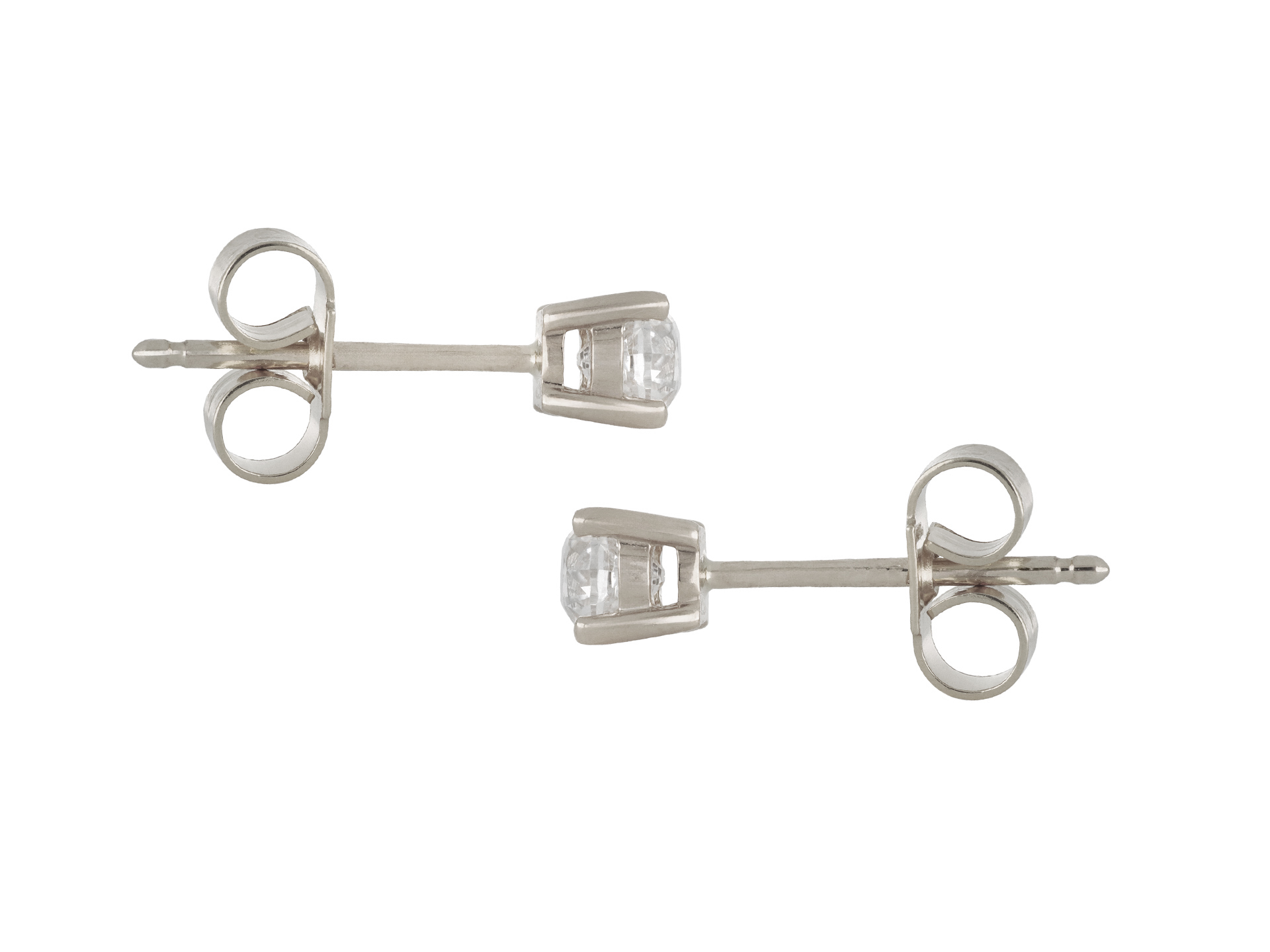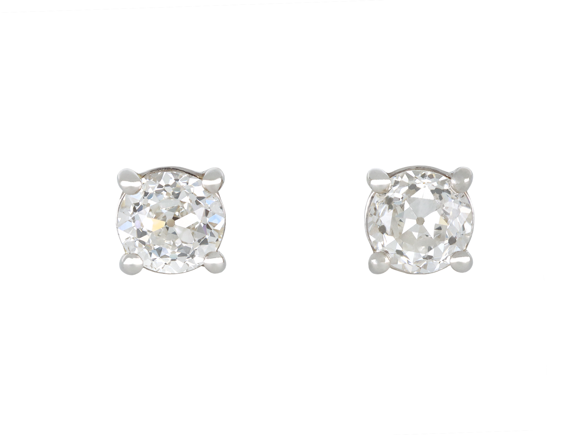 Old cut diamond stud earrings. A matching pair, each set with one round old cut diamond in an open back claw setting, two in total, with a combined approximate weight of 0.85 carats, to an elegant stud design featuring curving stylised claws, a pierced linear gallery, and fancy open backholing, fitted to reverse with a secure post and butterfly. Marked 18 carat white gold.