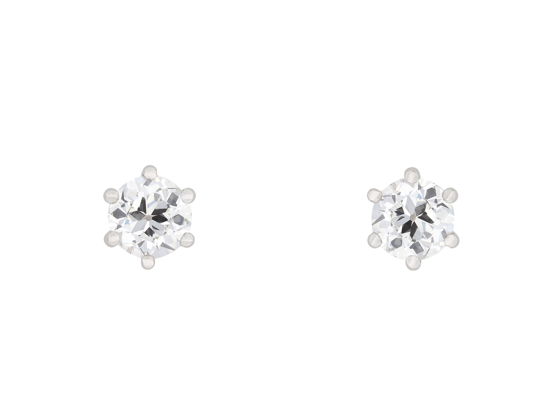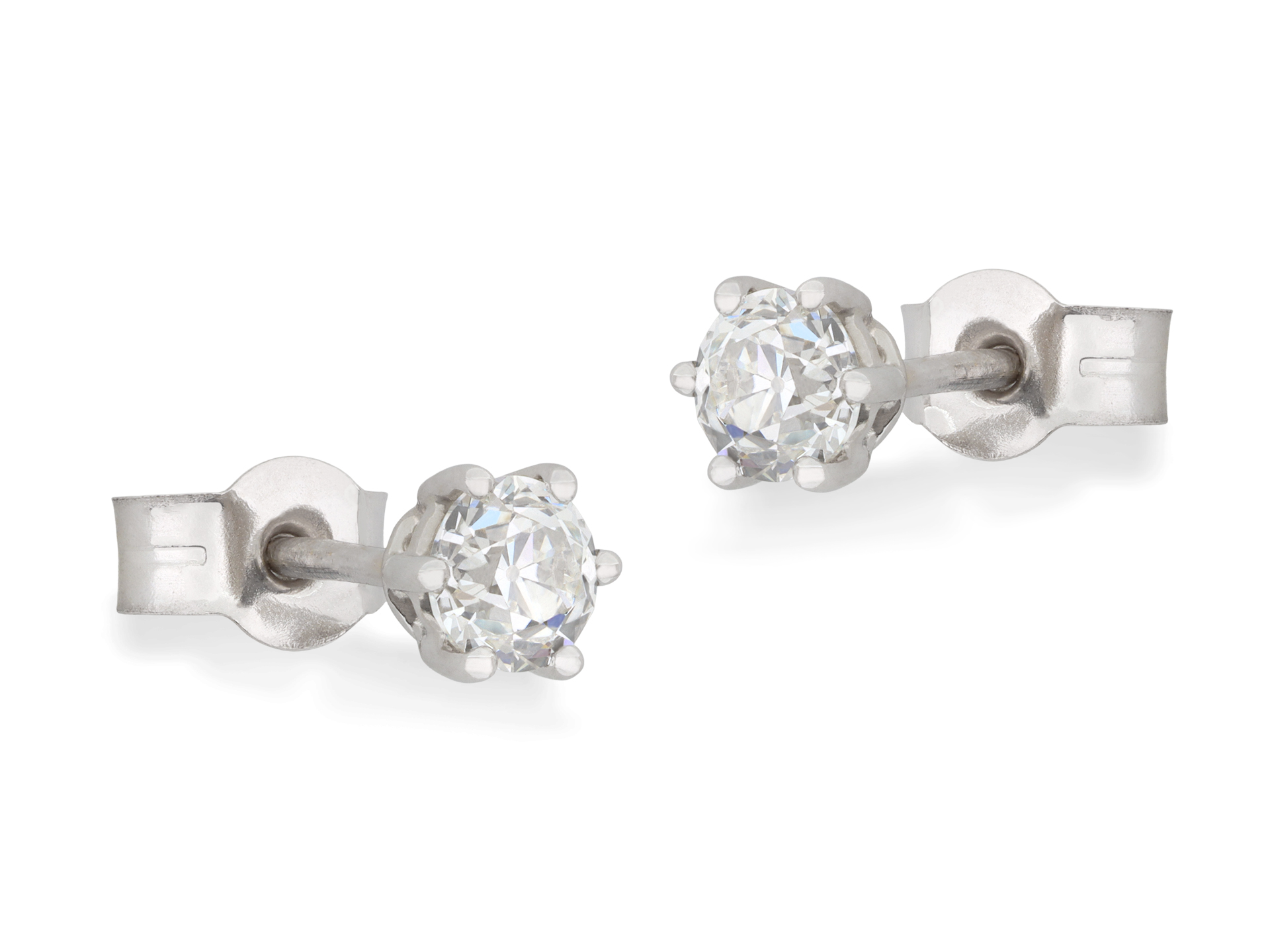 Old cut diamond stud earrings. A matching pair, each set with one round old cut diamond in an open back claw setting, two in total with a combined approximate weight of 0.60 carats, to an elegant pair of stud earrings featuring curving claws, a pierced gallery and open backholing, fitted to reverse with a secure post and butterfly. Posts and fittings tested white gold.