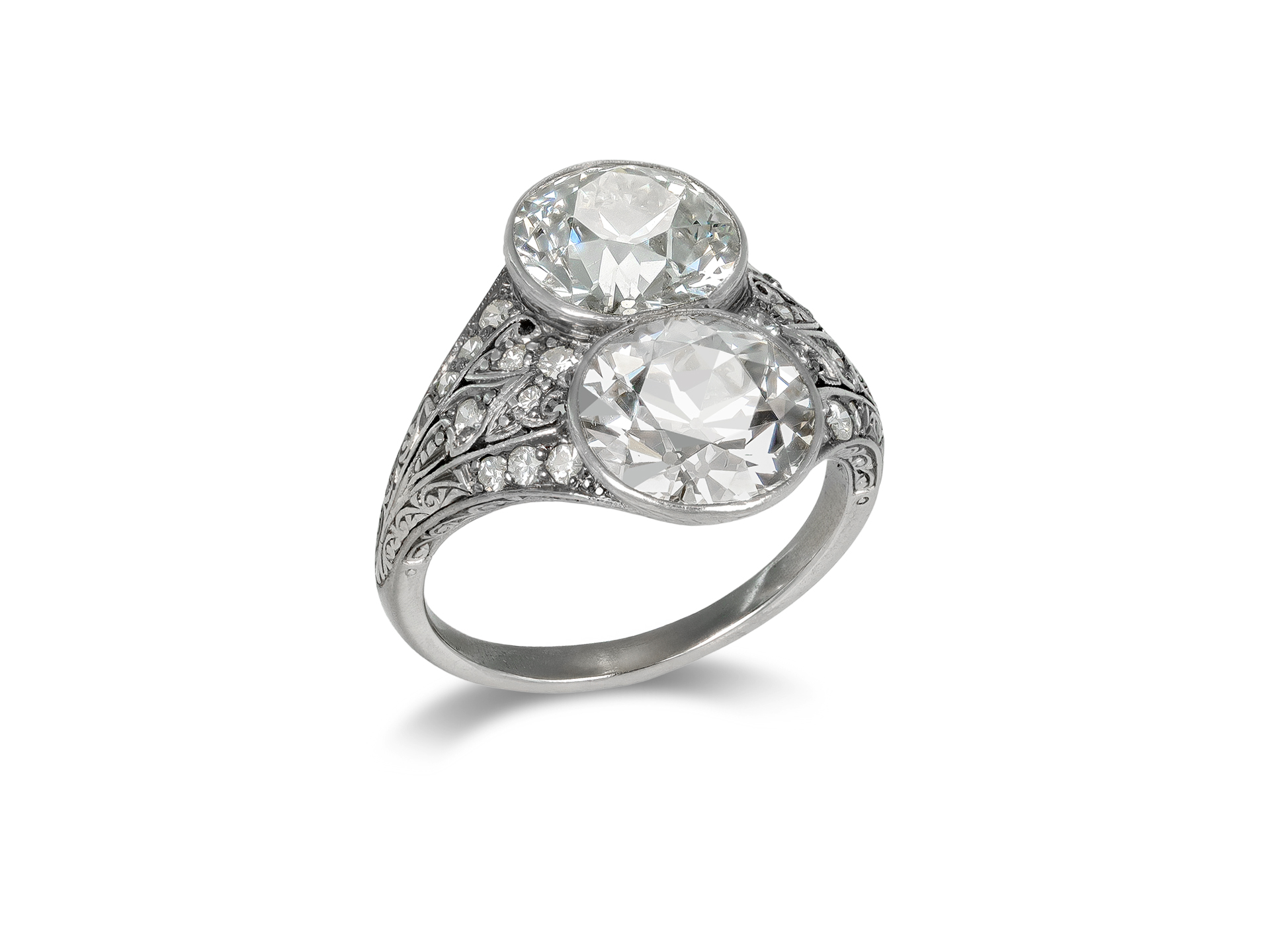 6.25 carat old mine diamond two stone ring, circa 1910.
