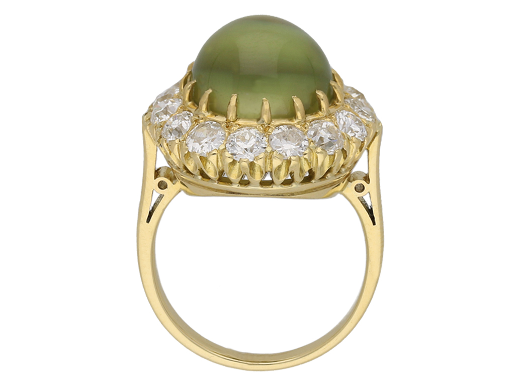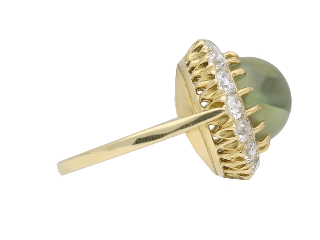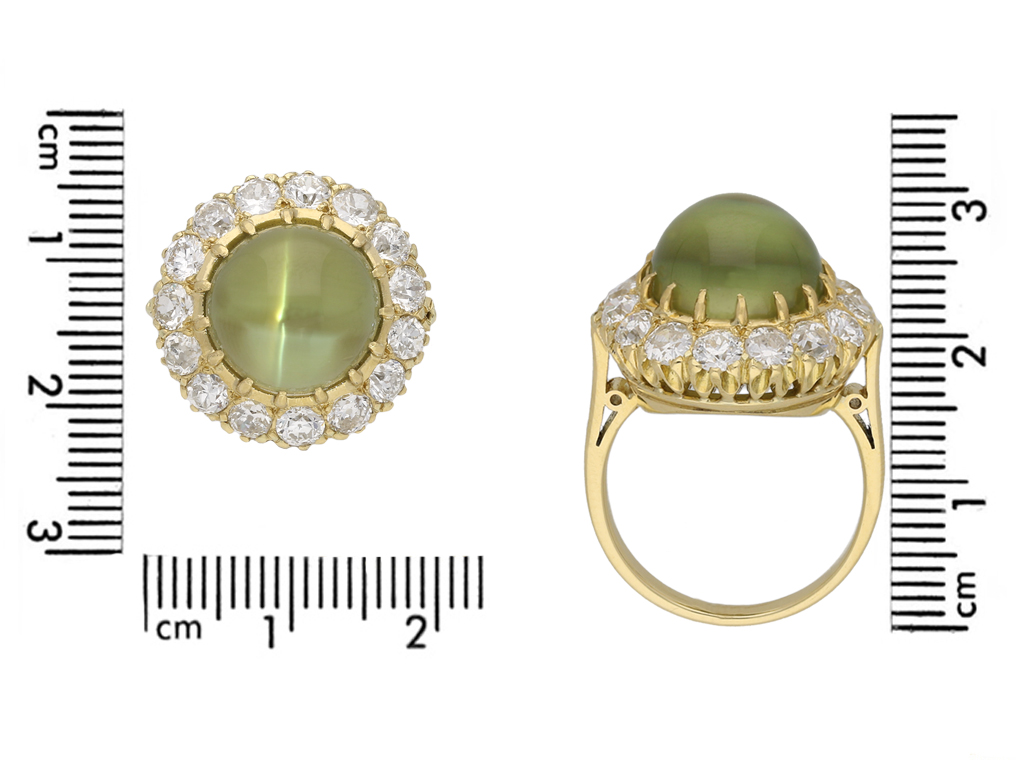 Cat's eye chrysoberyl and diamond coronet cluster ring, circa 1900.