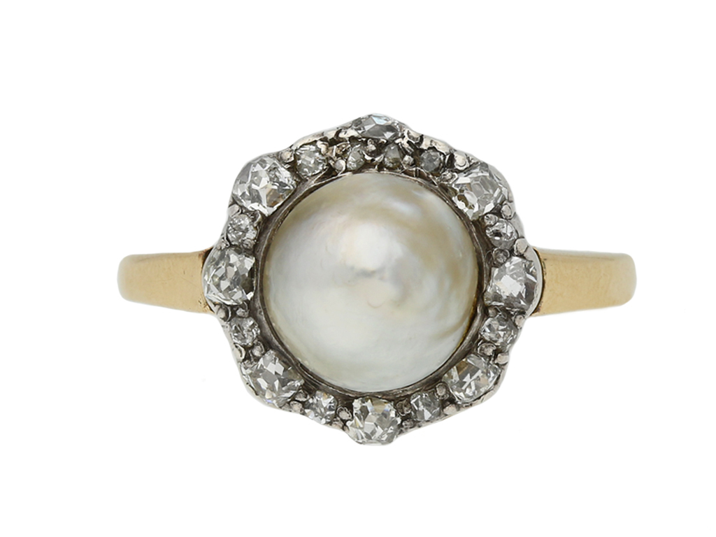 Antique pearl and diamond cluster ring, circa 1880.