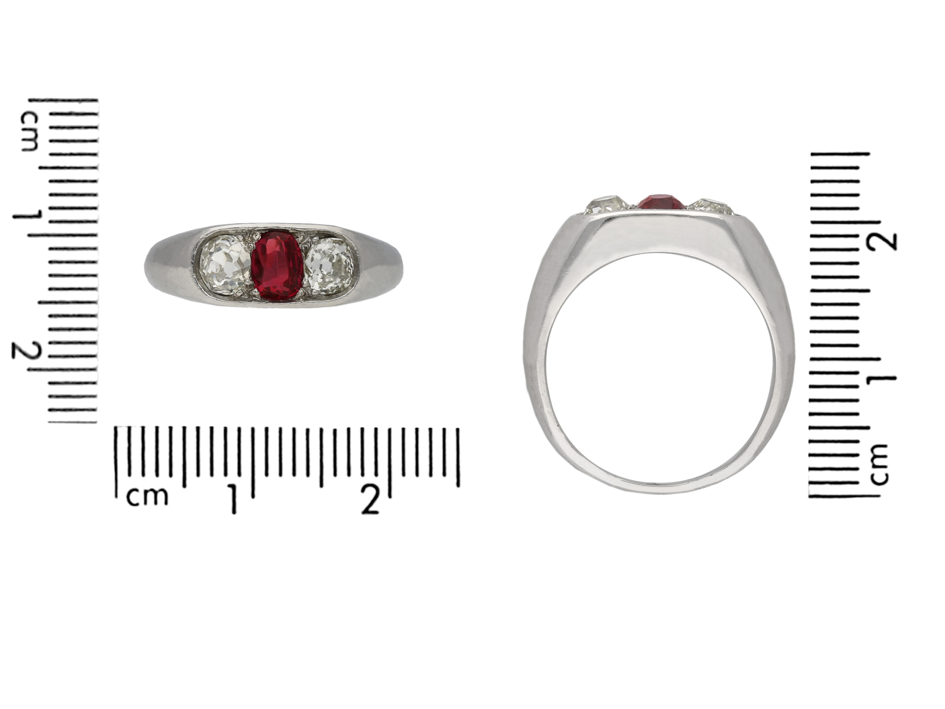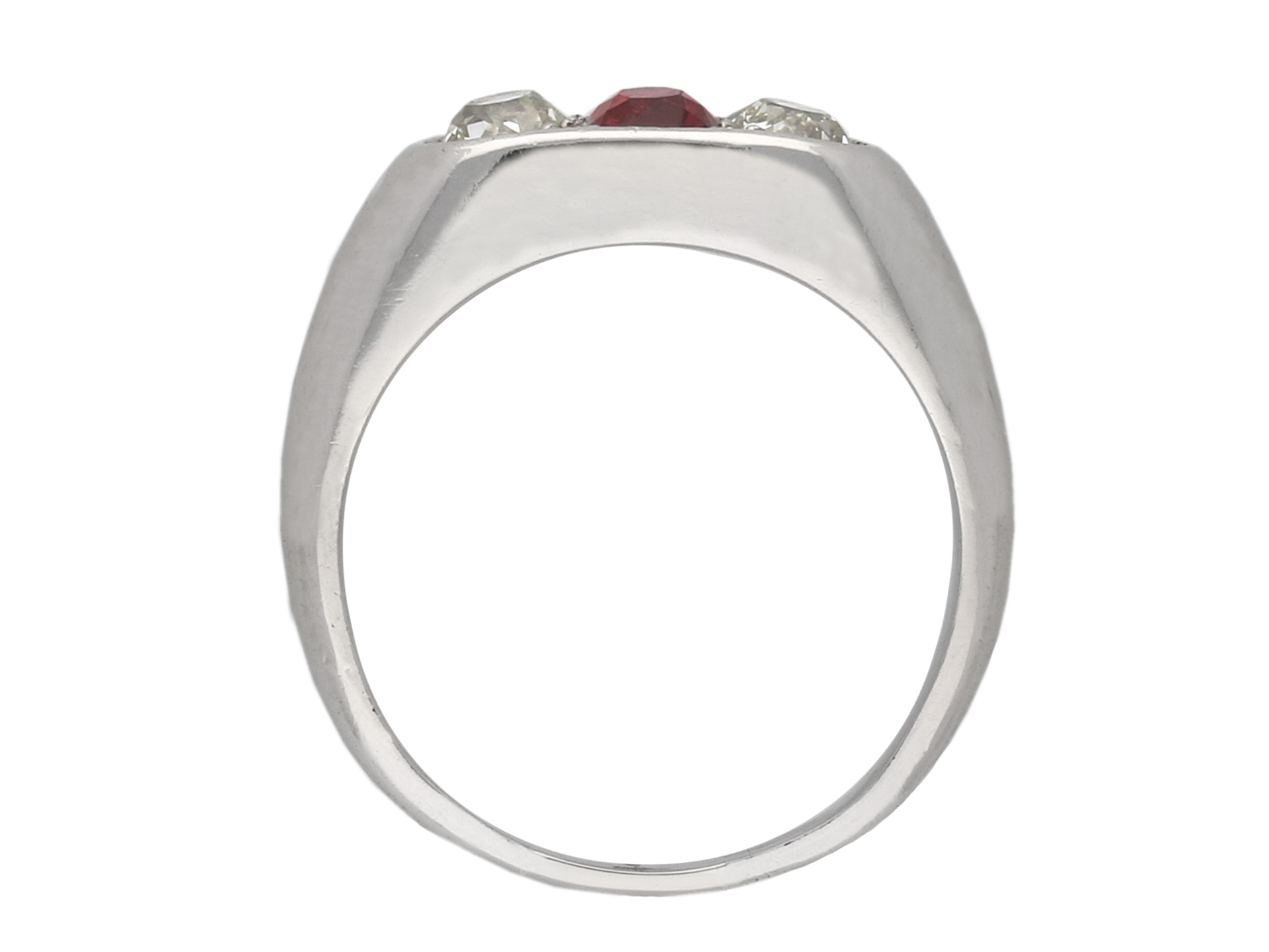 Art Deco ruby and diamond three stone ring, circa 1935.