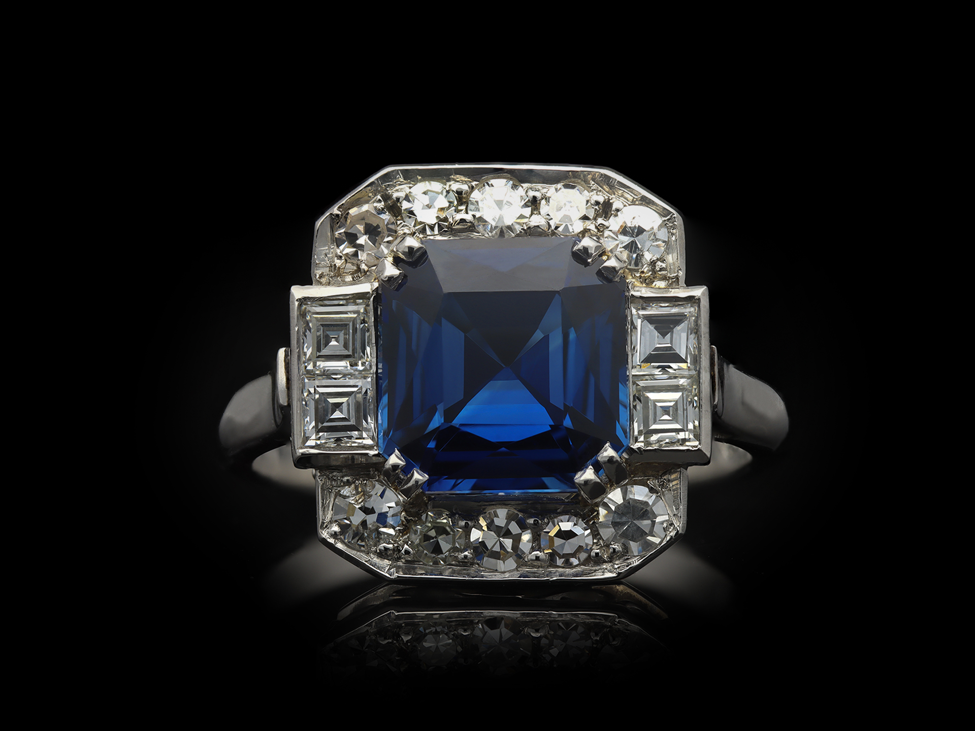 Art Deco sapphire and diamond cluster ring, English, circa 1935.