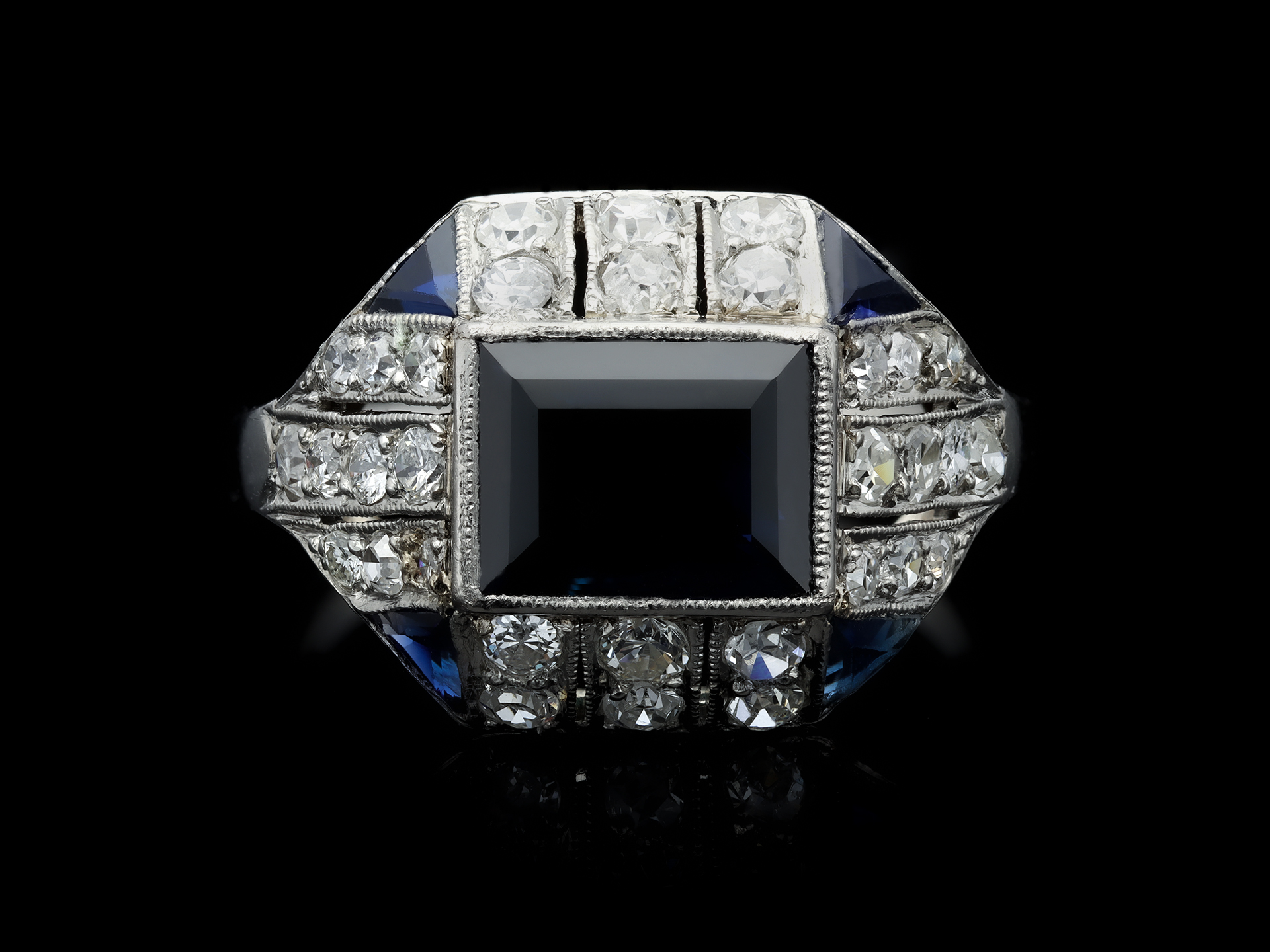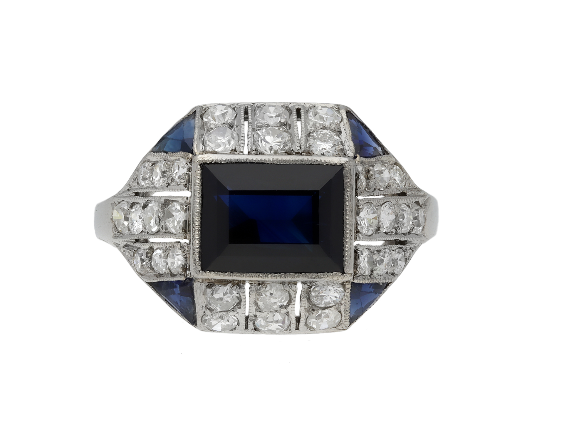 Art Deco sapphire and diamond cluster ring, French, circa 1930.