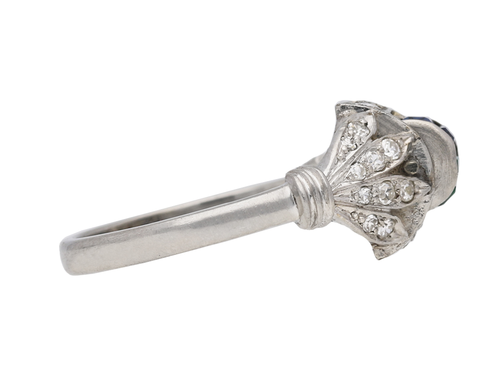 to a solid D-shape shank. Tested platinum, maker's mark W & H Ltd, circa 1930.