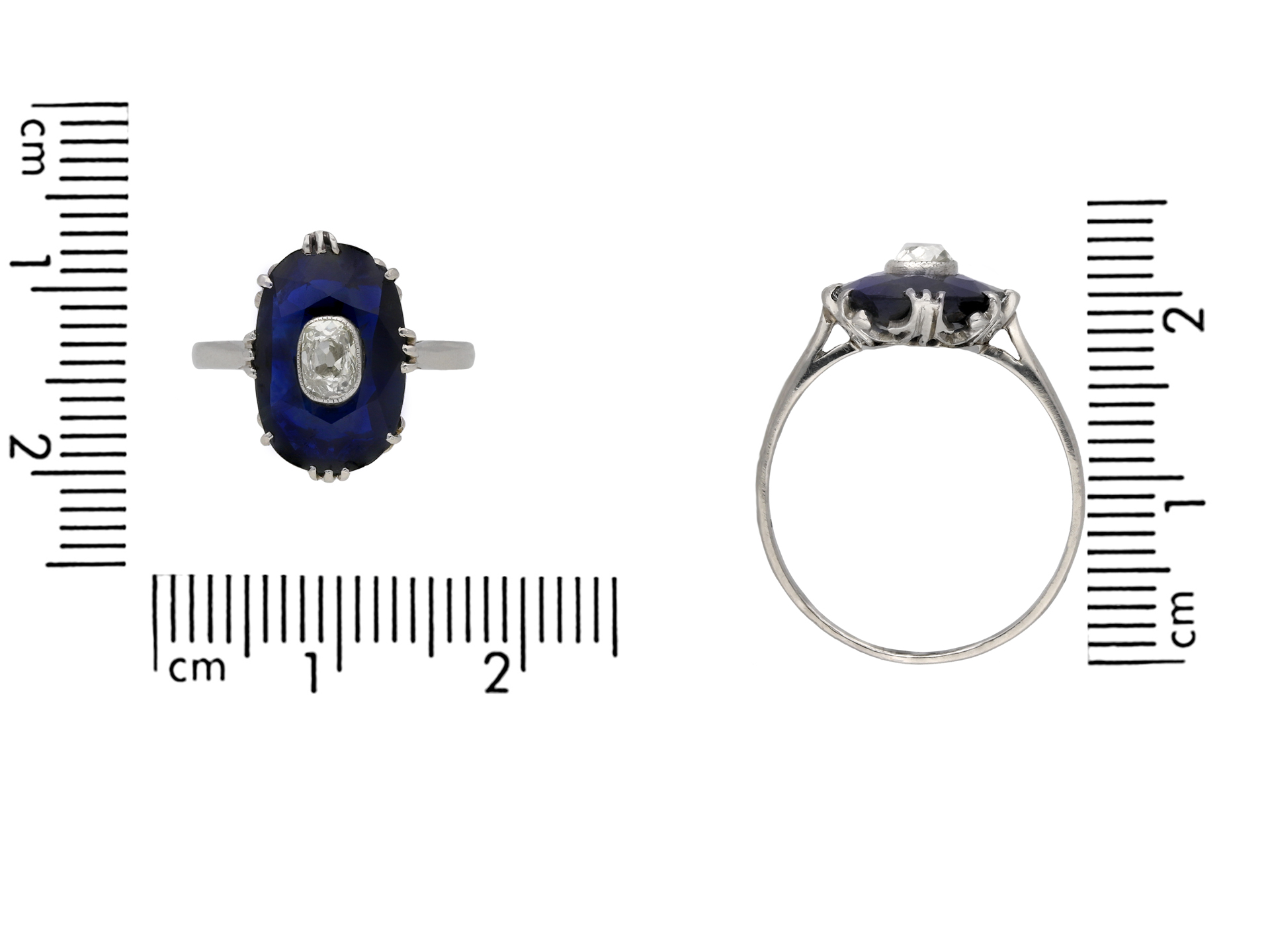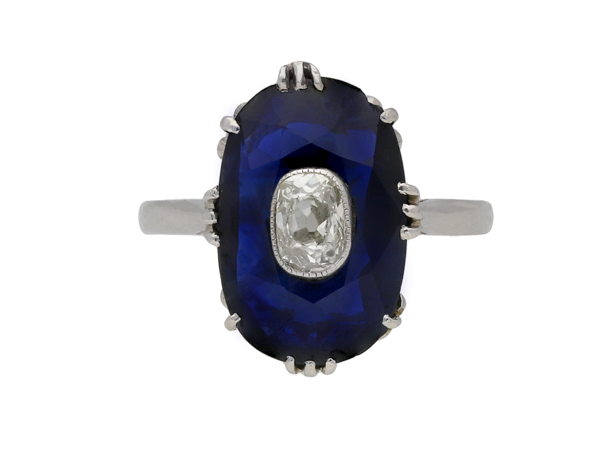 Art Deco sapphire ring with diamond set centre, circa 1920.