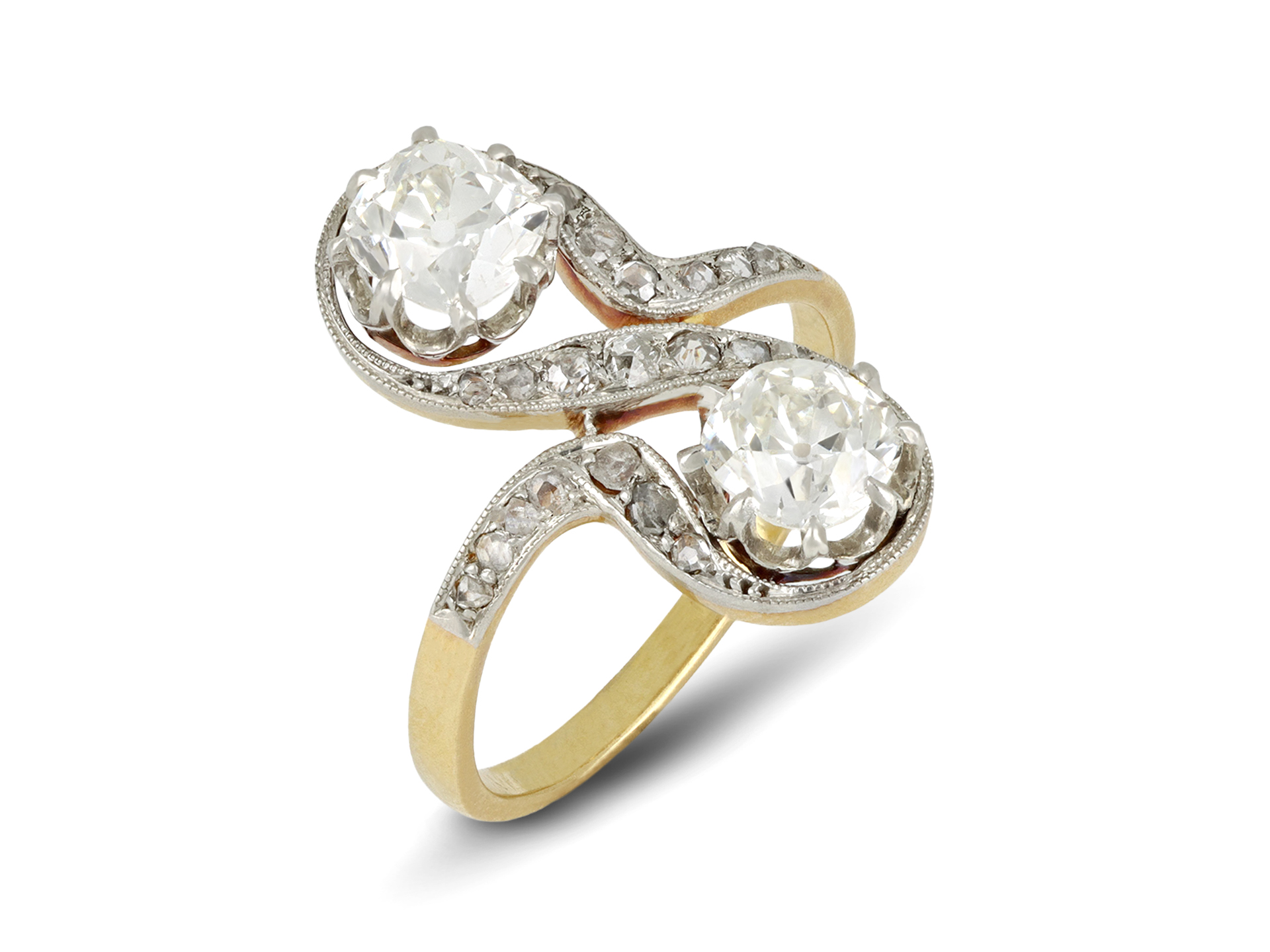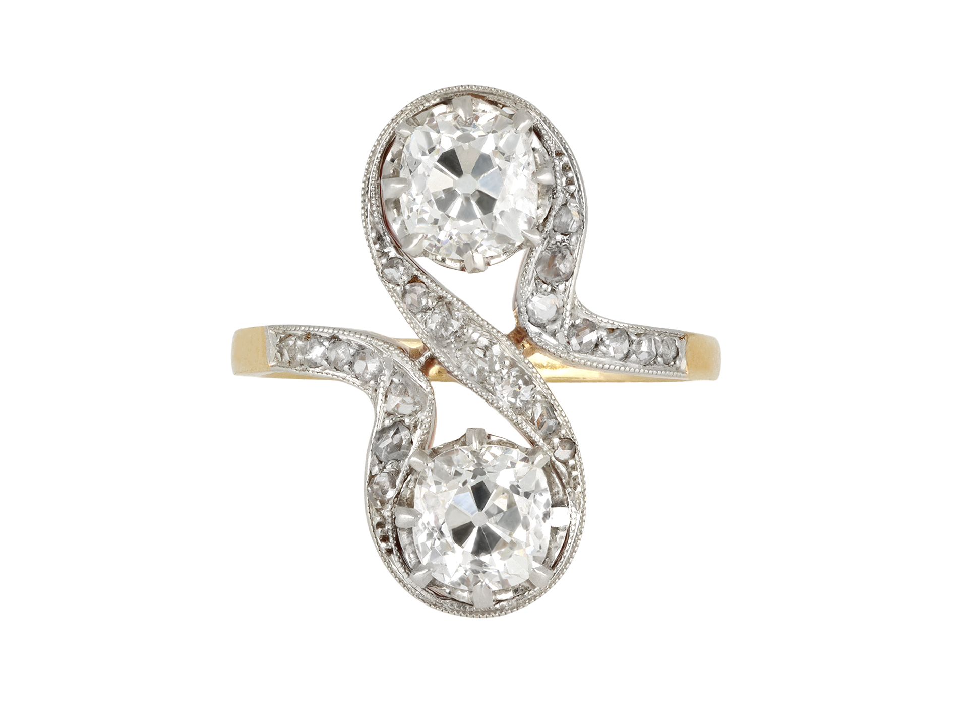 Belle Époque diamond two stone crossover ring, French, circa 1905.