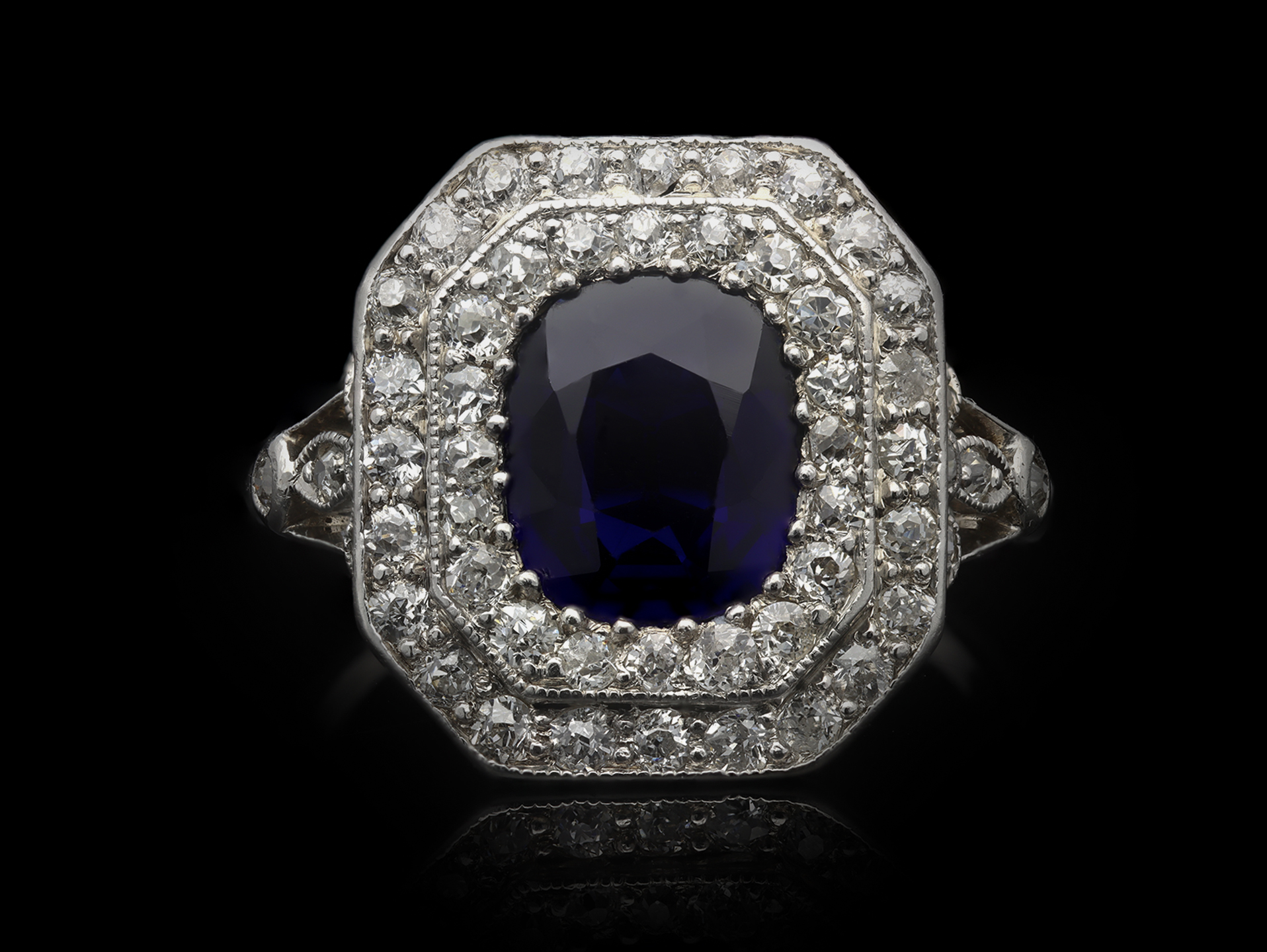 Belle Époque sapphire and diamond cluster ring, circa 1905.