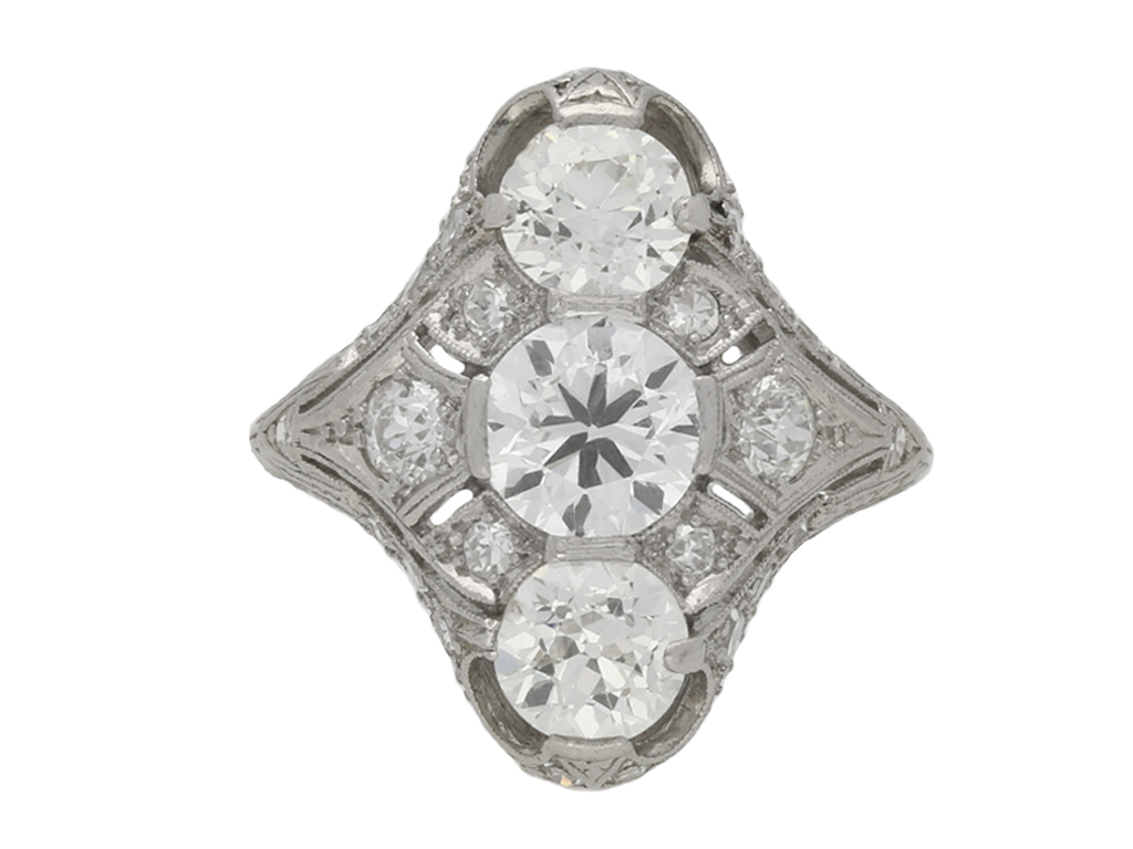 Belle Époque three stone diamond cluster ring, circa 1905.