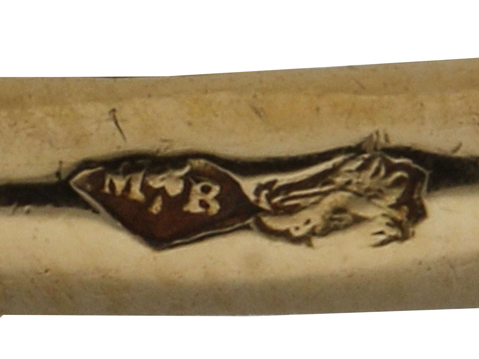 Maurice Beck created exquisite jewels from 1898 to 1926. During the 1920's he made jewellery for René Boivin. His maker's mark, a four leaf clover, can be seen on this ring next to the eagle's head, the french hallmark for 18 carat gold.
