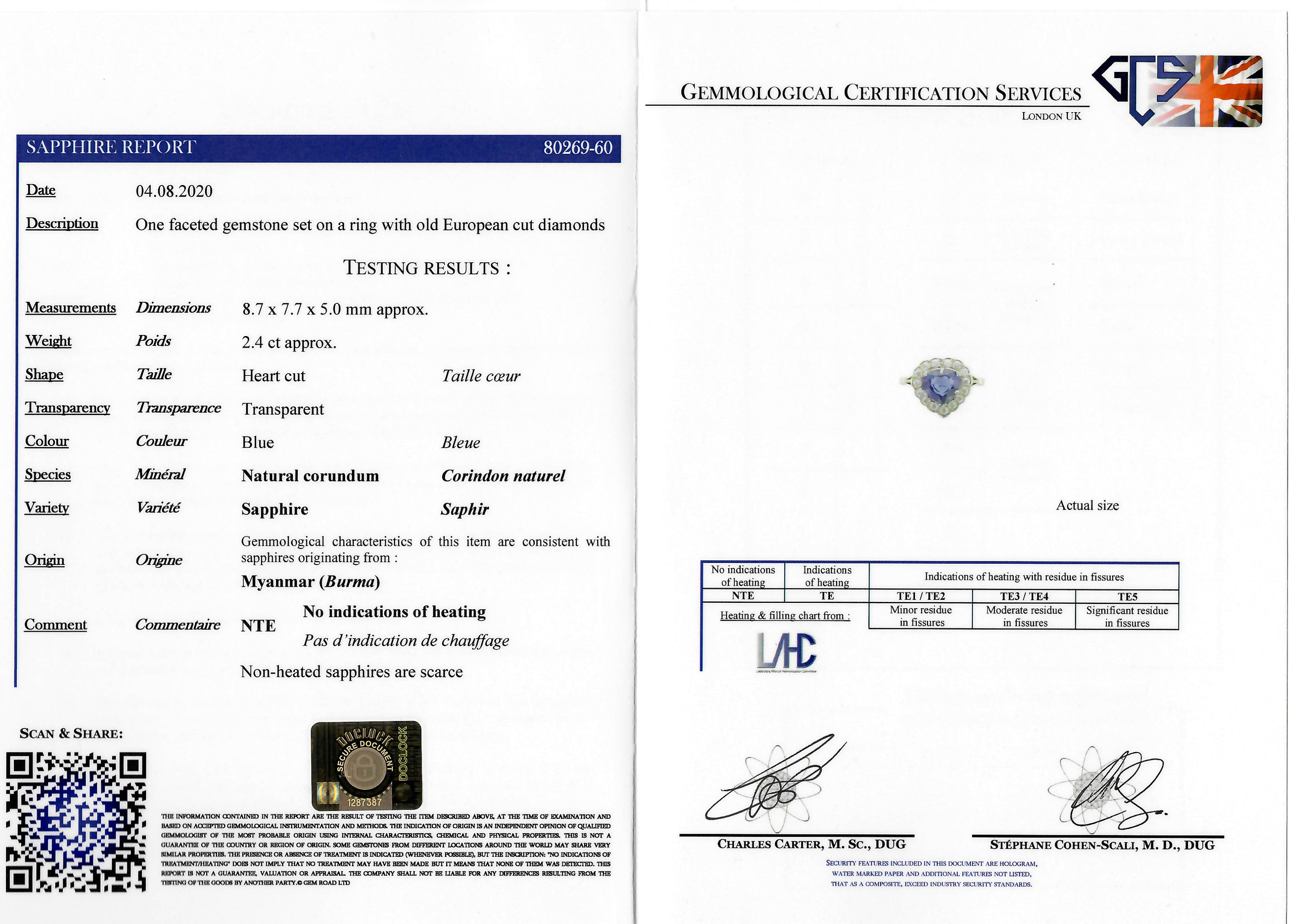 Gemstone Burmese Unheated Sapphire, Double Brilliant, approximately 2.4ct 15 x Diamonds, Old Cut, approximately 1ct total
