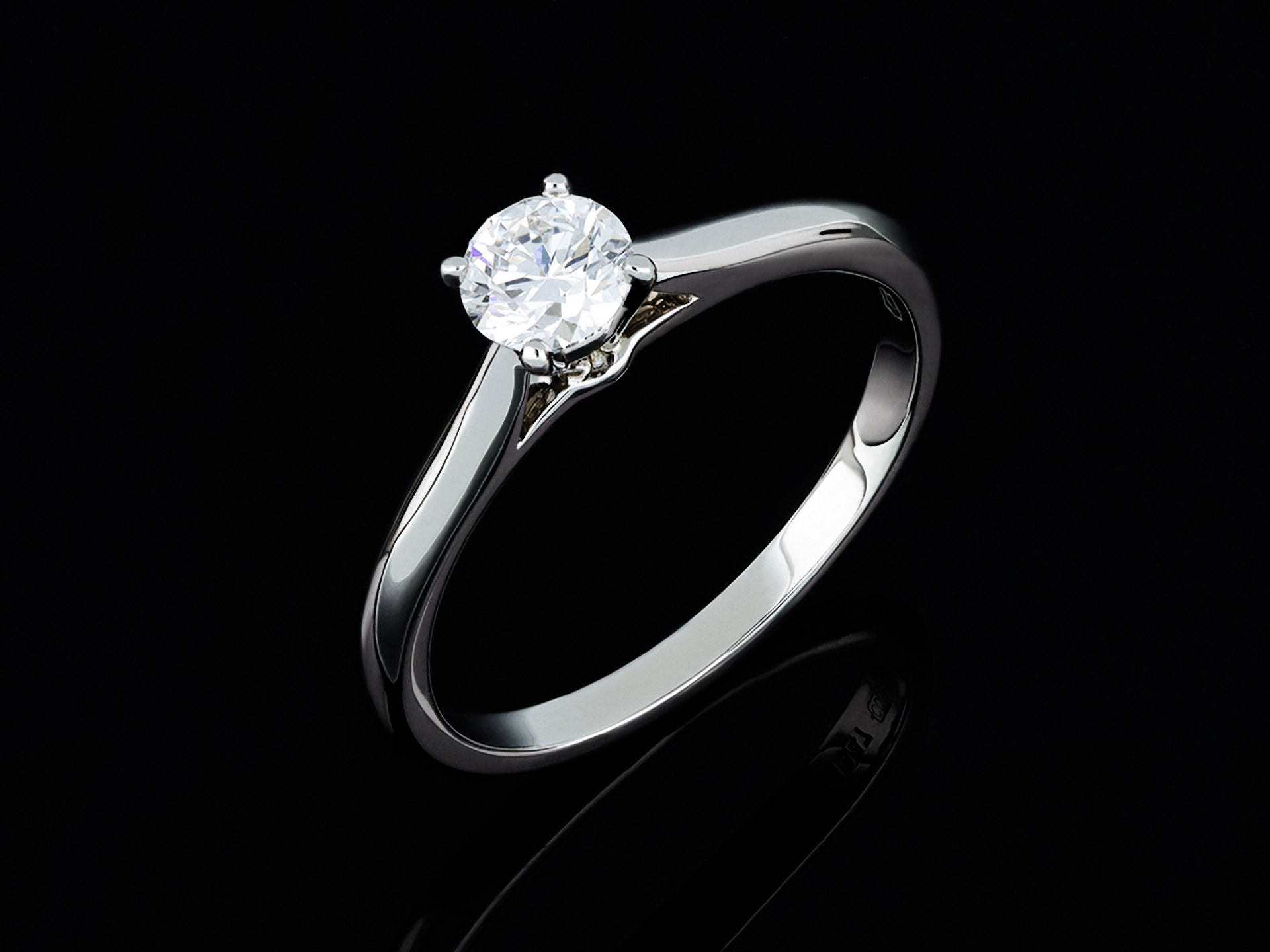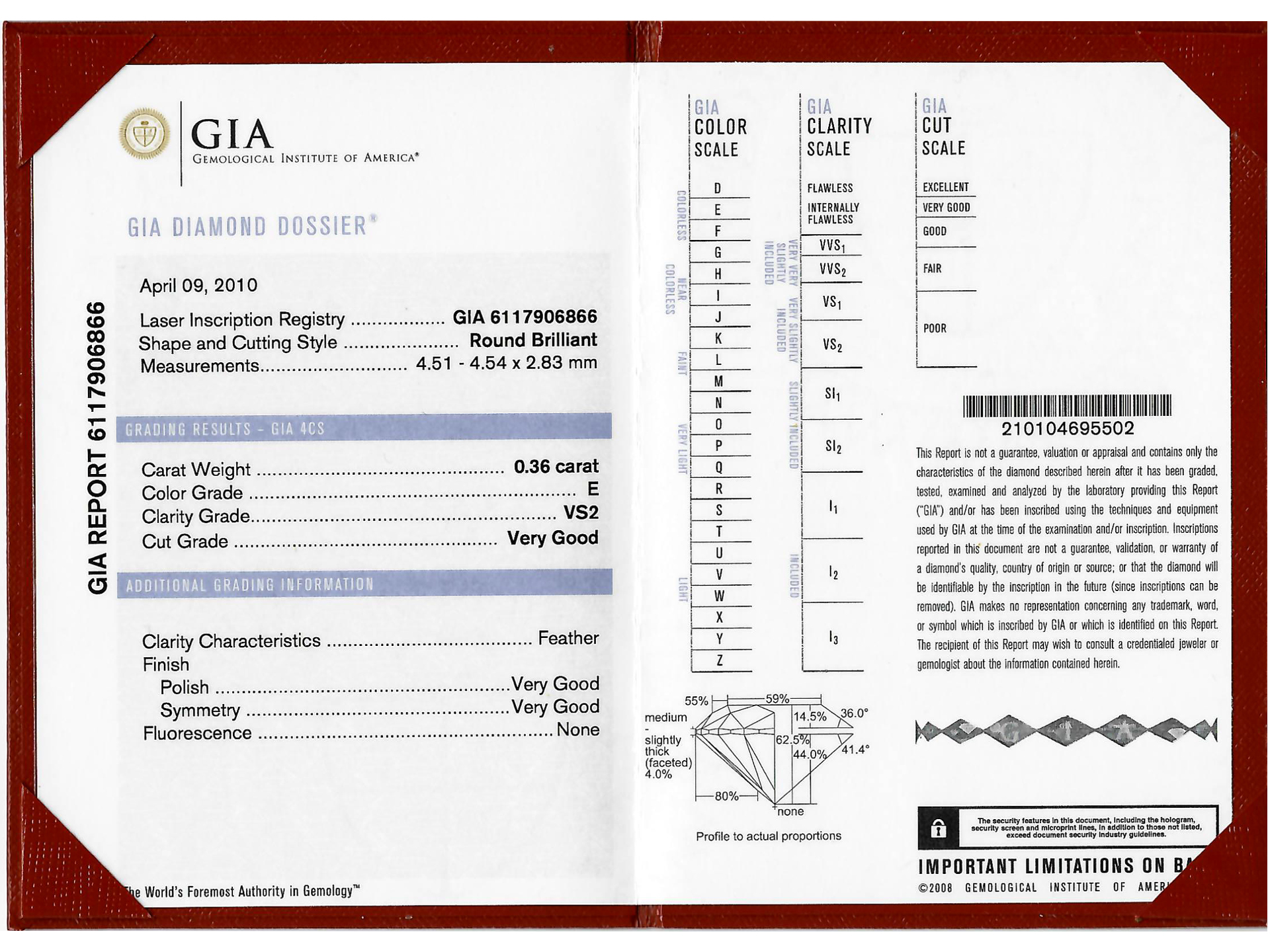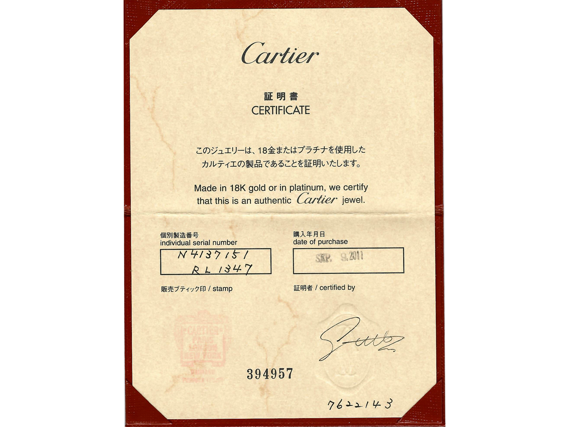 Cartier diamond solitaire ring. Set to centre with a round brilliant cut diamond, E colour, VS2 clarity, with a weight of 0.36 carats, in an open back claw setting, to an elegant solitaire design featuring curving claws, an openwork gallery and round open backholing, flanked by inwardly tapering openwork shoulders flowing through to a solid D-shape shank. Marked platinum, signed 'Cartier', numbered 'RL1347', engraved '0.36', makers mark 'GG', French, accompanied by Cartier certificate of authenticity and Gemmological Institute of America (GIA) report #6117906866