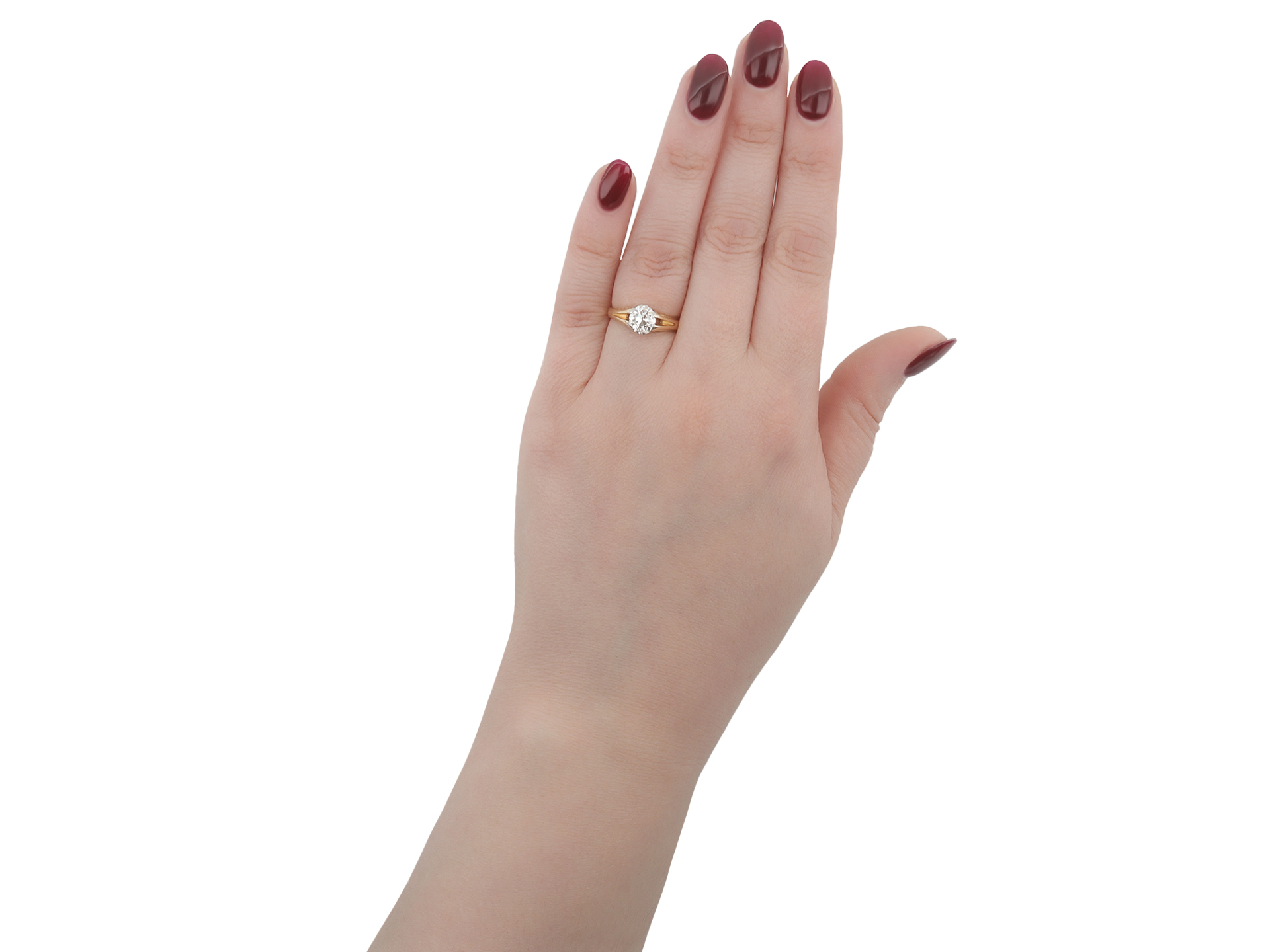 This ring has been assessed by our in-house gemmologist: Old cut diamond approximately I-J colour, VS clarity.