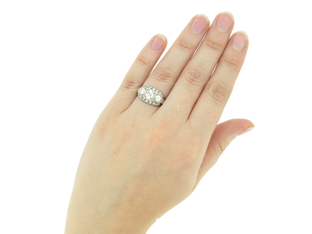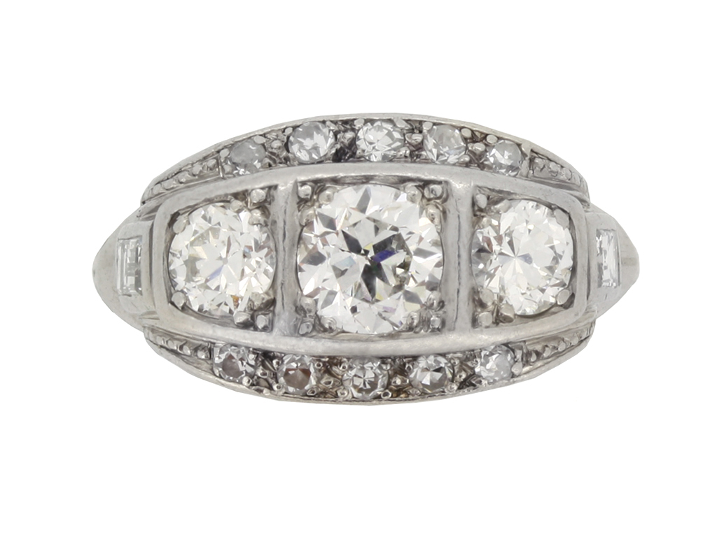 Diamond three stone cluster ring, circa 1930.