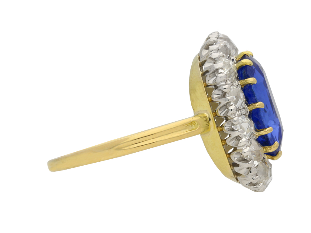 Edwardian Burmese sapphire and diamond cluster ring, circa 1910.
