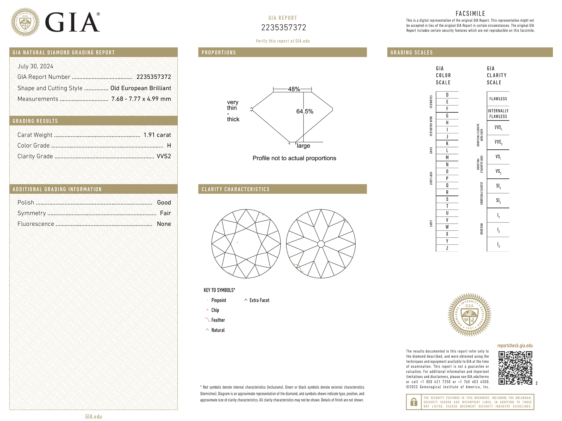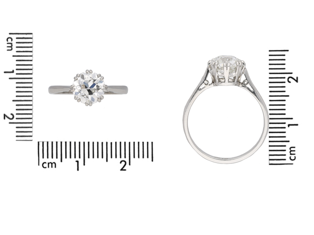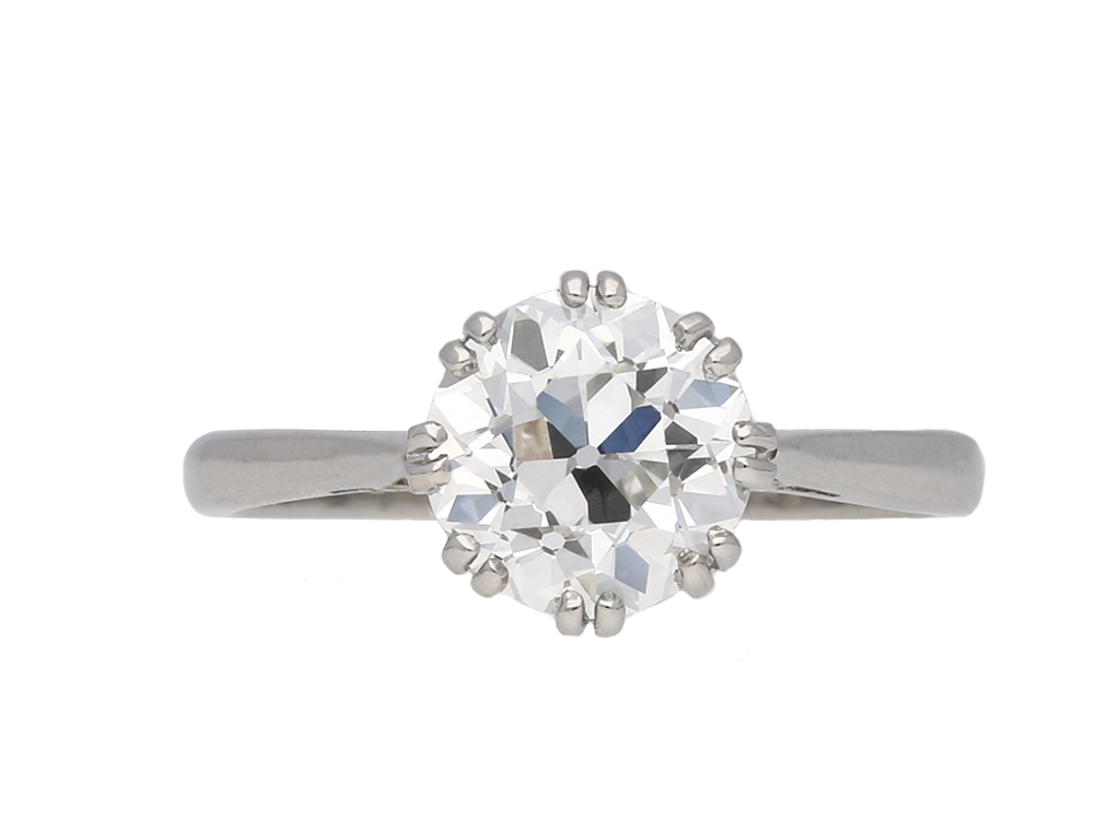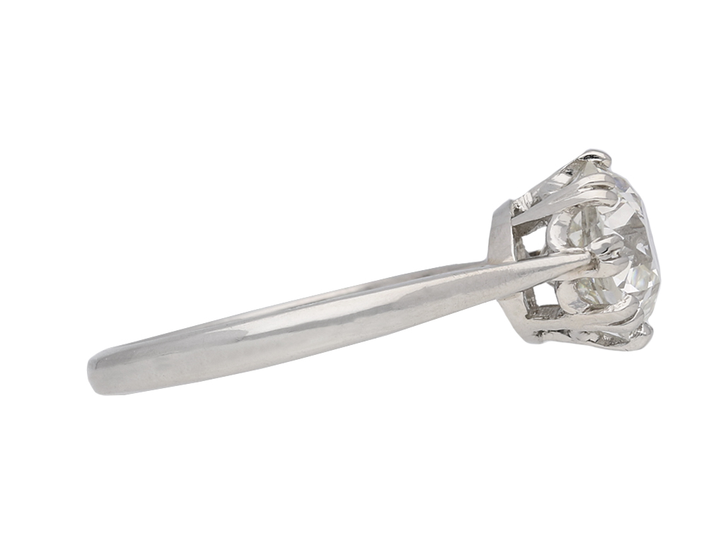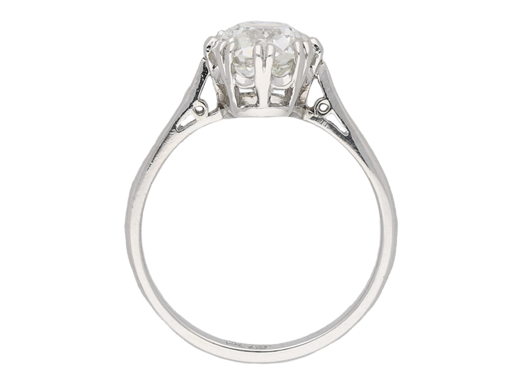 Edwardian Diamond Solitaire Ring. Set with one round old cut diamond, H colour, VVS2 clarity, with a weight of 1.91 carats in an open back claw setting, to an elegant solitaire design featuring split stylised claws, a decorative openwork gallery and round open backholing, the inwardly tapering shoulders with chenier detail flow through to a solid D-shape shank. Marked platinum, English, circa 1910, accompanied by Gemological Institute of America (GIA) report #2235357372.