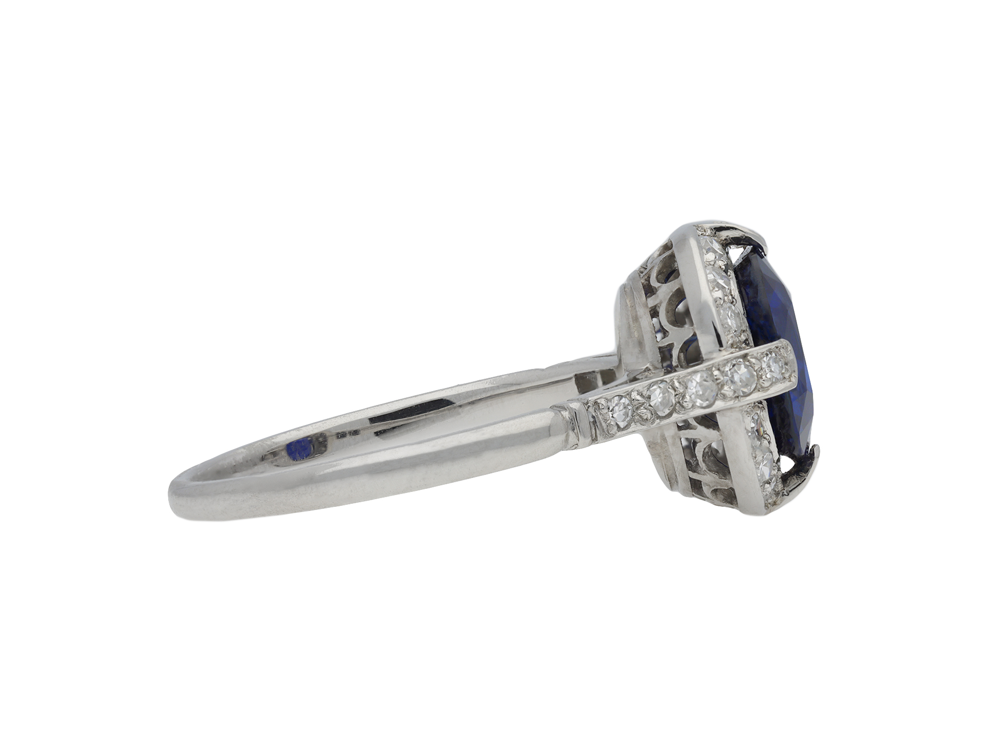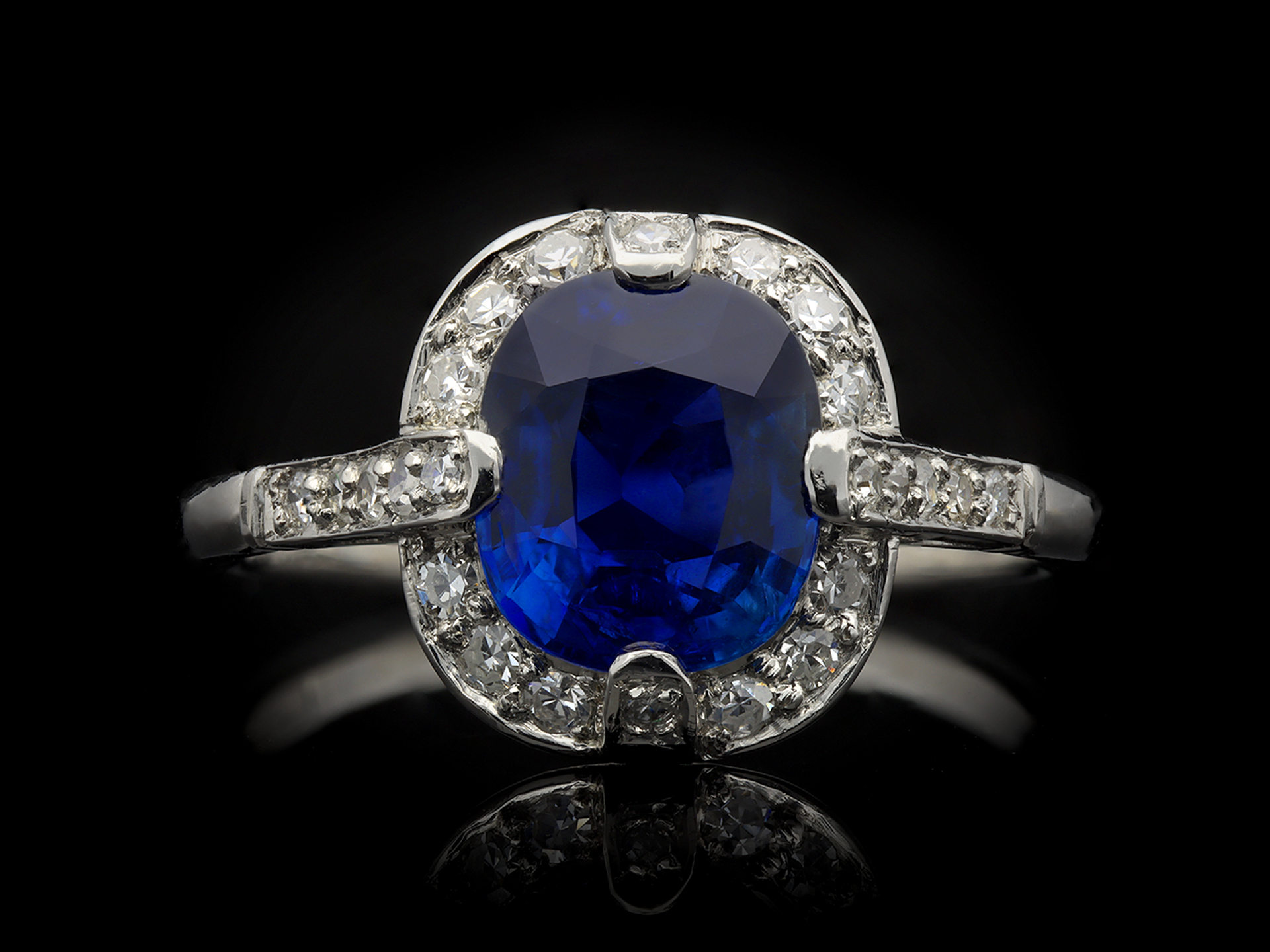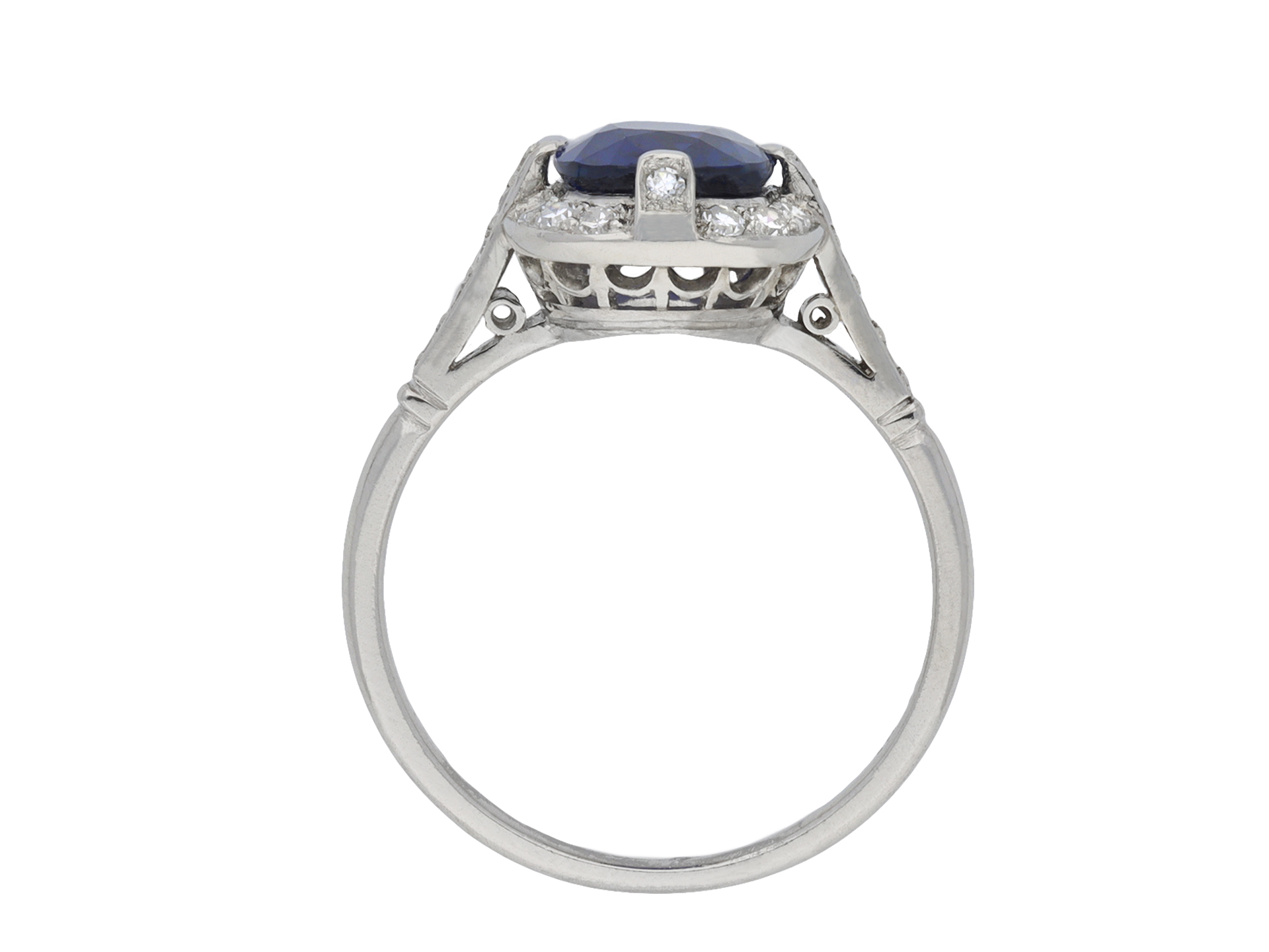 Edwardian Royal Blue Burmese sapphire and diamond cluster ring, circa 1915.