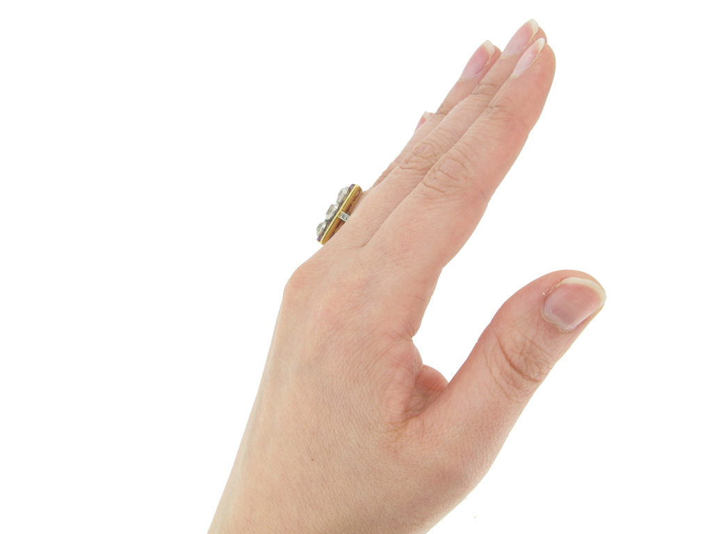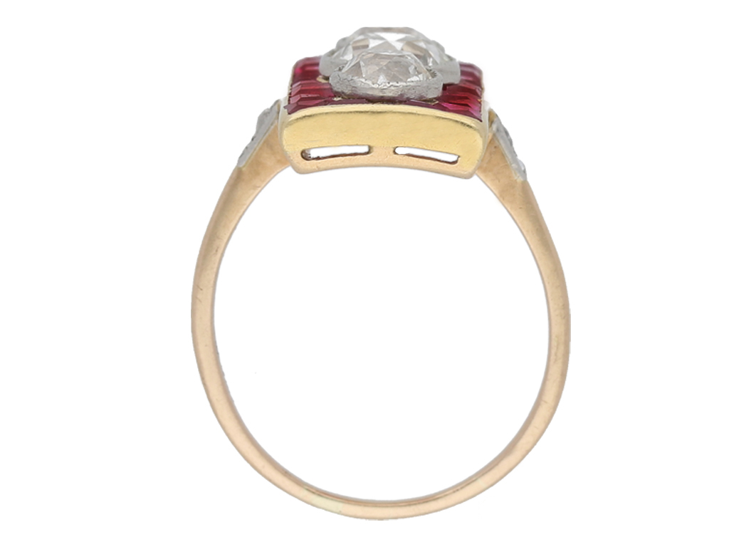 Gemstone 3 x Diamonds, Old Cut, approximately 1.8ct total 4 x Diamonds, Rose Cut 24 x Rubies, Baguette Cut, approximately 2.4ct total