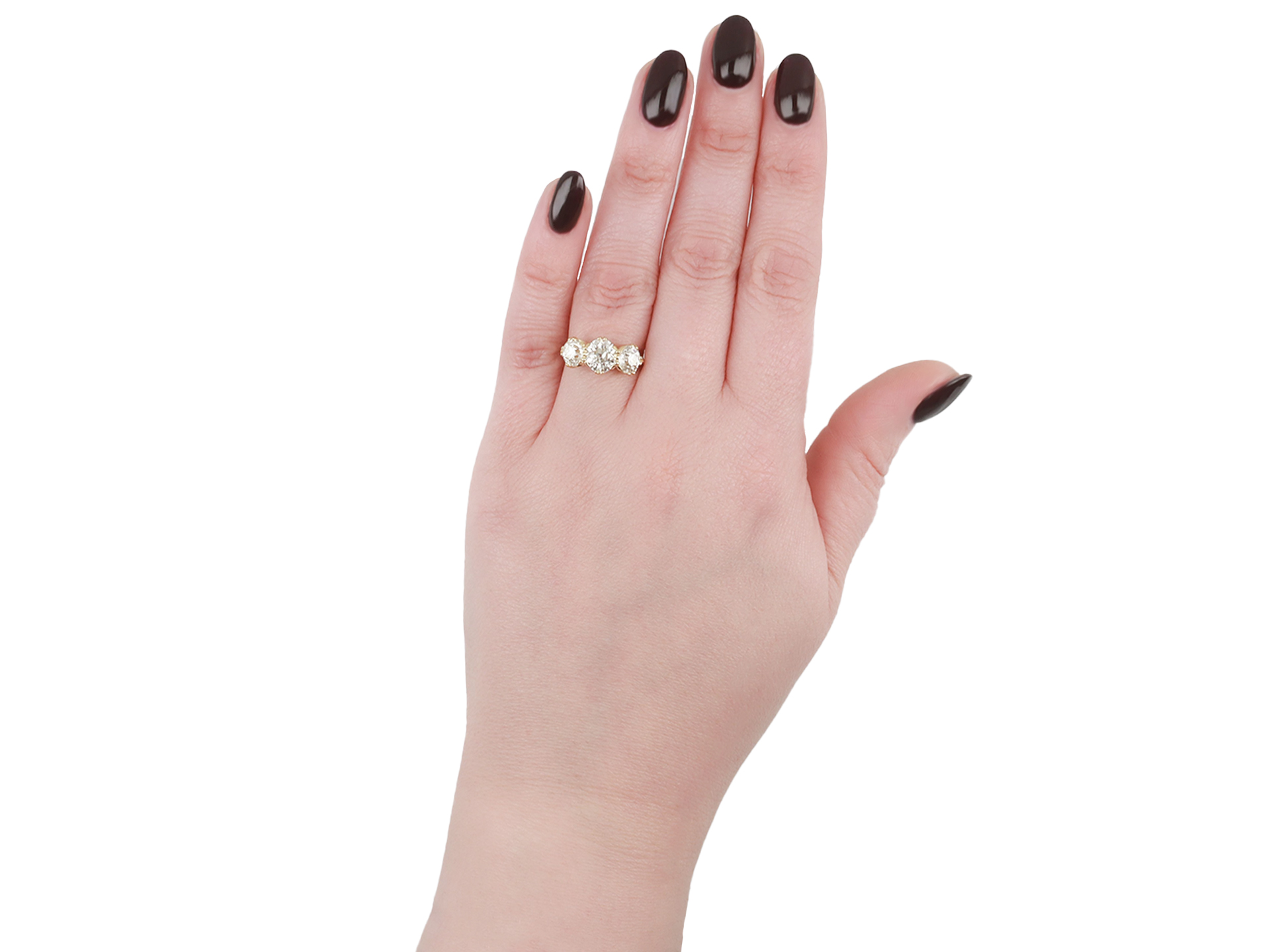 Edwardian diamond three stone ring, circa 1905.