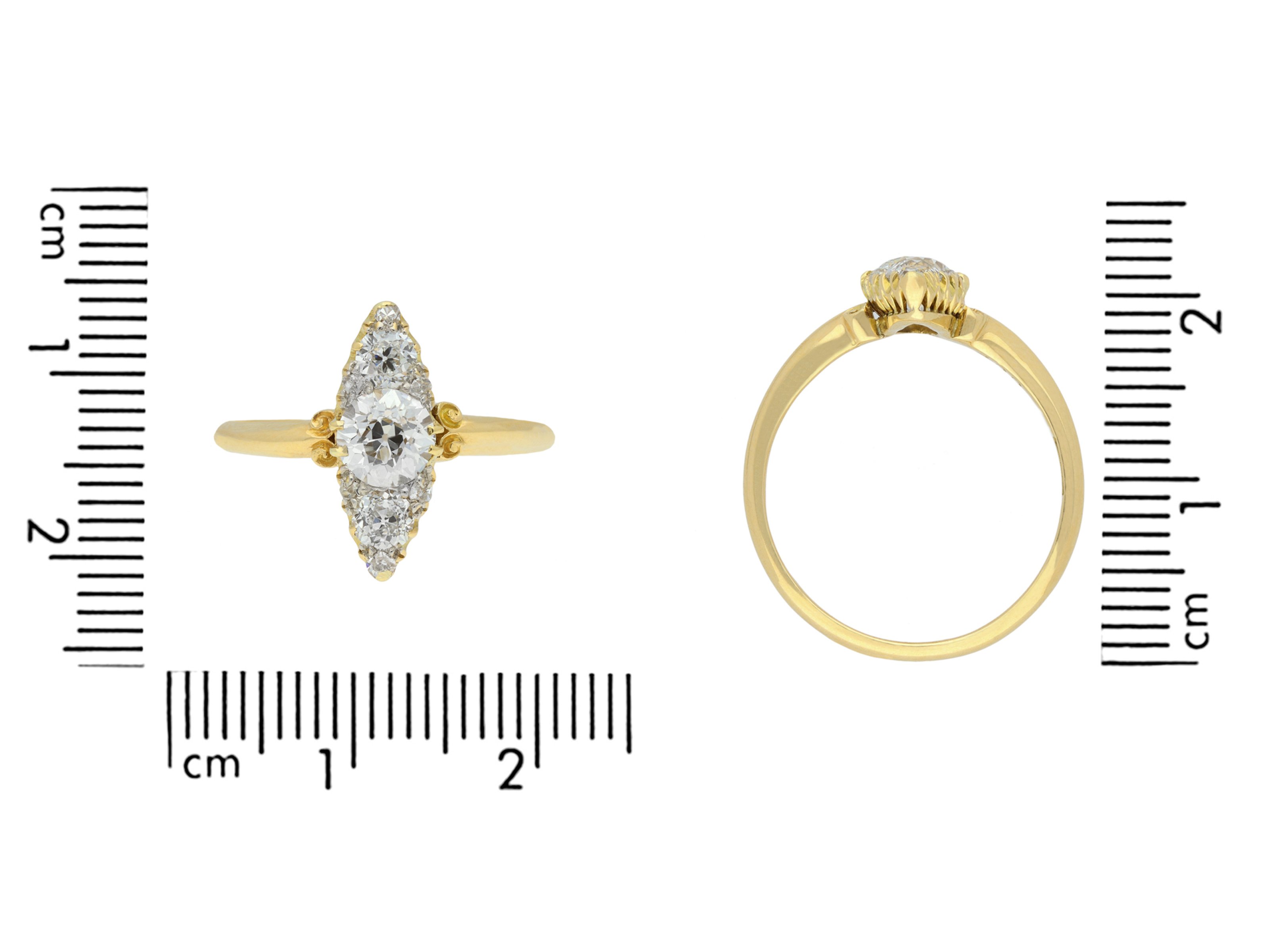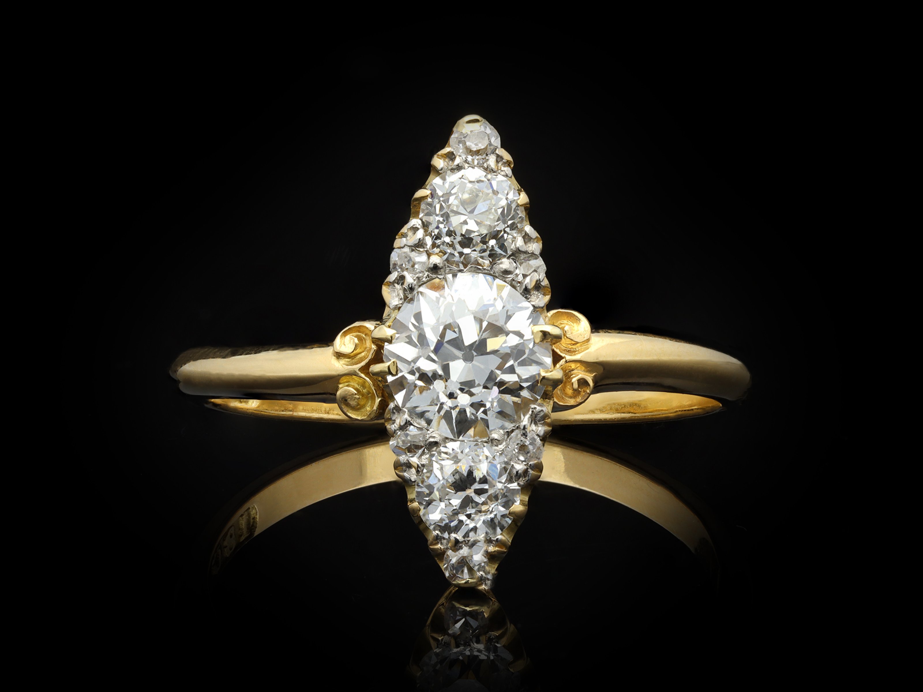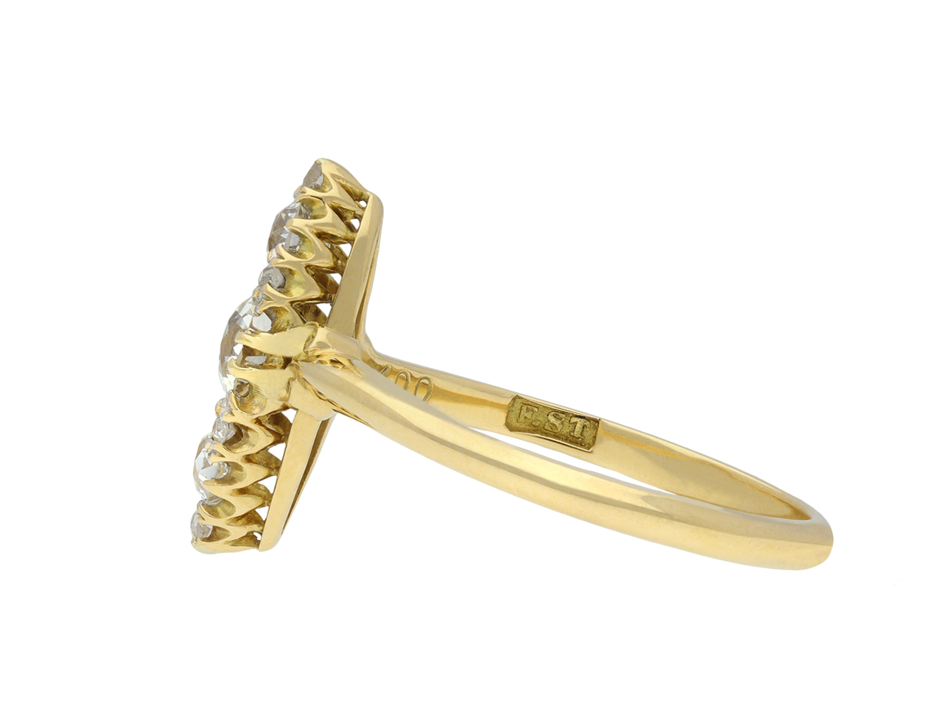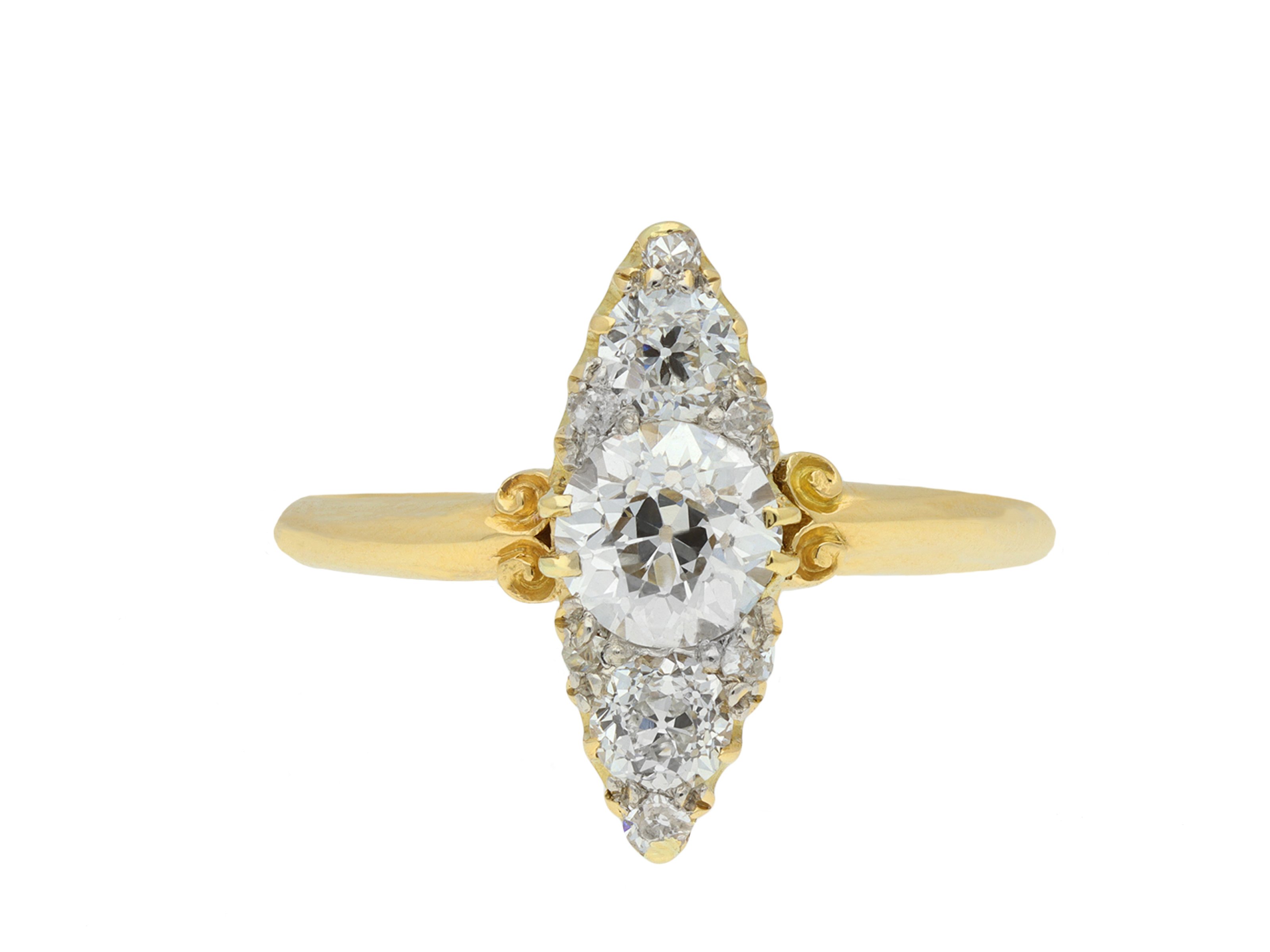 Edwardian marquise shape diamond cluster ring, circa 1905.