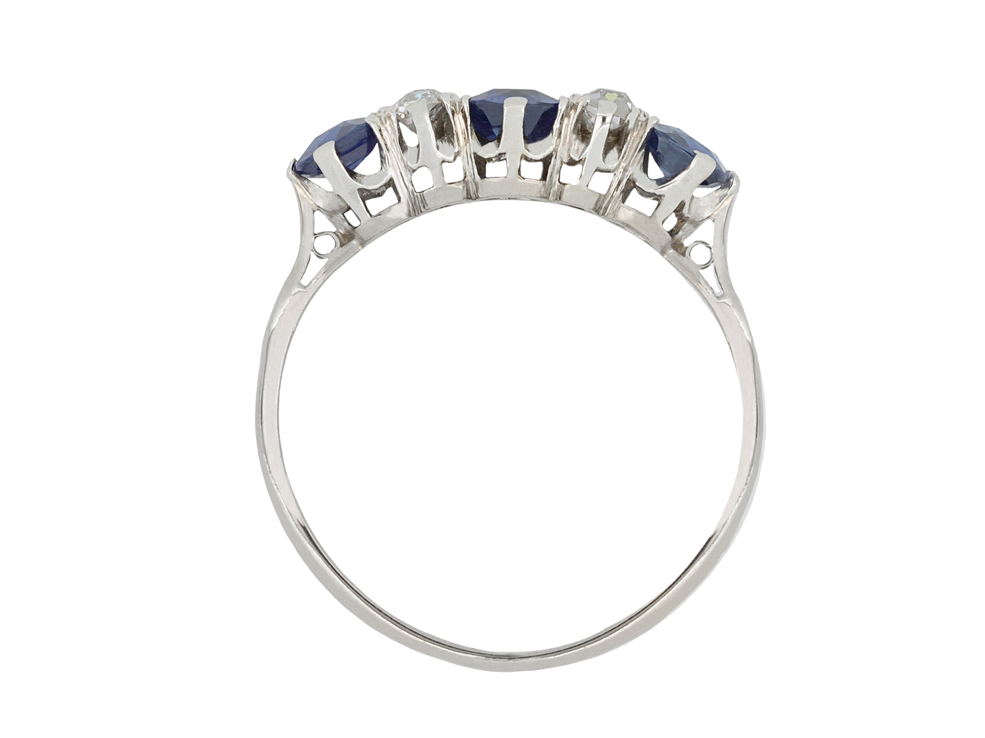 Edwardian sapphire and diamond seven stone ring, circa 1915.