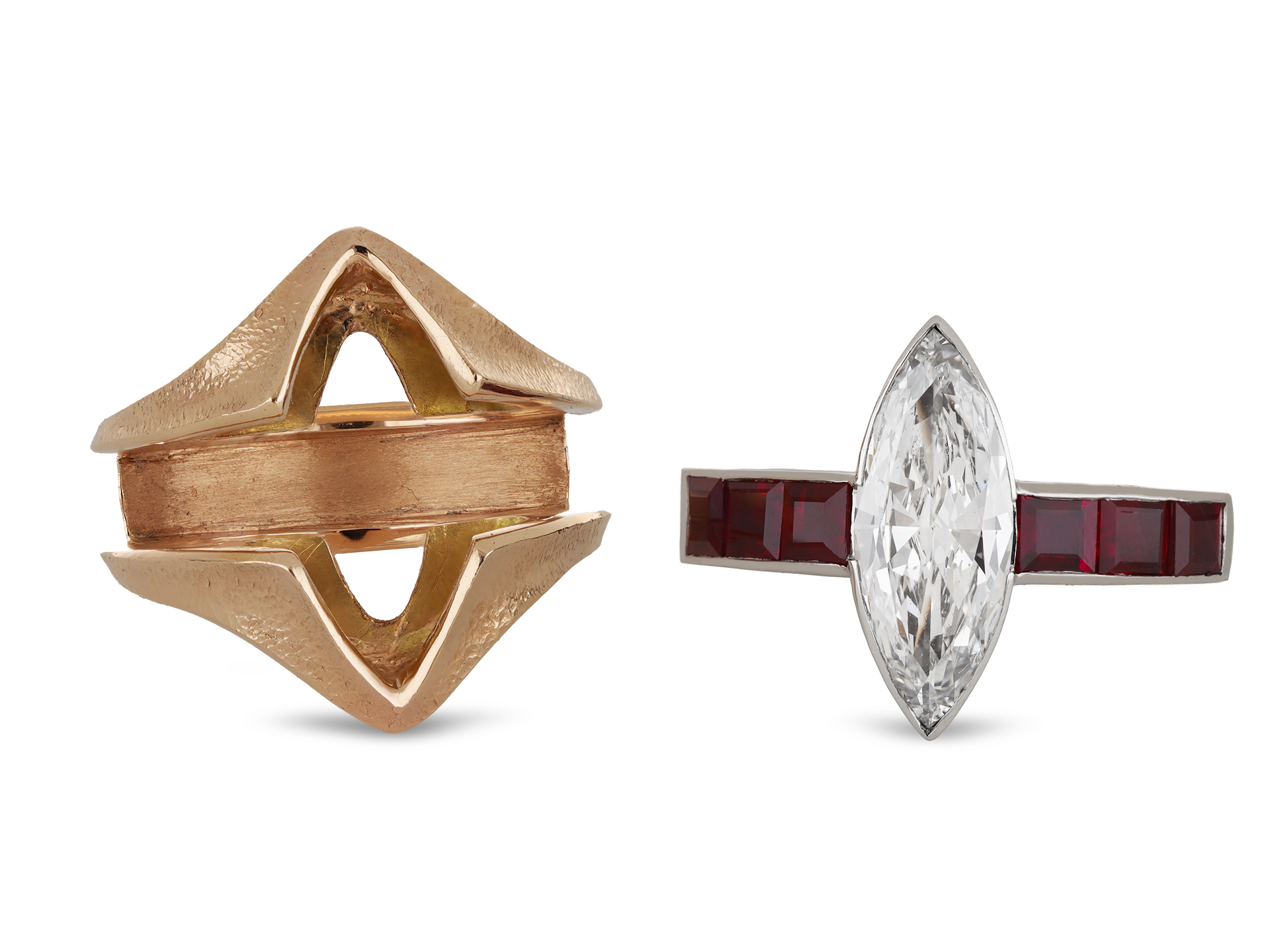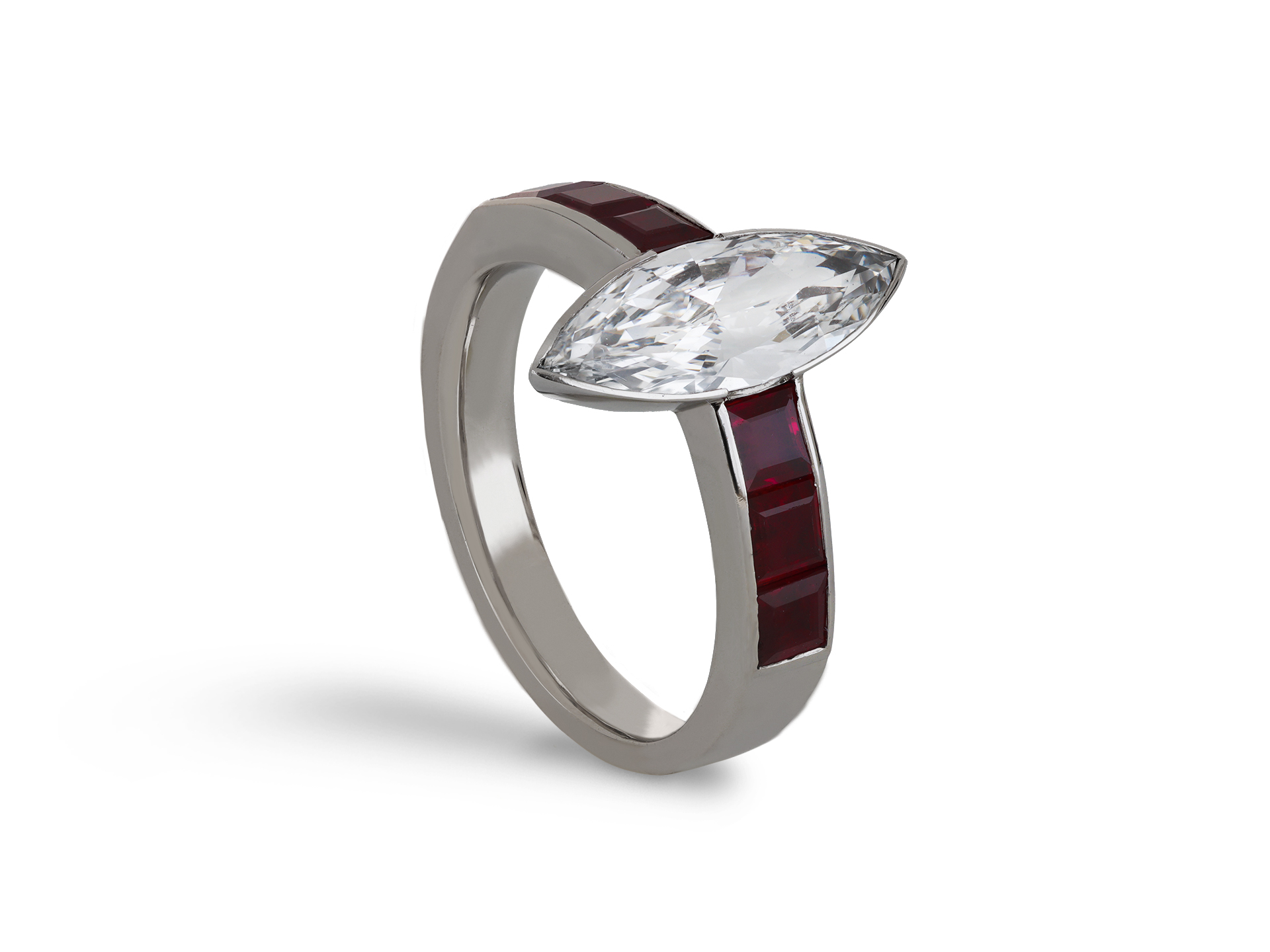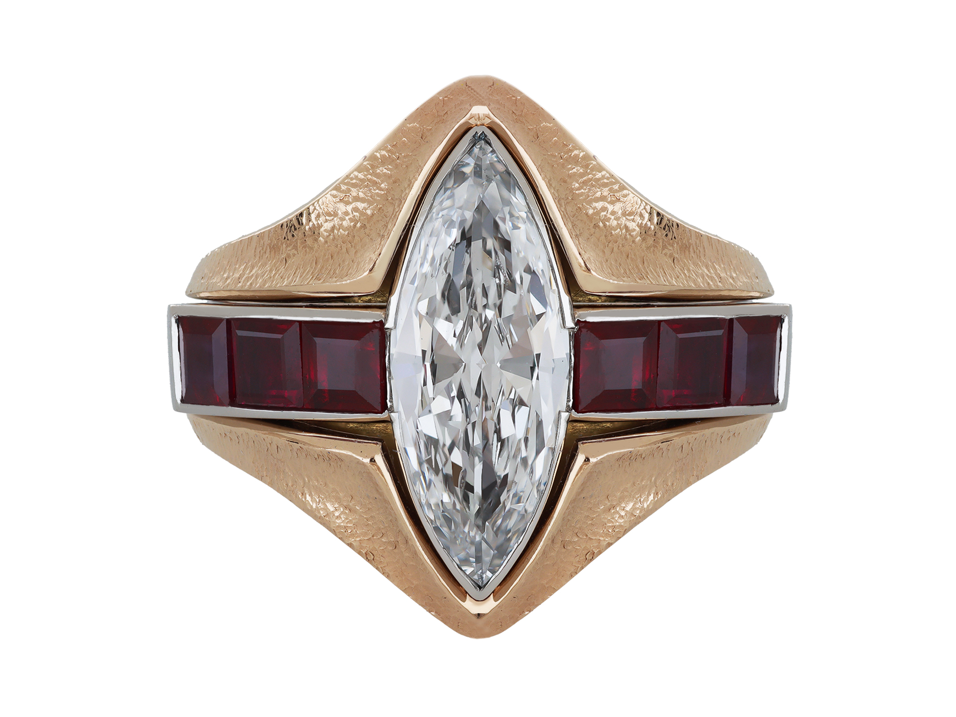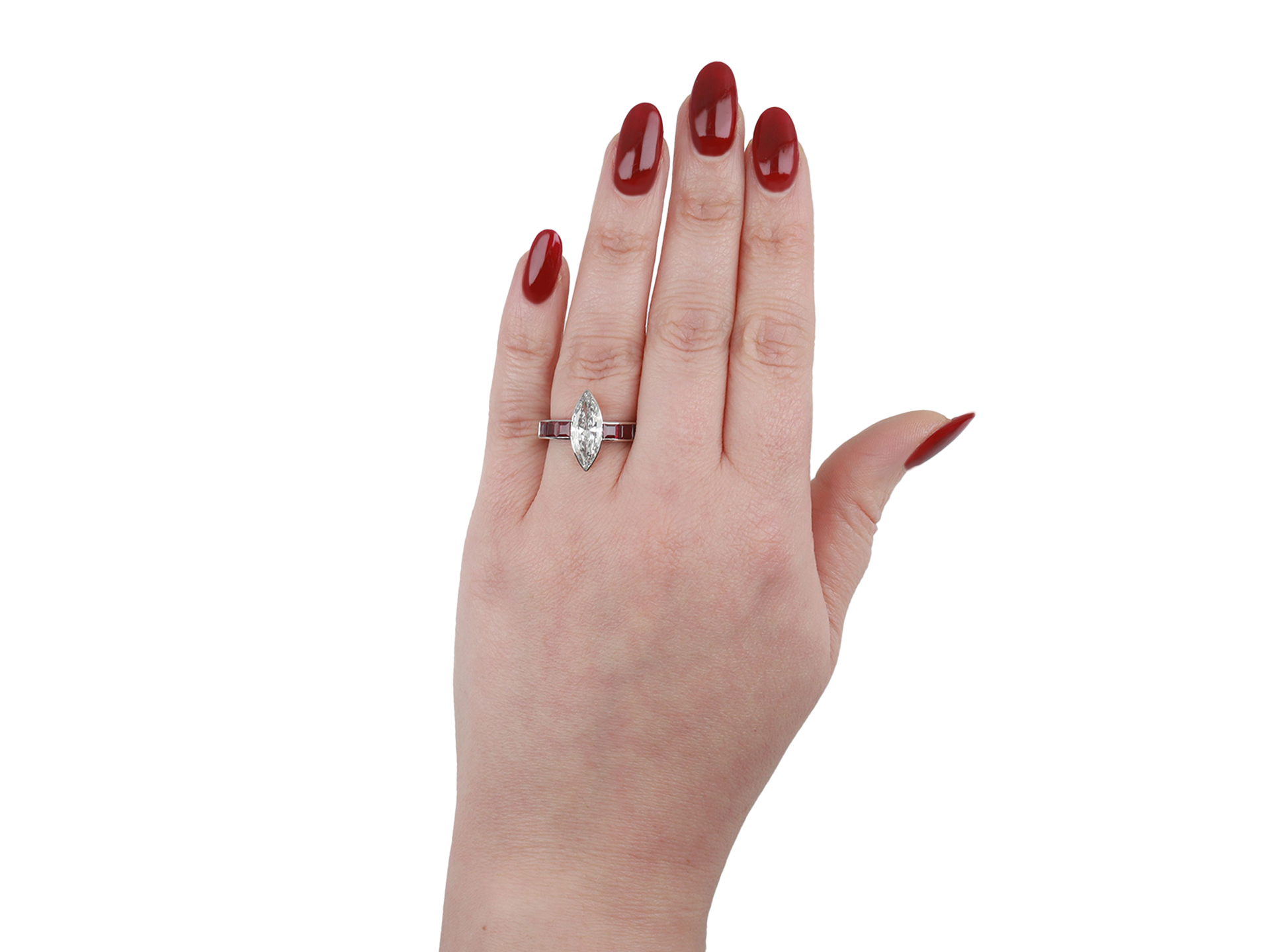 Marquise Diamond and Ruby Convertible Ring, circa 1950.