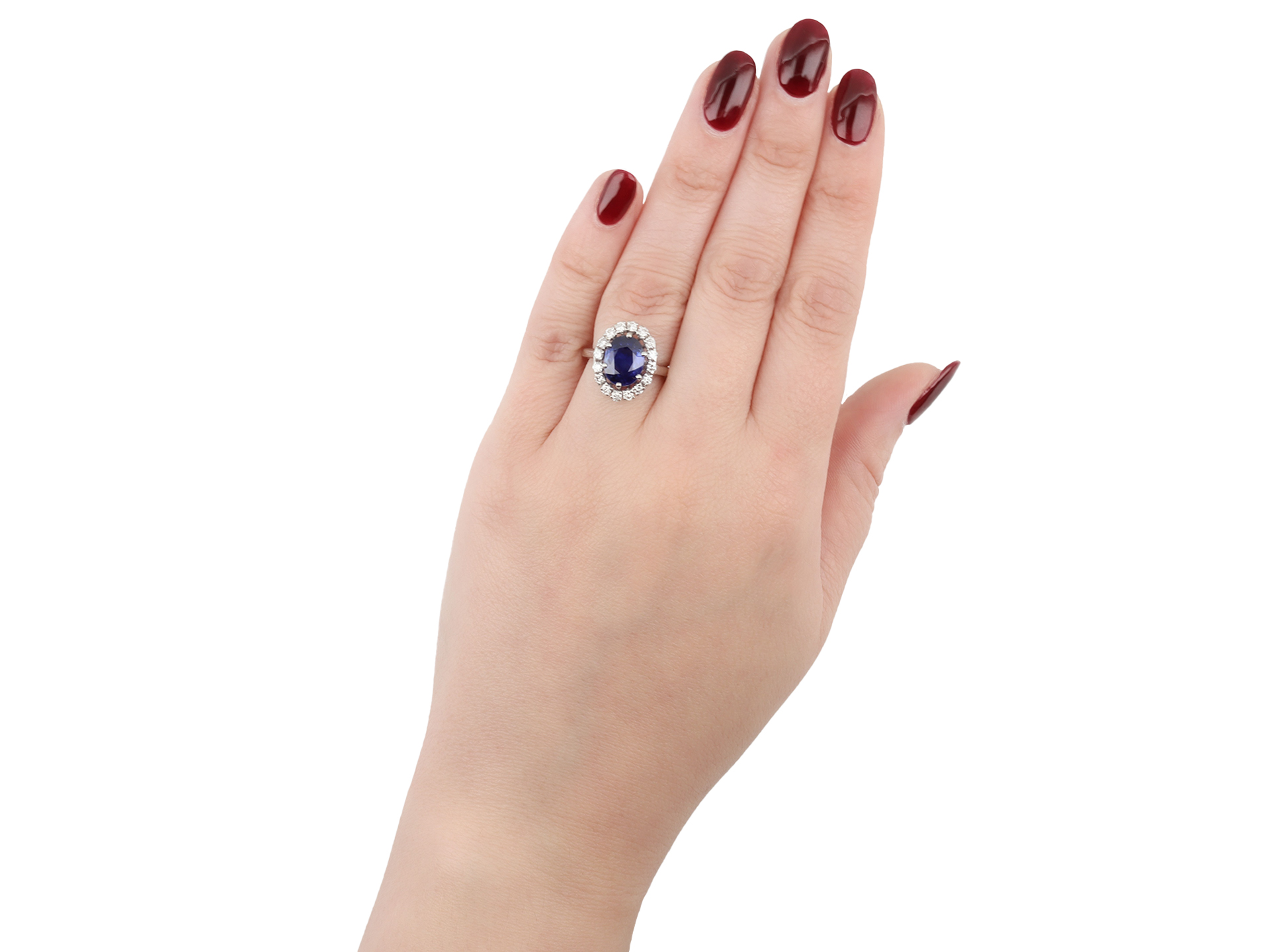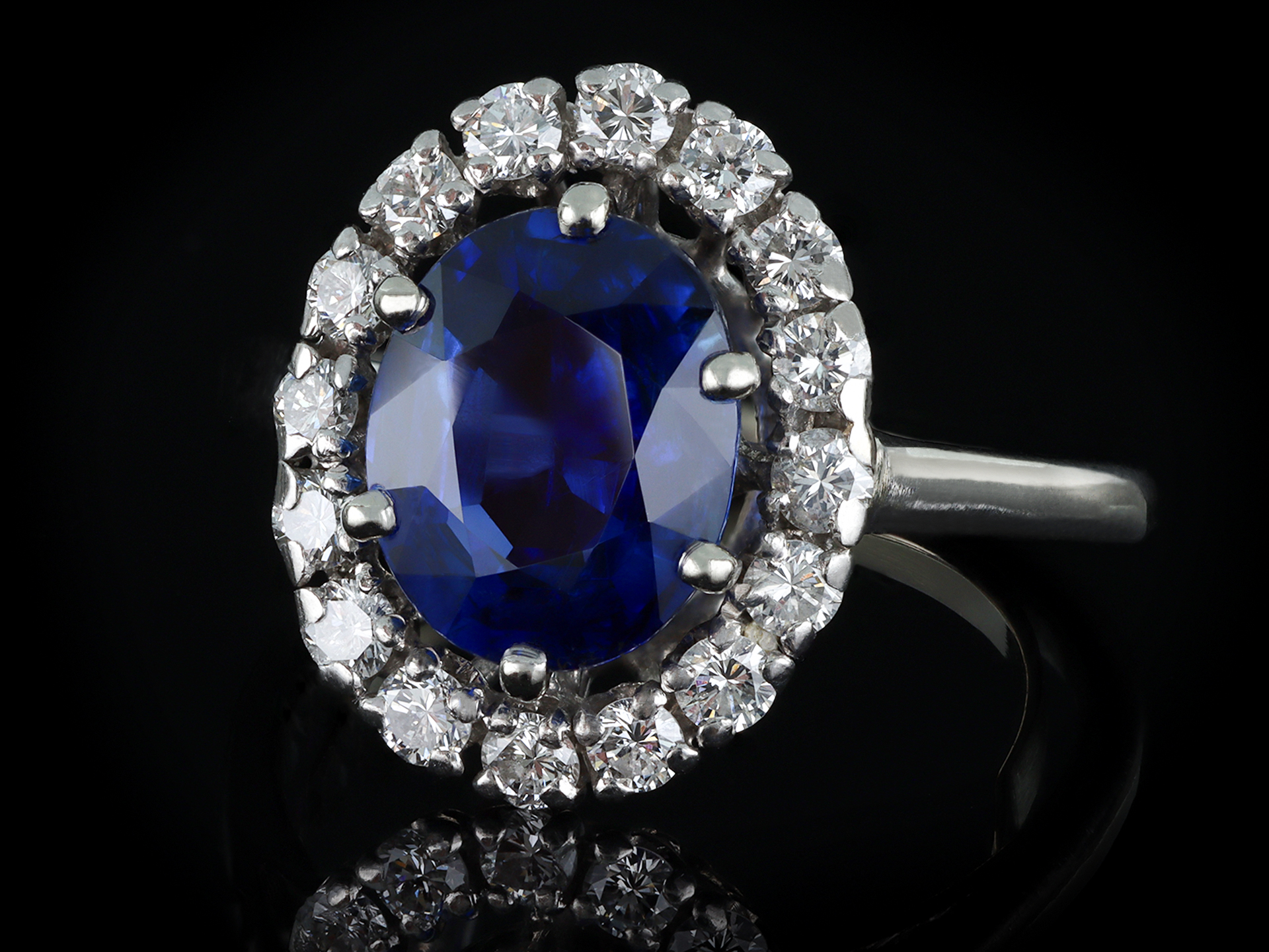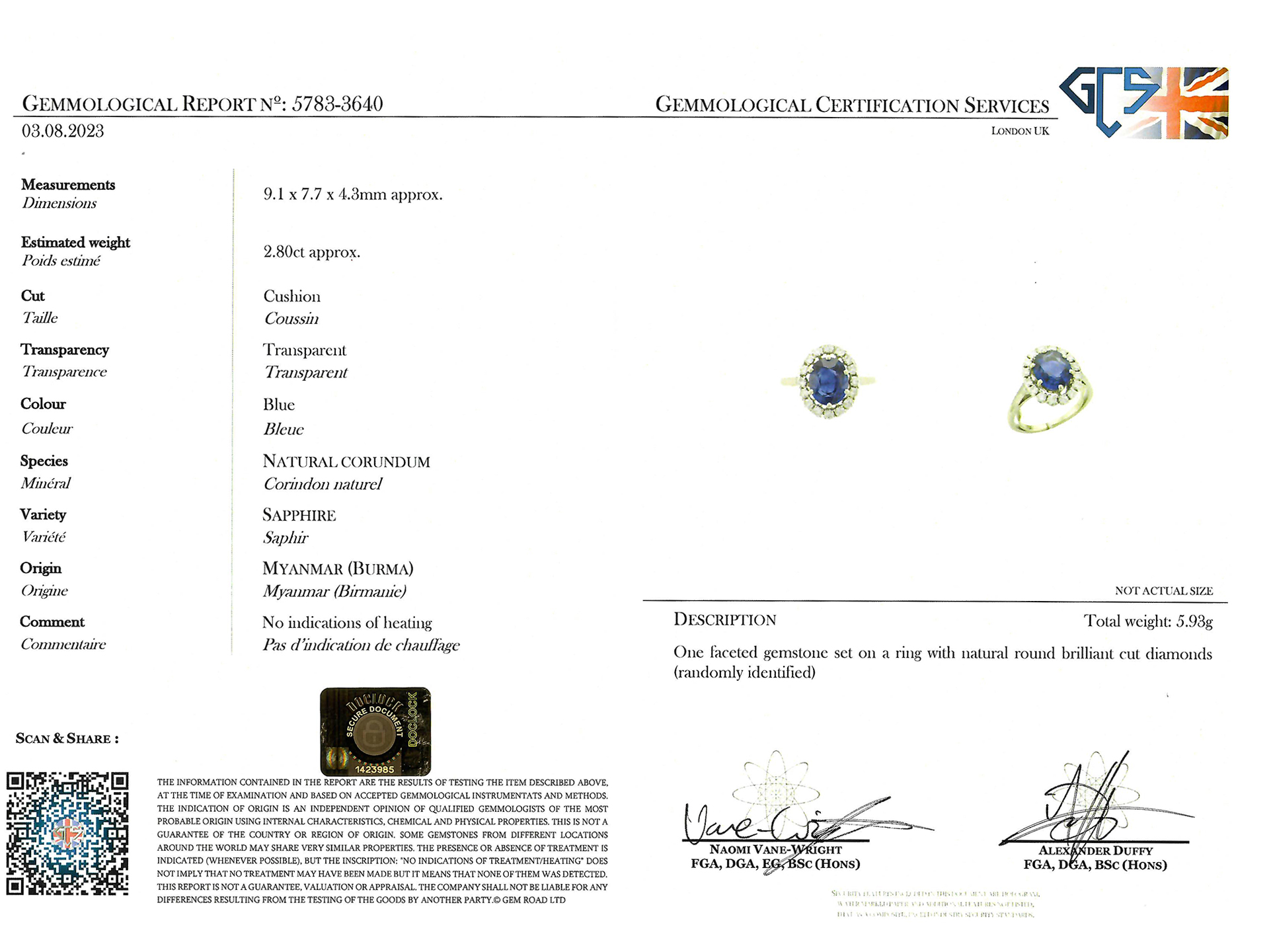 Gemstone Burmese Unheated Sapphire, Old Cut, approximately 2.8ct 16 x Diamonds, Brilliant Cut, approximately 0.8ct total