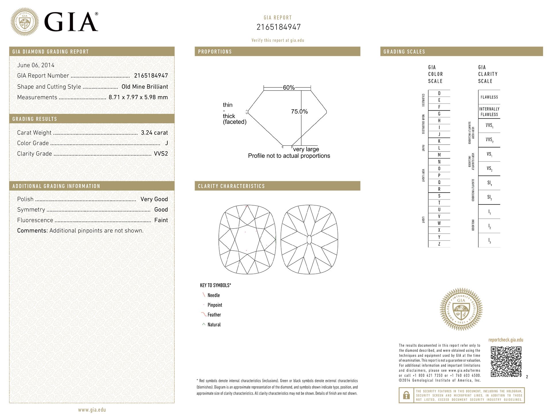 Gemstone Diamond, Old Mine, 3.24ct 8 x Diamonds, French Cut, approximately 0.24ct total 42 x Diamonds, Eight Cut, approximately 0.42ct total