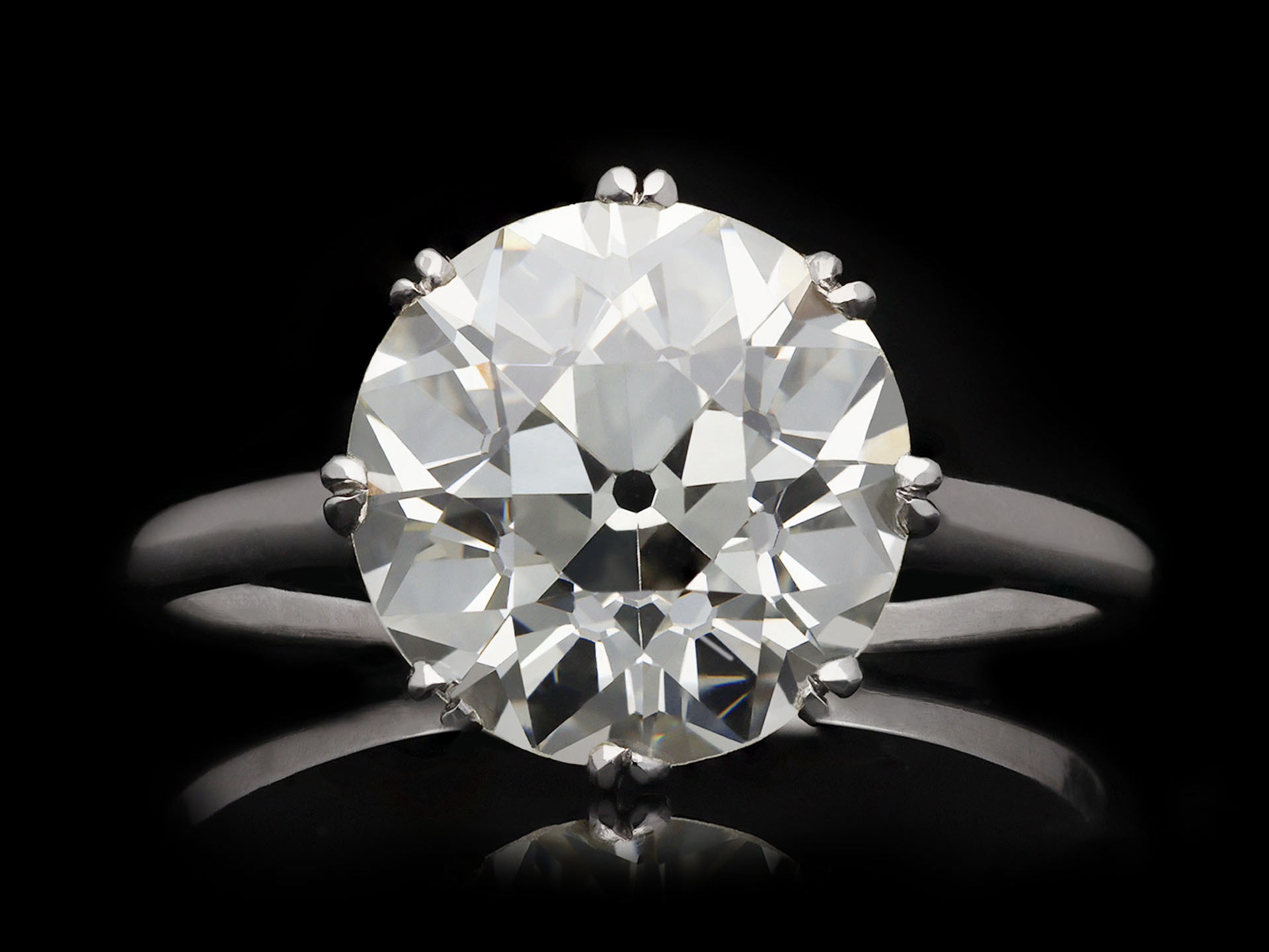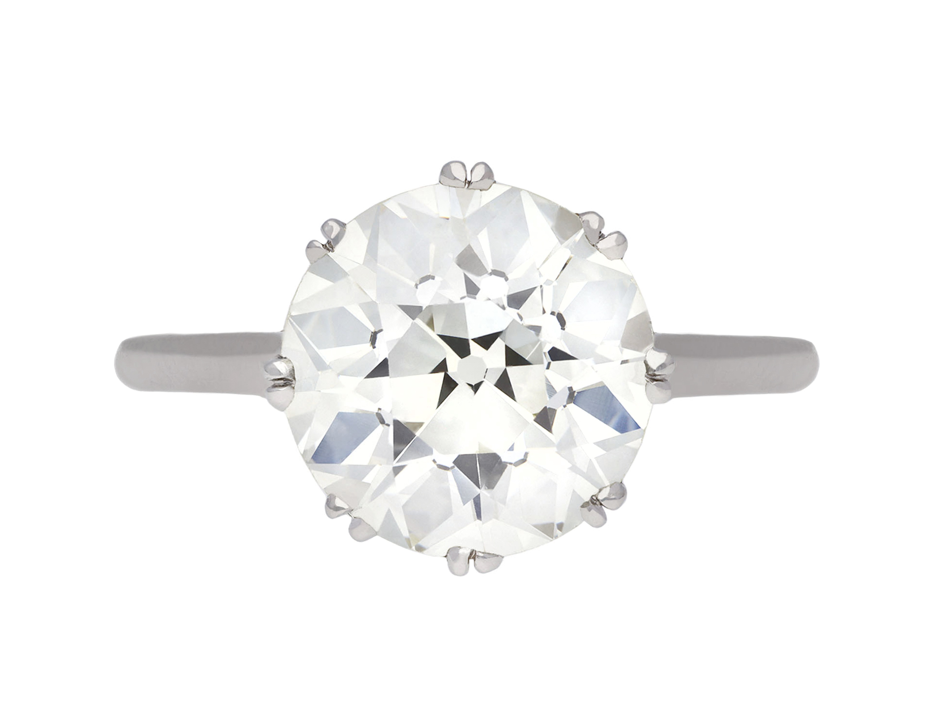 4.84 carat old cut diamond solitaire ring, English, circa 1920.