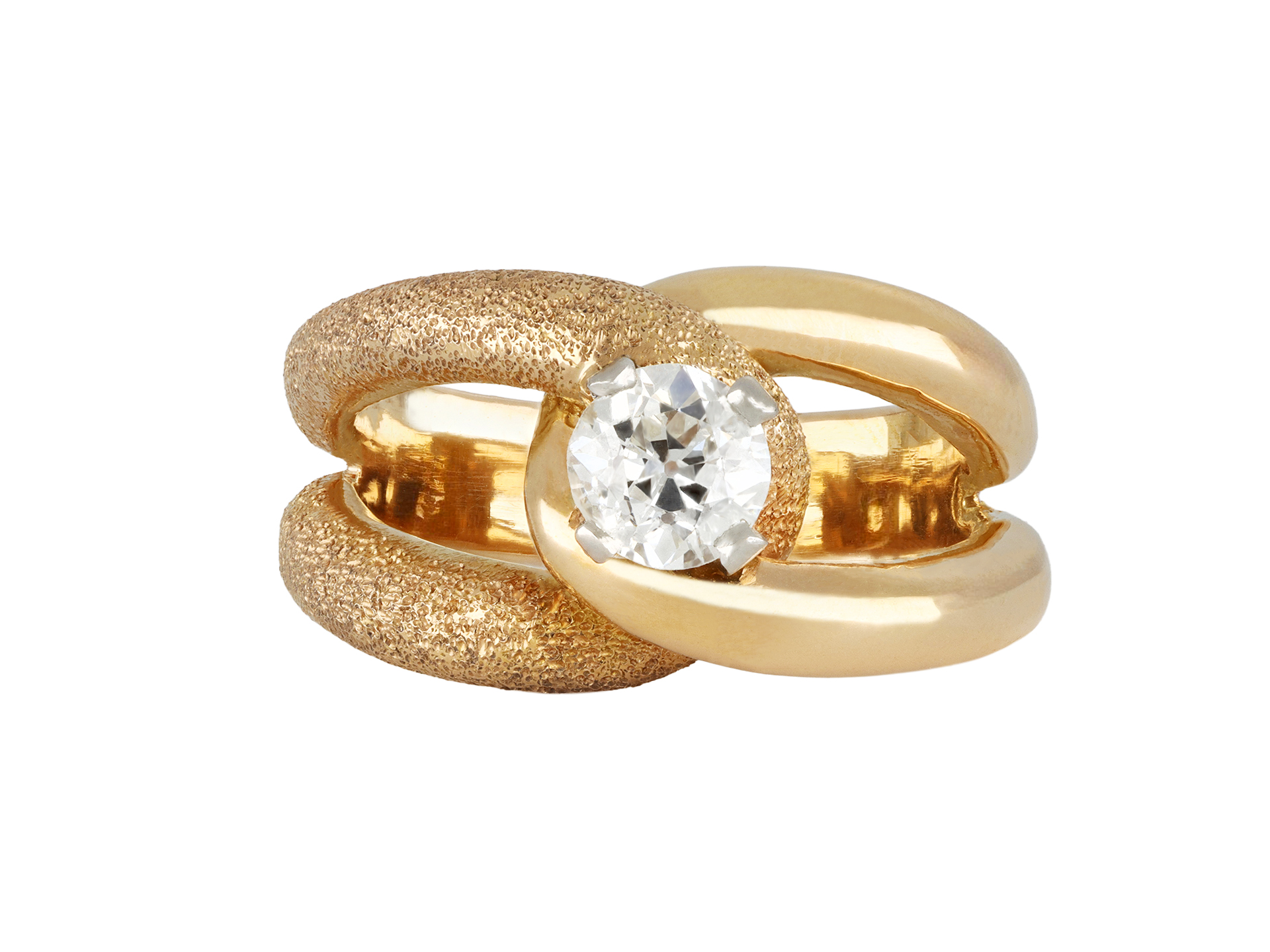 Old cut solitaire diamond cocktail ring, circa 1945.
