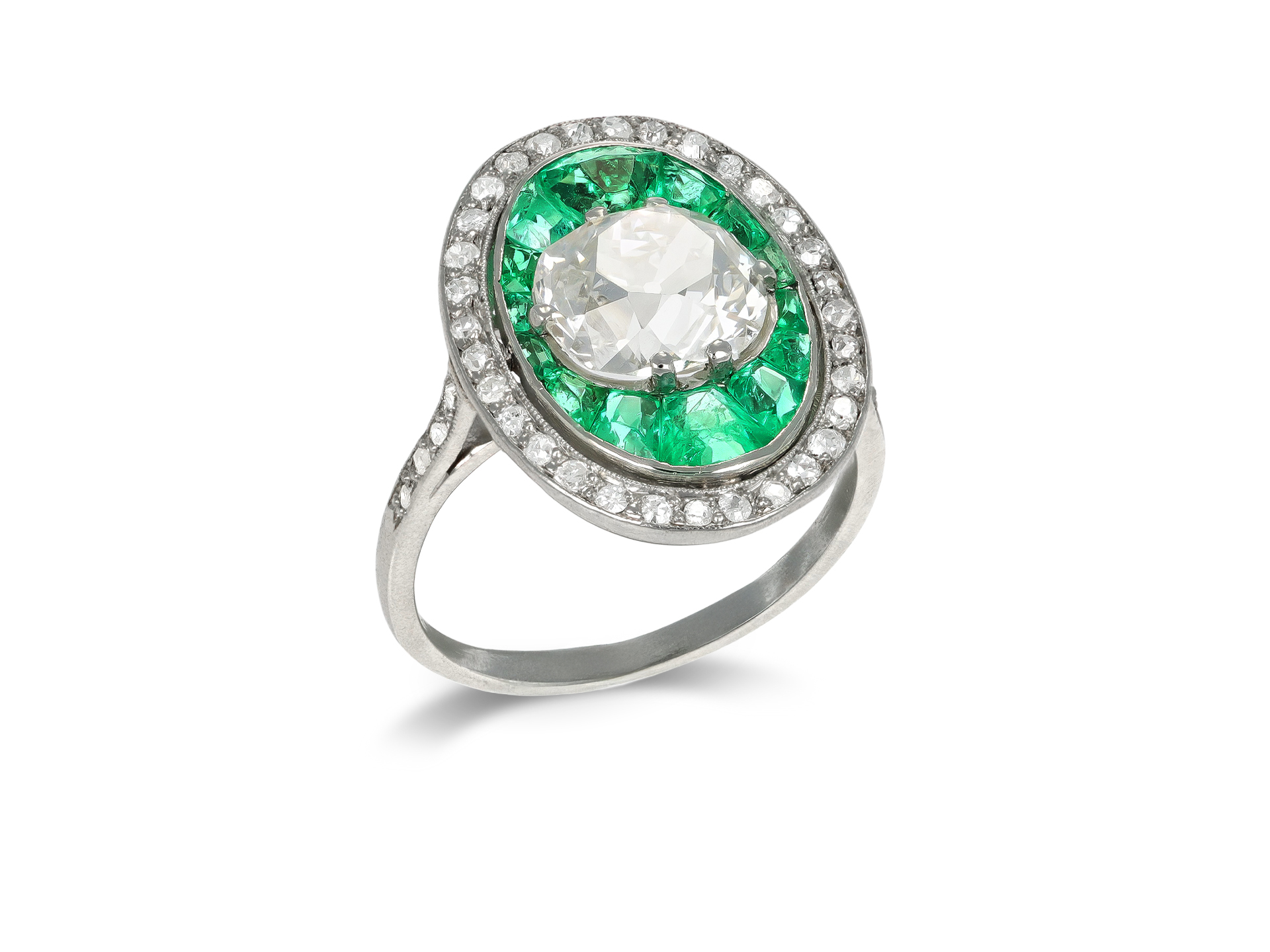 Gemstone Diamond, Old Cut, 2.01ct 14 x Emeralds, Calibre, approximately 2ct total 32 x Diamonds, Eight Cut, approximately 0.5ct total 8 x Diamonds, Rose Cut, approximately 0.08ct total