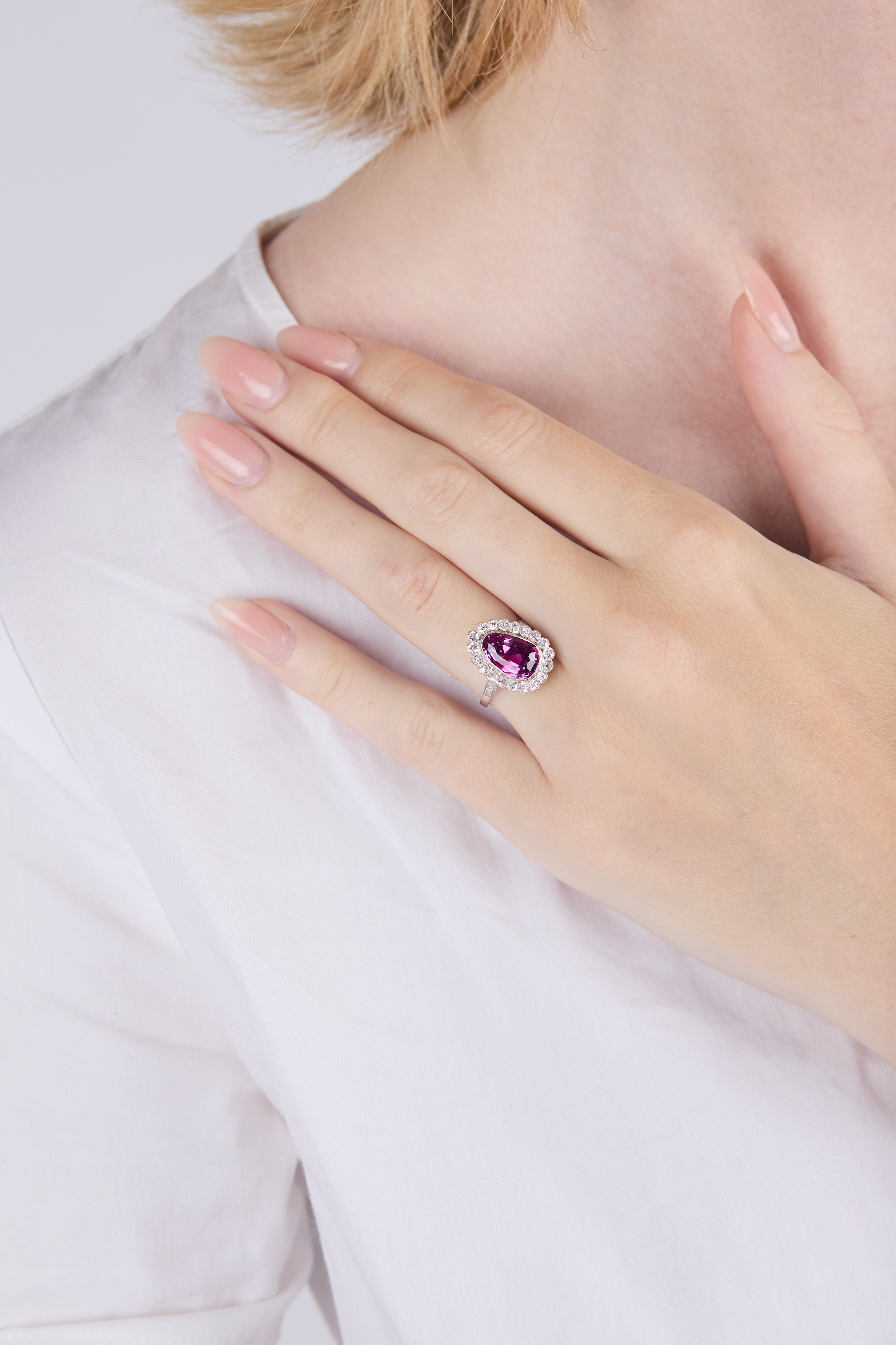 Gemstone Ceylon Pink Sapphire, Drop Shape, 6.18ct 23 x Diamonds, Old Mine, approximately 1.05ct total 2 x Diamonds, Eight Cut, approximately 0.4ct total