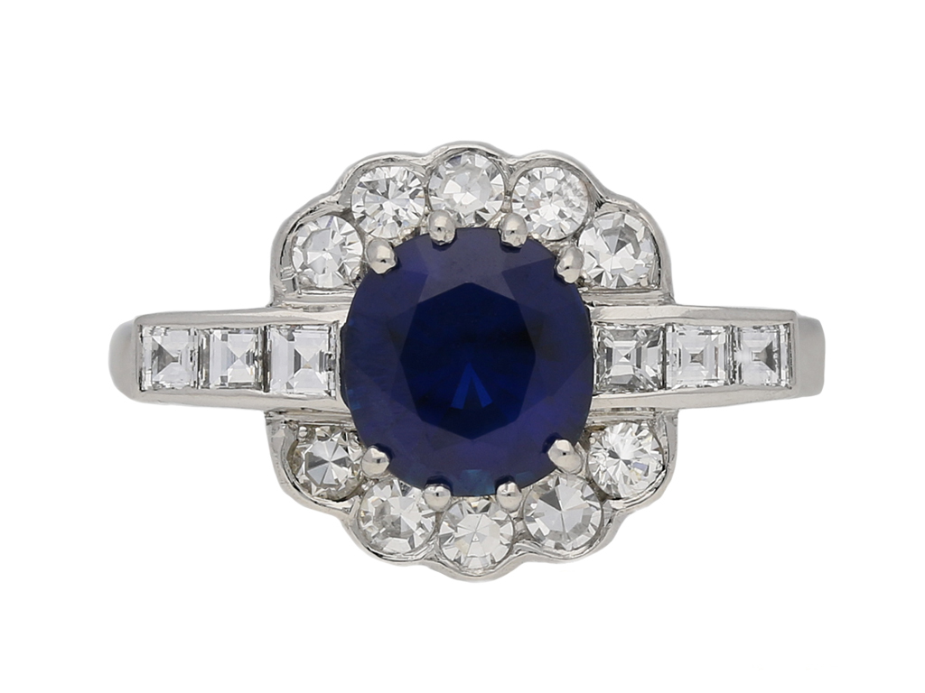 Royal Blue Burmese sapphire and diamond ring, circa 1935.