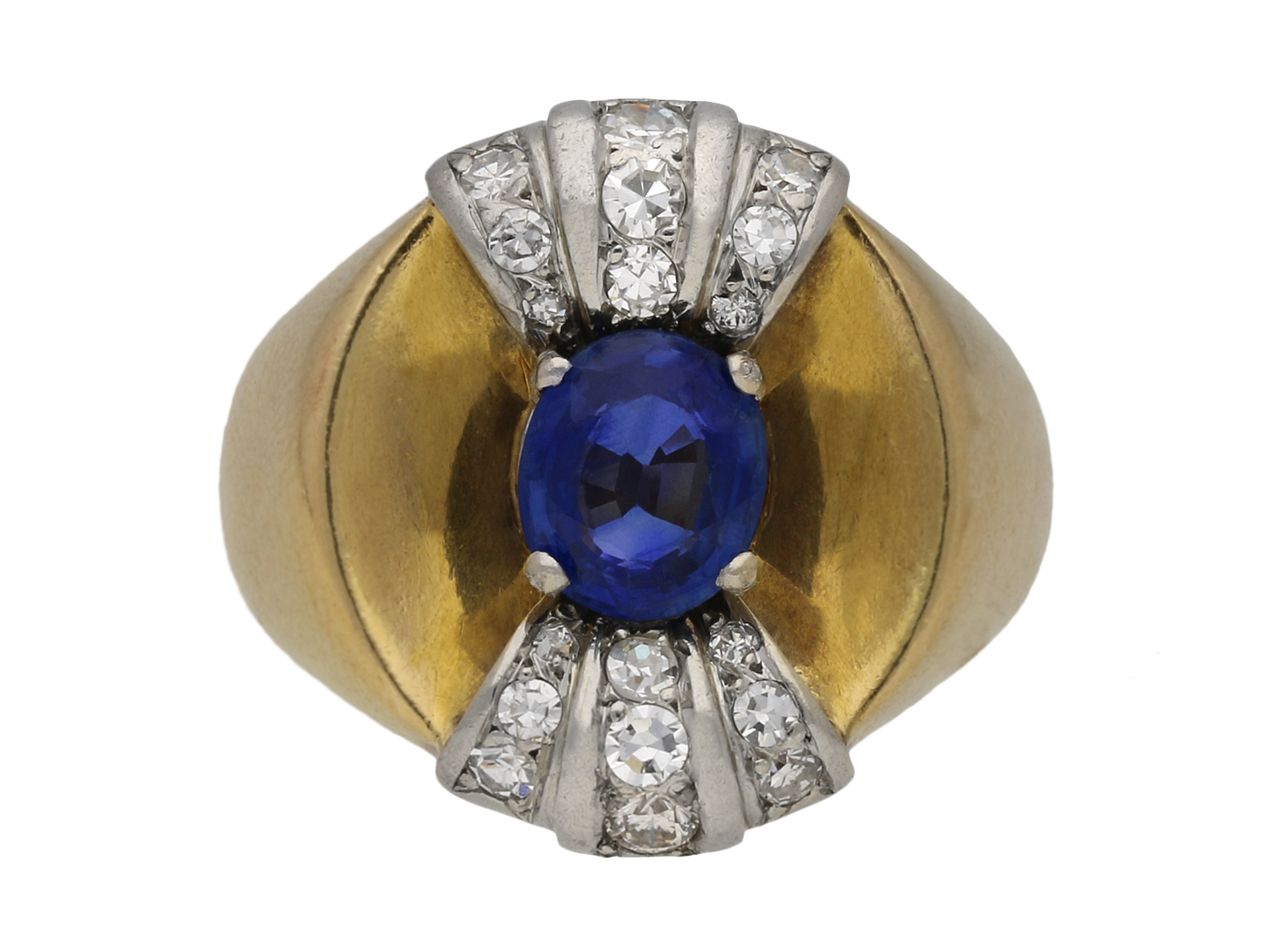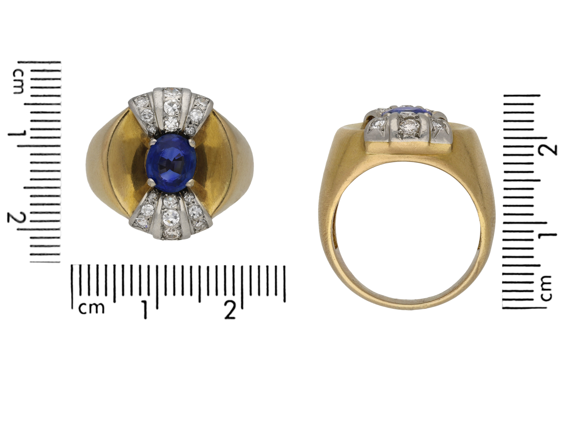 Sapphire and diamond cocktail ring, French, circa 1945.