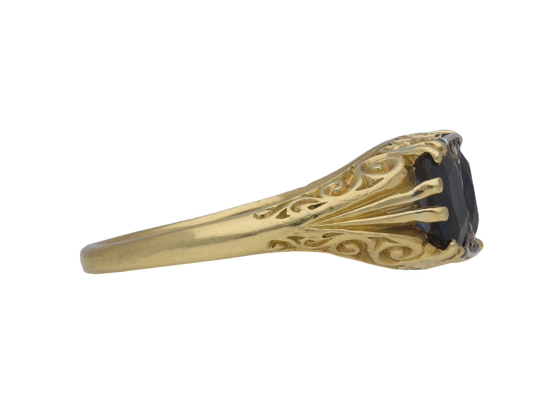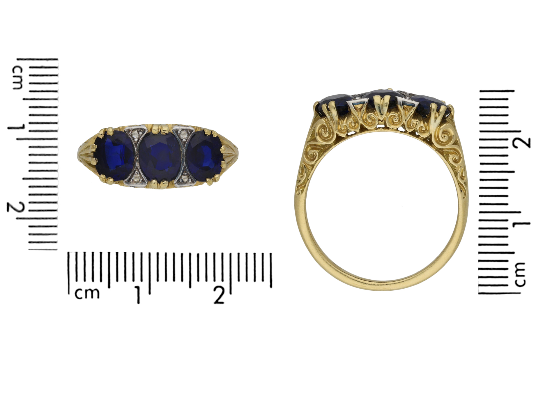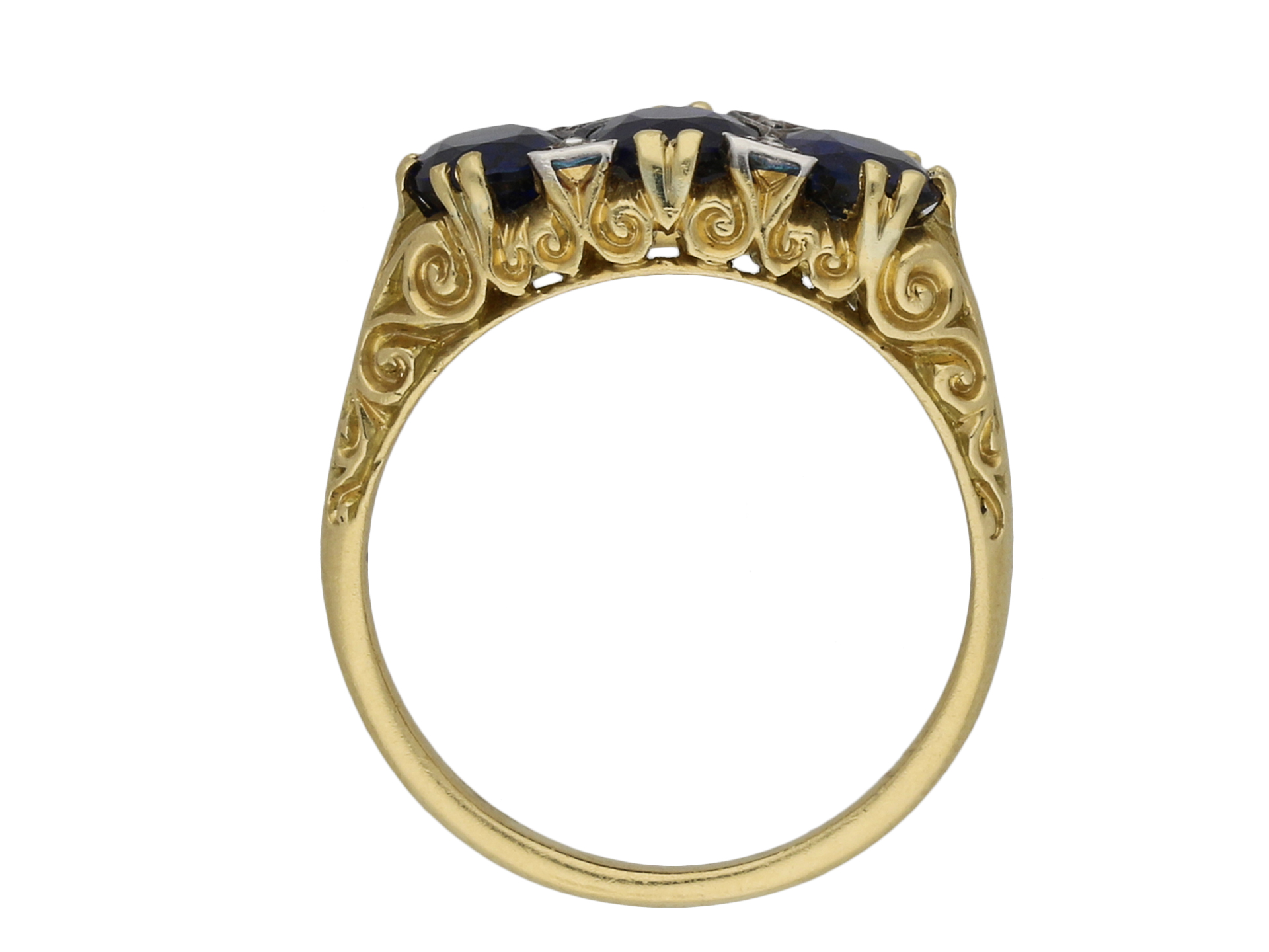 Victorian Burmese sapphire three stone ring, circa 1880.