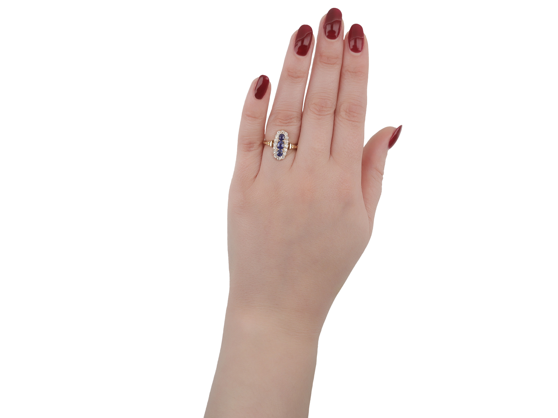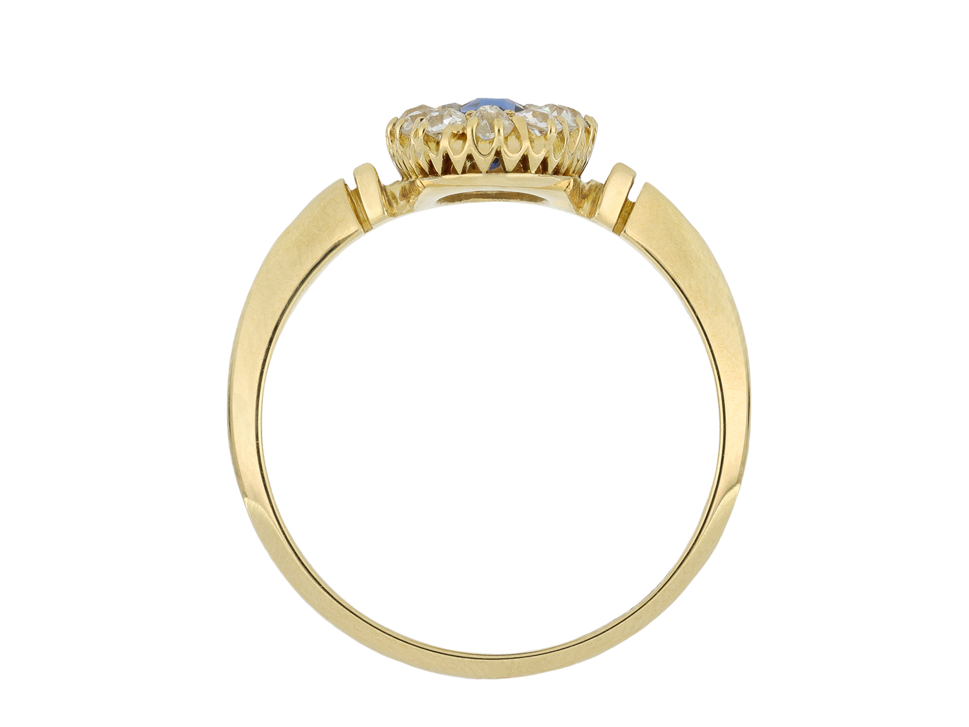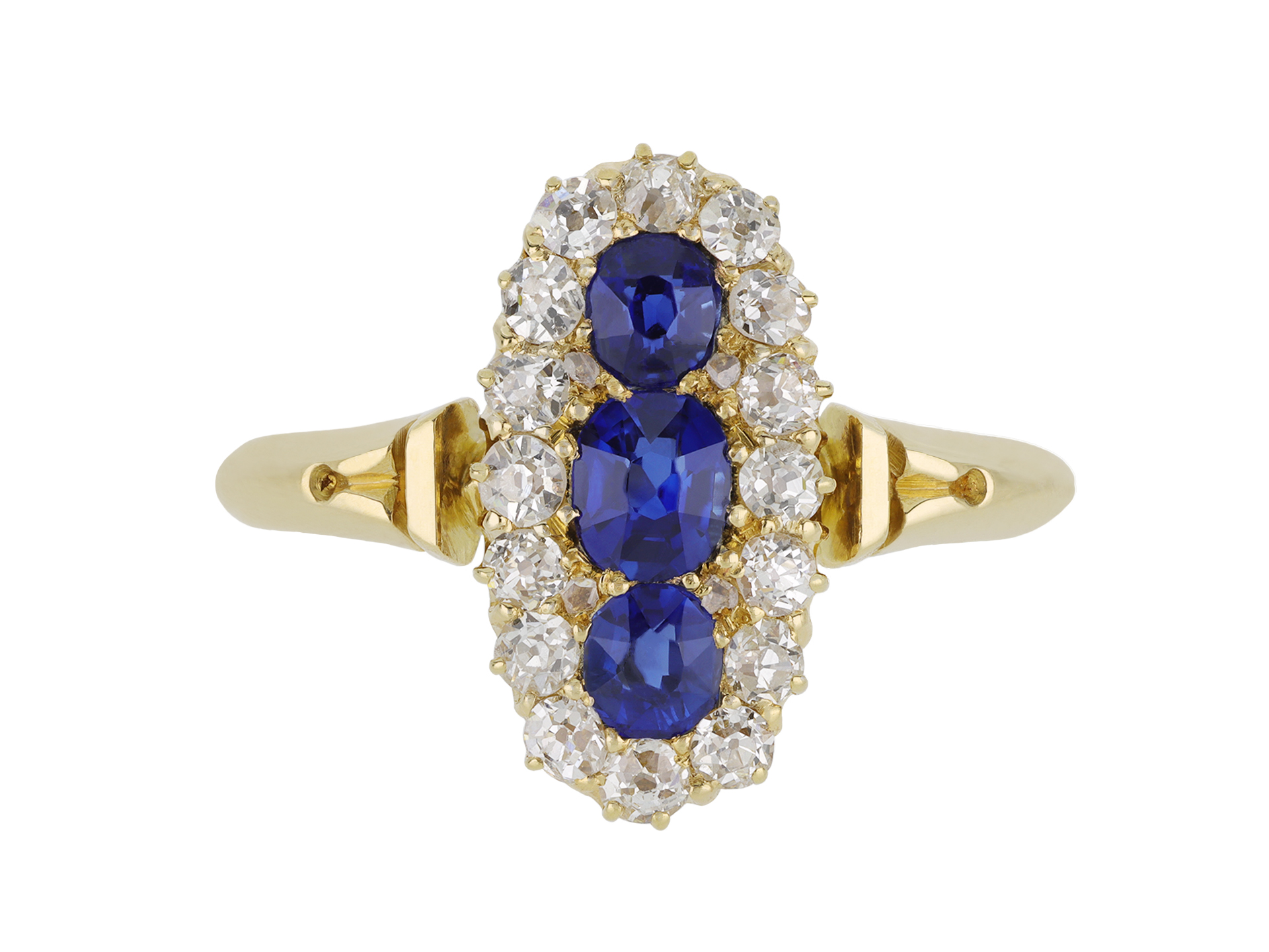 Victorian Sapphire and diamond triple cluster ring, English, 1892.