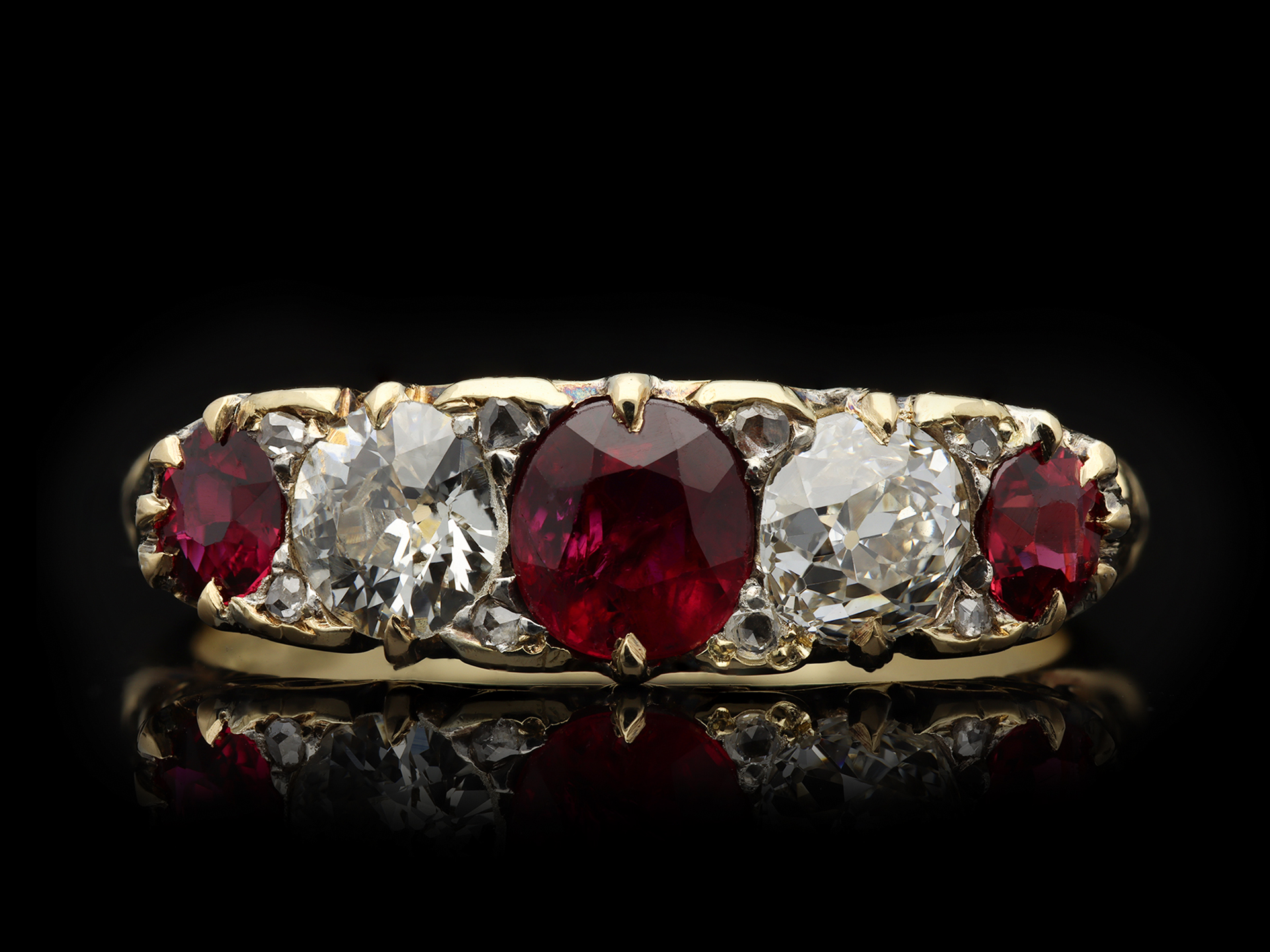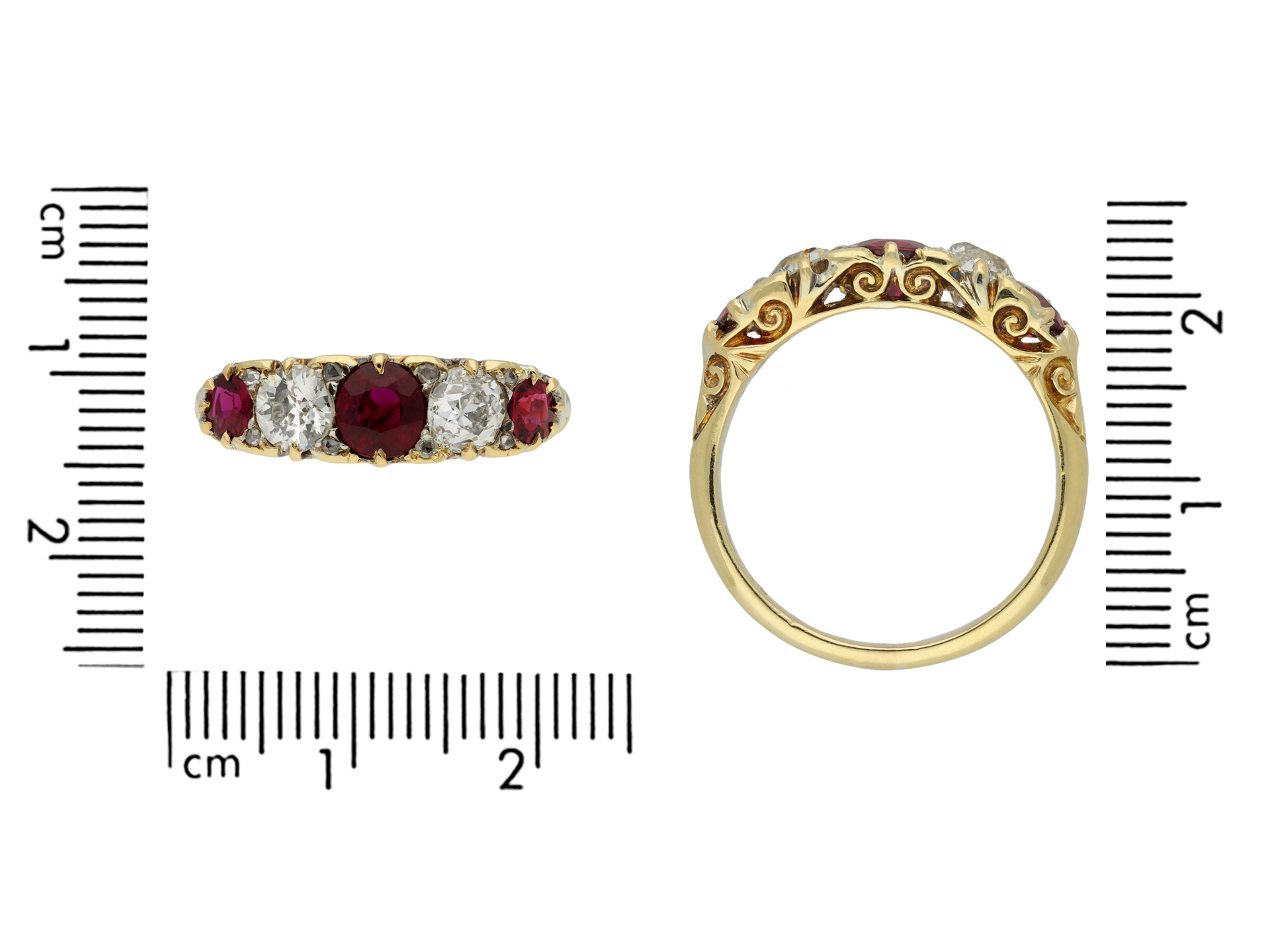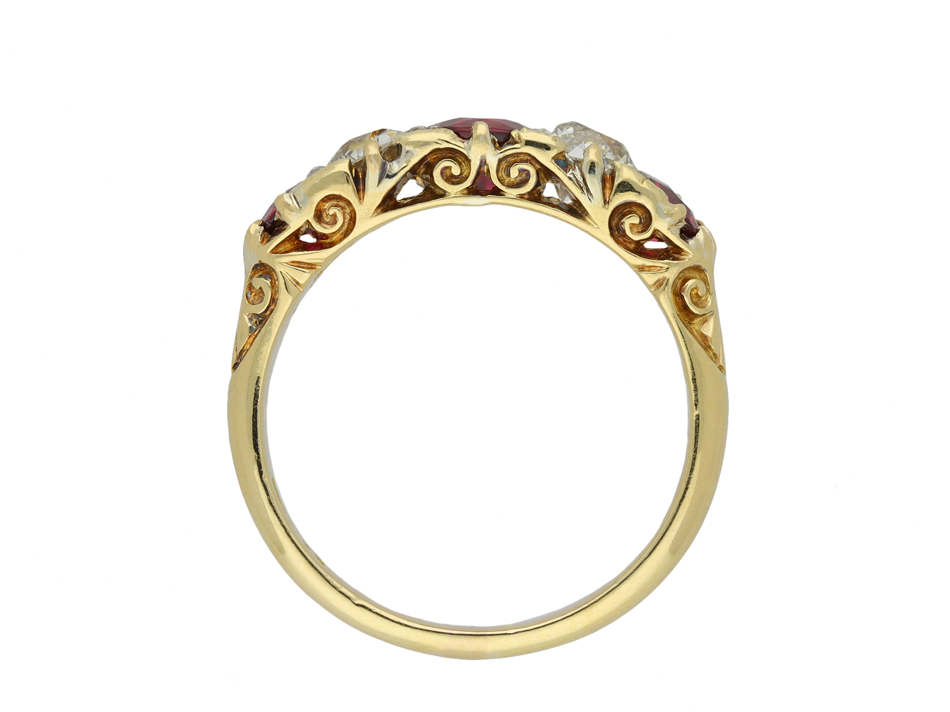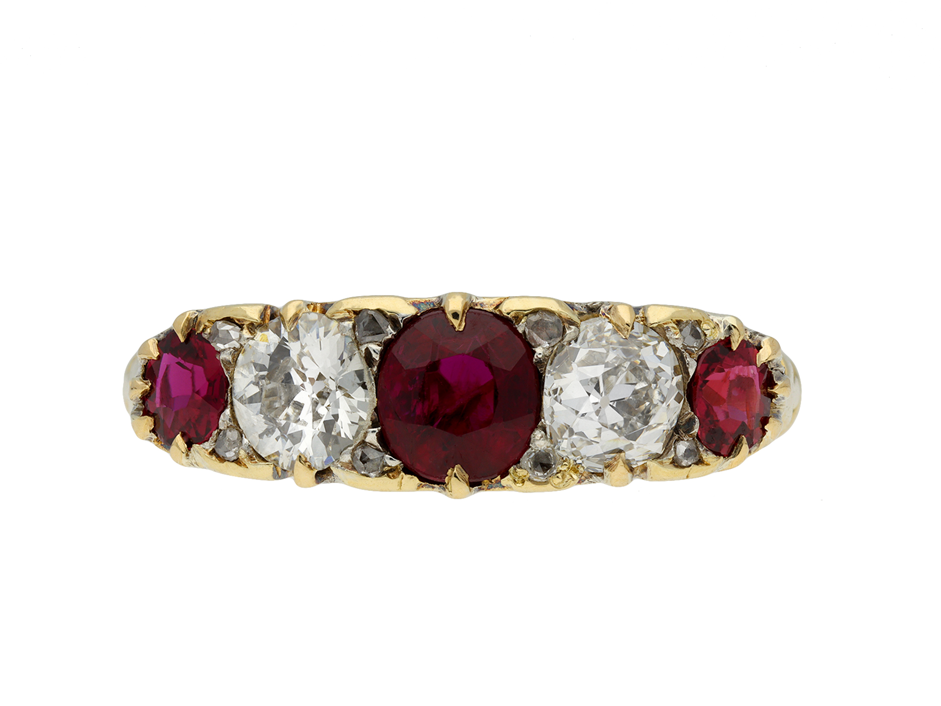 Victorian five stone ruby and diamond ring, English, circa 1900.